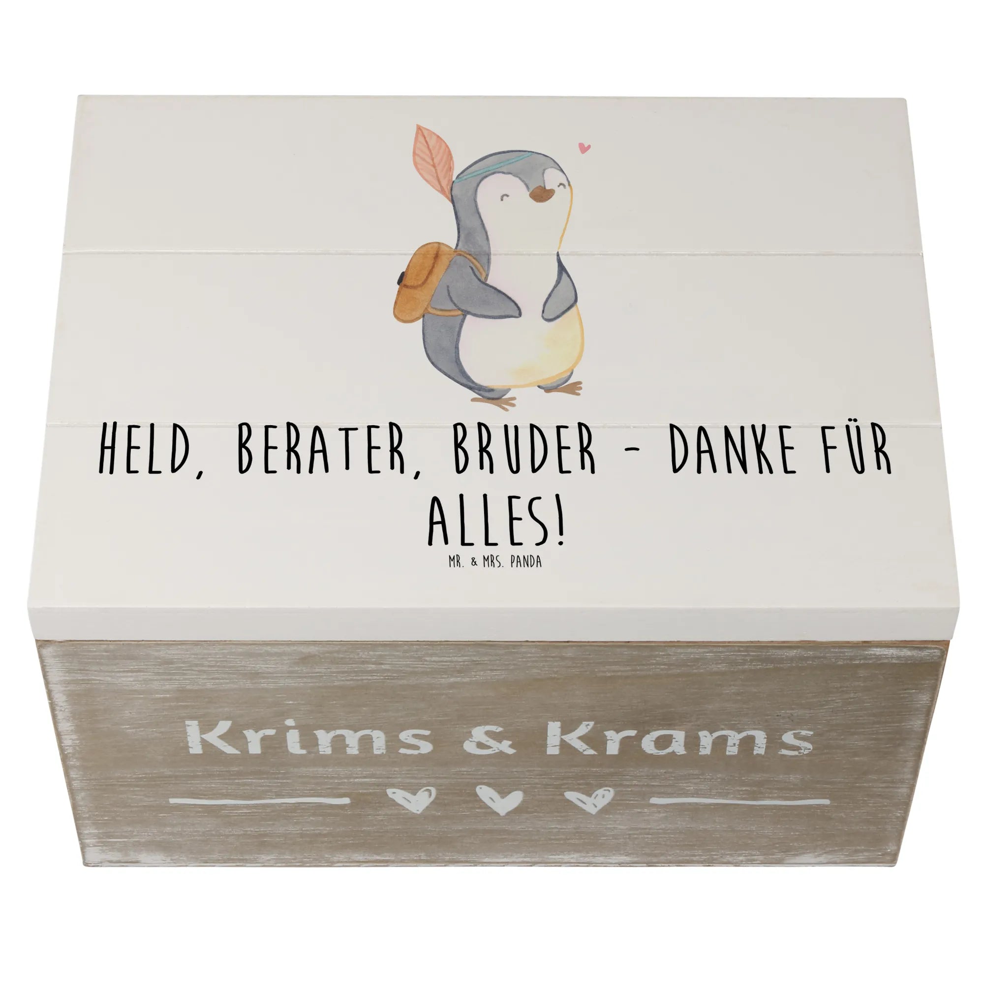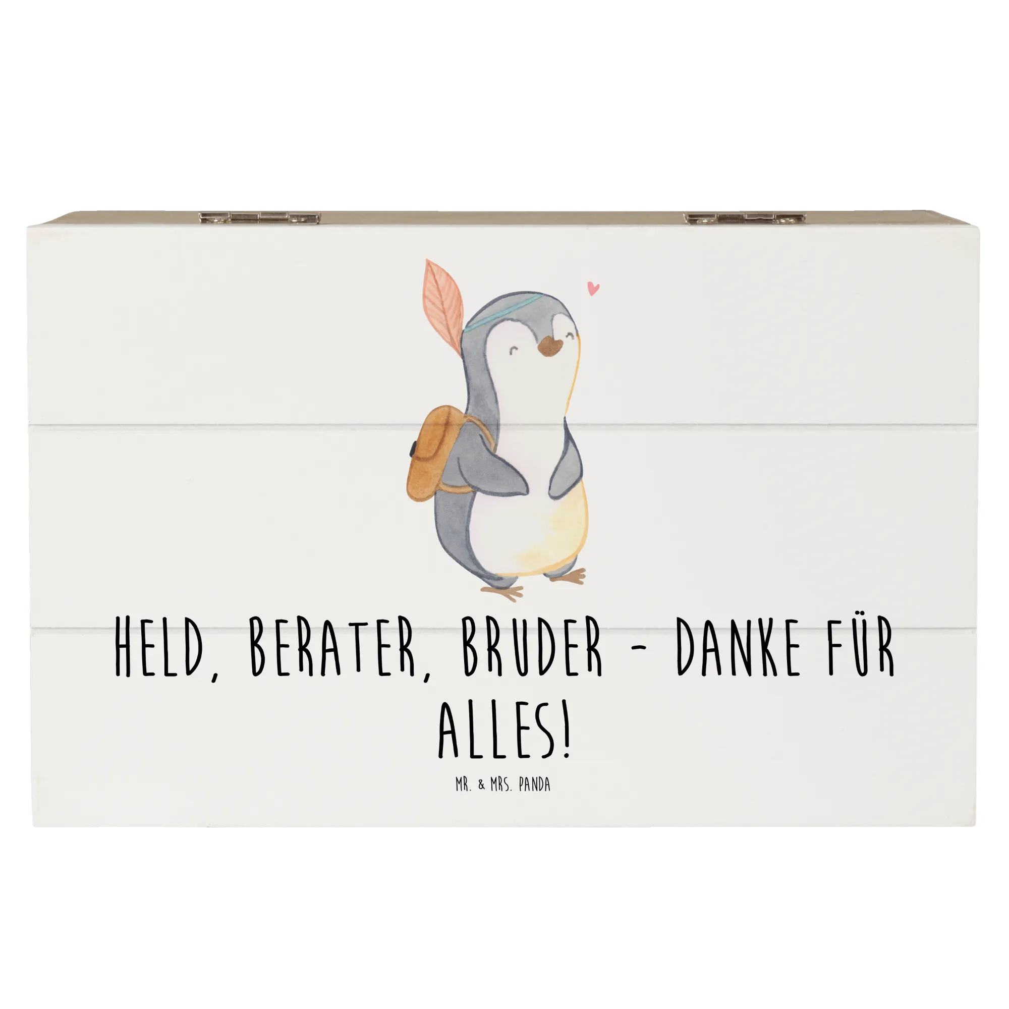 Die wunderschöne Holzkiste von Mr. & Mrs. Panda ist das perfekte Geschenk, um deinem Bruder einmal von Herzen "Danke!" zu sagen. Mit dem liebevollen Slogan "Held, Berater, Bruder - Danke für alles!" drückt diese Kiste genau aus, was du fühlst.