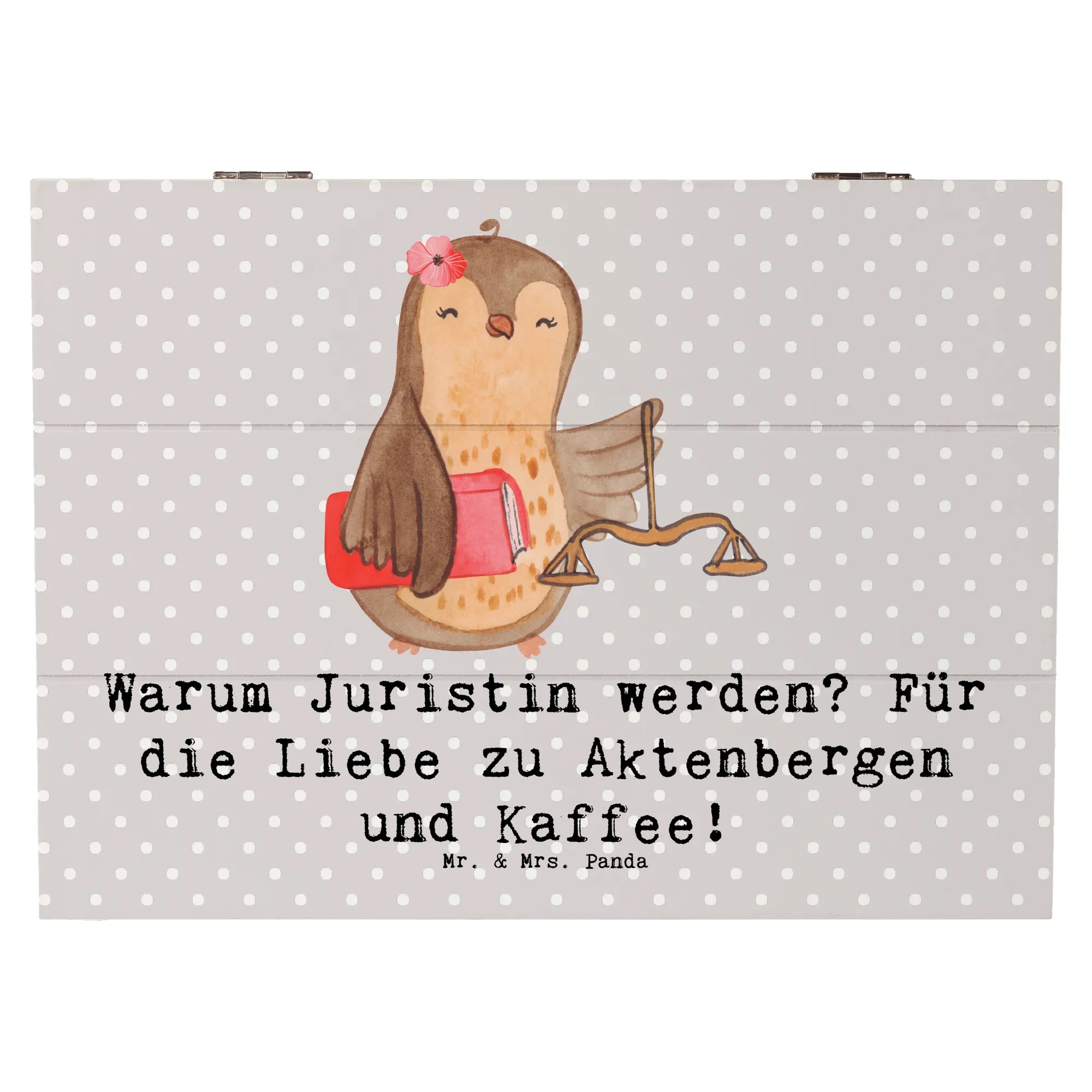 Die wunderschöne Holzkiste mit dem Motiv "Juristin" von Mr. & Mrs. Panda ist nicht nur ein praktischer Aufbewahrungsort, sondern auch ein liebevolles Geschenk für jeden Juristen oder jede Juristin in deinem Leben.
