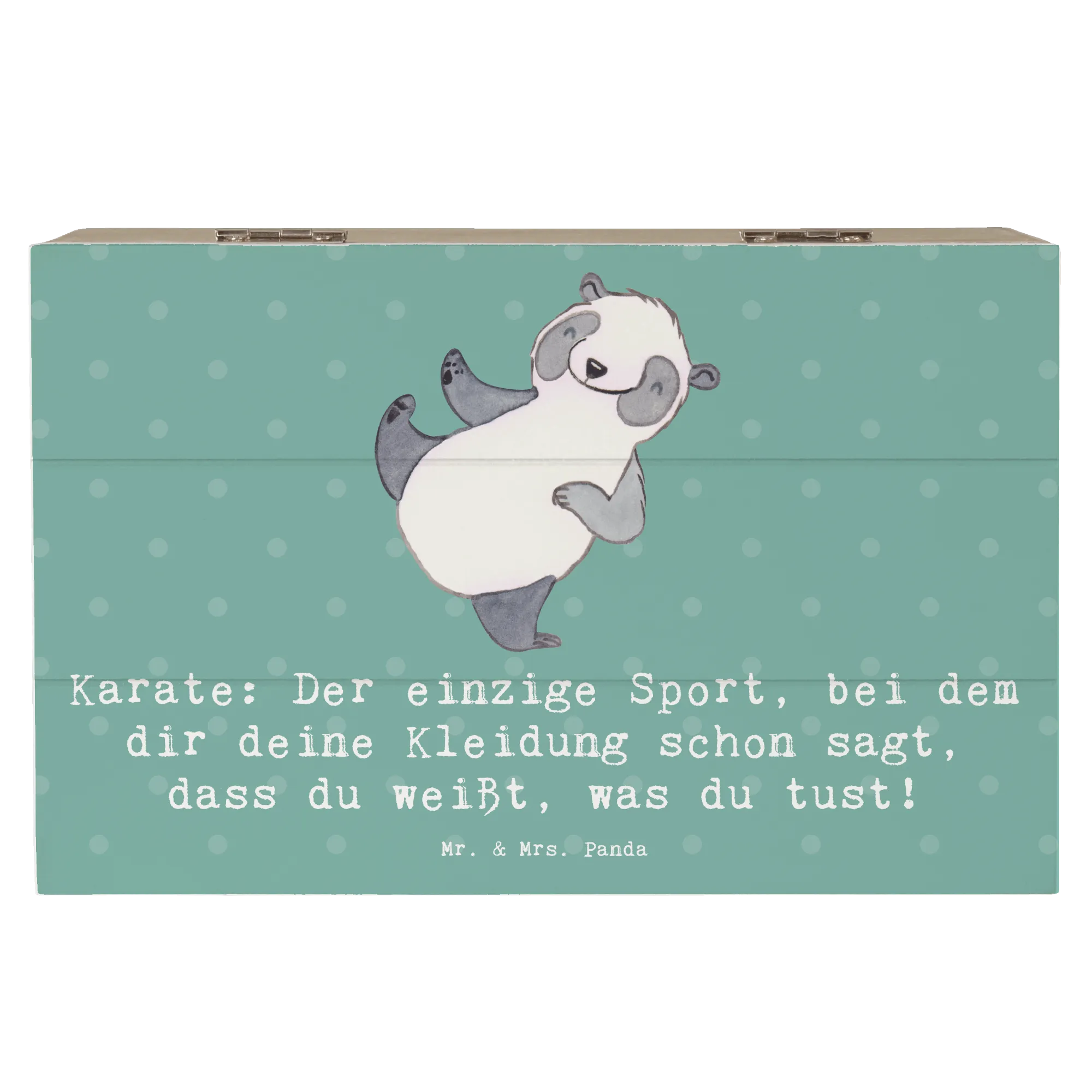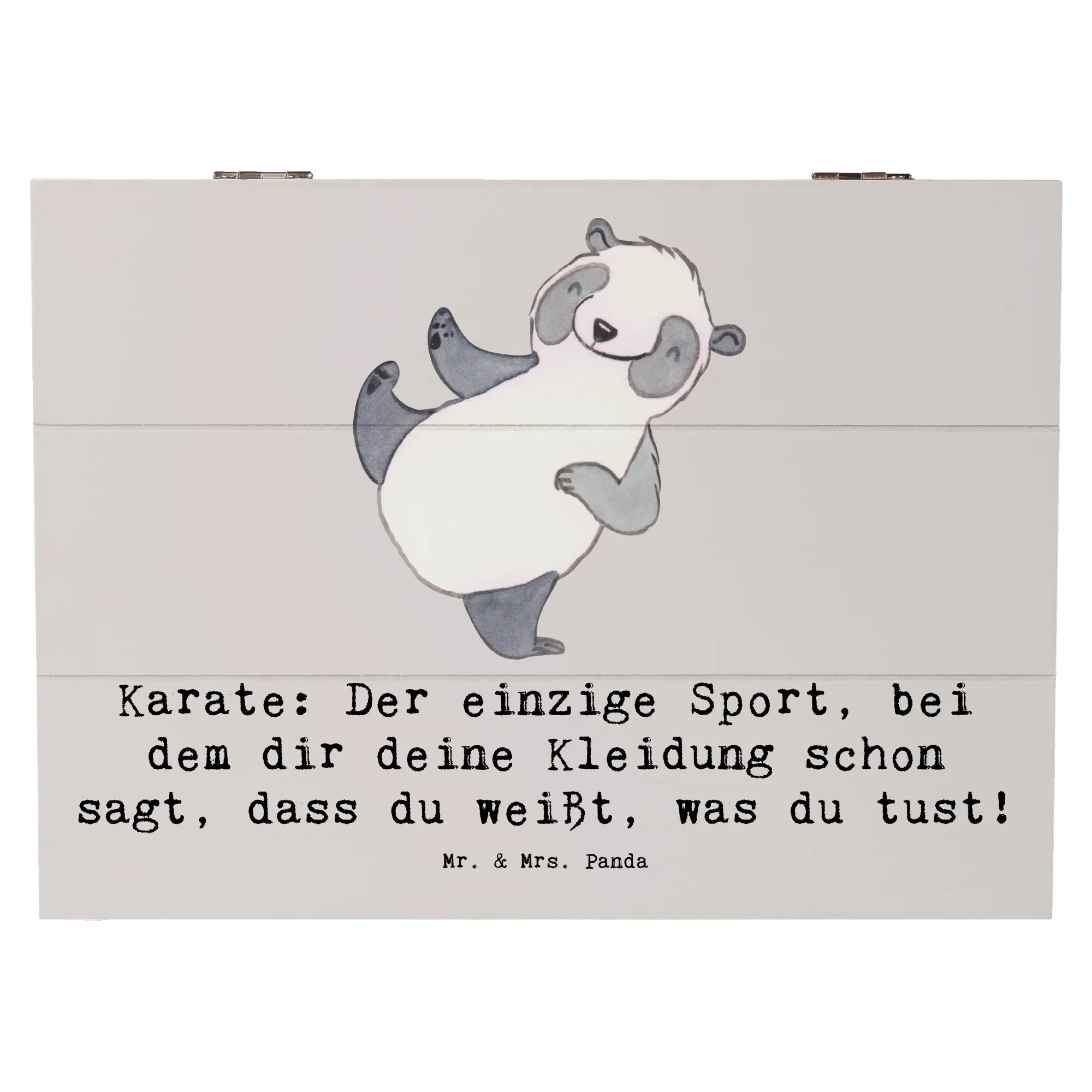 Suchst du das perfekte Geschenk für einen Karate-Liebhaber? Dann ist die Holzkiste von Mr. & Mrs. Panda genau das Richtige für dich! Diese wunderschöne Holzkiste ist nicht nur ein praktischer Aufbewahrungsort für zahlreiche Schätze, sondern auch ein echter Hingucker mit ihrem einzigartigen Motiv.