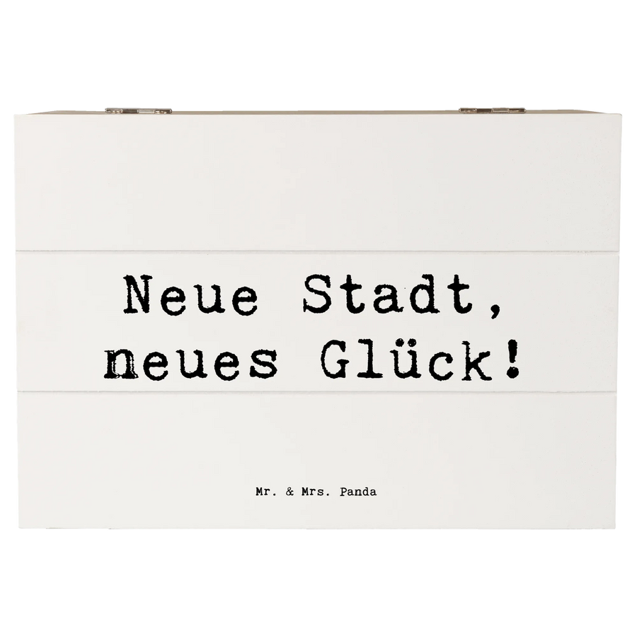Die wunderschöne Holzkiste 'Umzug in eine neue Stadt' von Mr. & Mrs. Panda ist das perfekte Geschenk für alle, die bereit sind für einen Neuanfang! Ob du selbst in eine neue Stadt ziehst oder einem Freund oder einer Freundin zur neuen Wohnung gratulieren möchtest, diese Kiste wird sicher Freude bereiten. Mit dem inspirierenden Spruch 'Neue Stadt, neues Glück!' bietet sie nicht nur Stauraum für wertvolle Erinnerungen, sondern auch einen Mutmacher zur neuen Lebensphase.