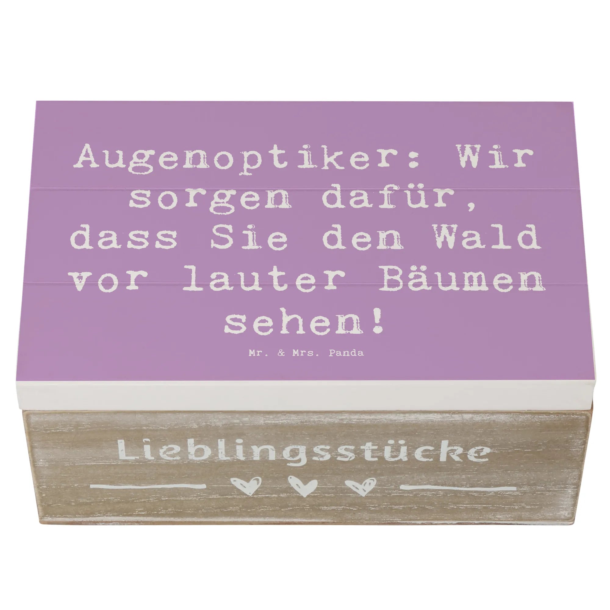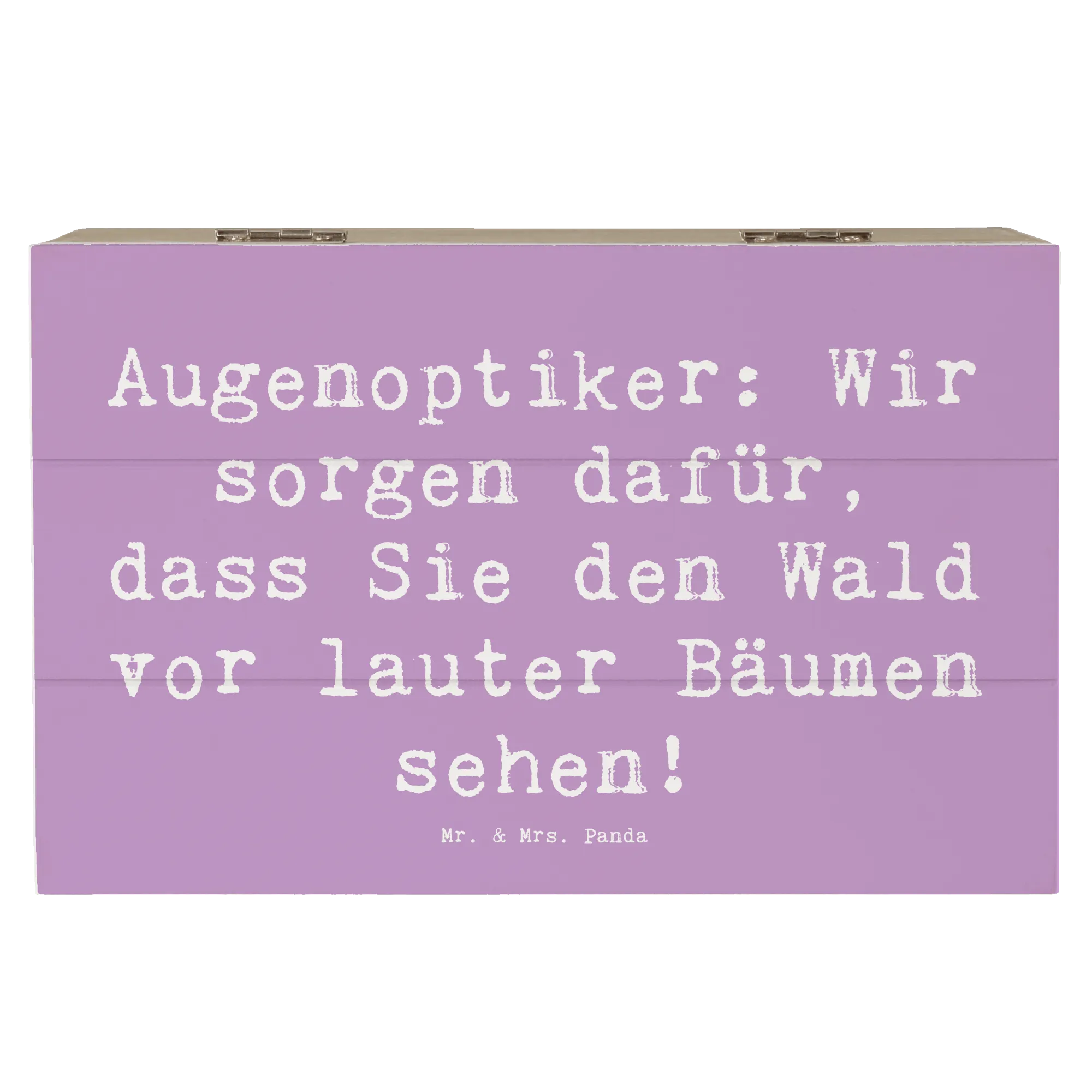 Suchst Du das perfekte Geschenk für einen Augenoptiker oder jemanden, der in der Welt der Sehhilfen tätig ist? Dann ist die Holzkiste "Augenoptiker" von Mr. & Mrs. Panda genau das Richtige für Dich!