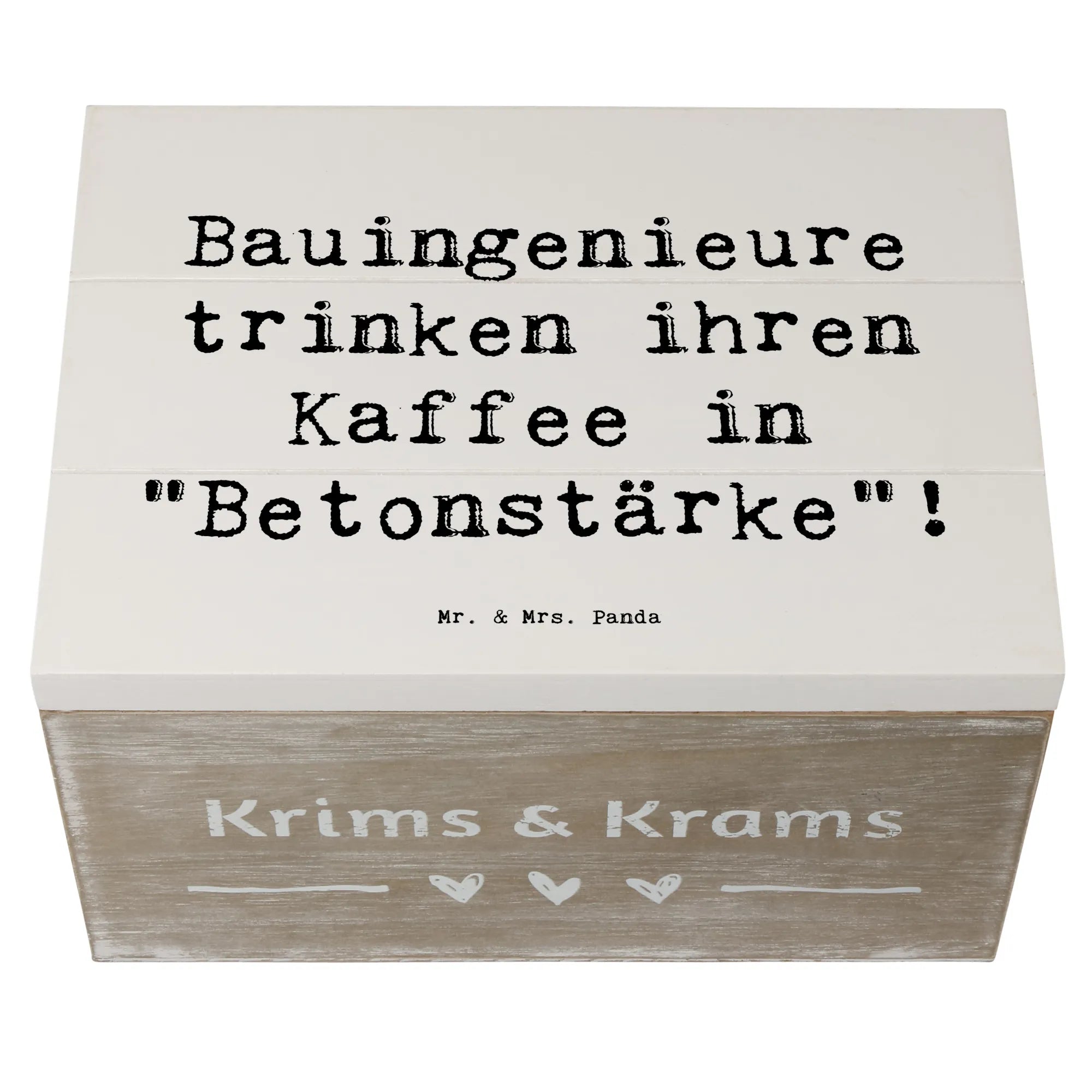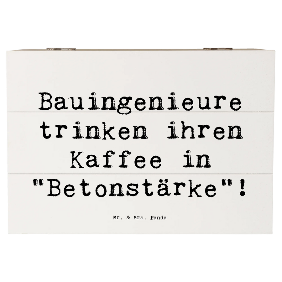 Holzkiste Spruch Bauingenieure trinken ihren Kaffee in "Betonstärke"! - 22 x 15 cm - Weiß