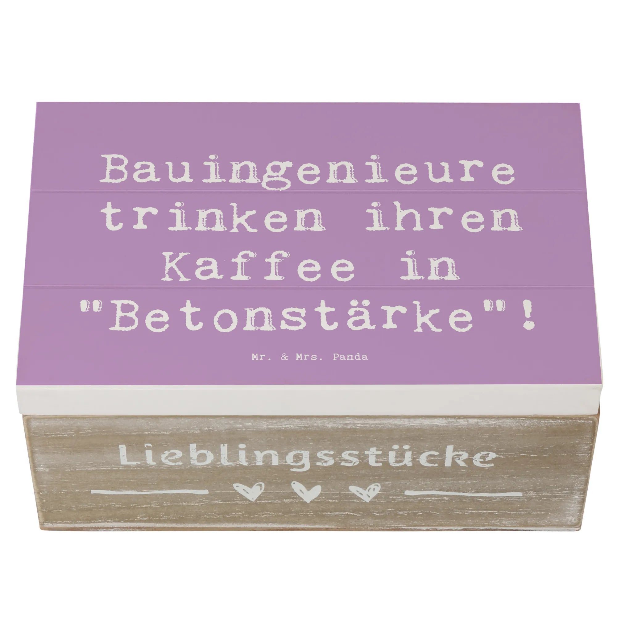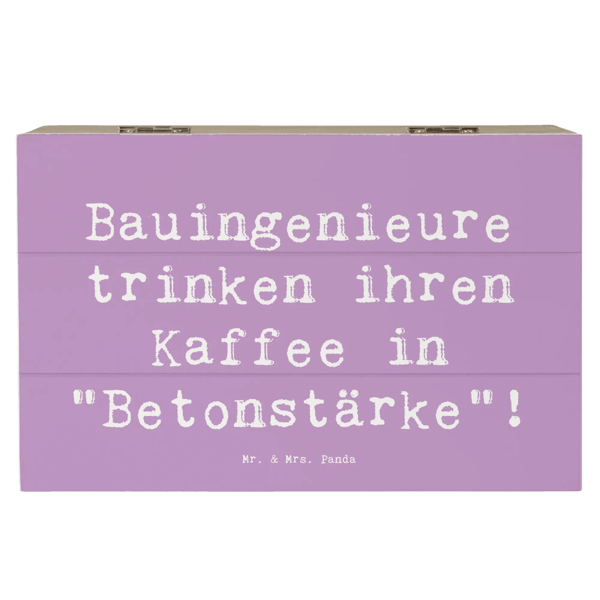 Die wunderschöne Holzkiste mit dem Motiv "Bauingenieur" von Mr. & Mrs. Panda ist das perfekte Geschenk für alle, die dem Bauwesen zugetan sind! Diese stilvolle Kiste ist nicht nur ein Blickfang, sondern auch äußerst funktional. Mit dem spritzigen Slogan "Bauingenieure trinken ihren Kaffee in 'Betonstärke'!" zeigt sie auf humorvolle Weise die Liebe zu diesem Beruf. Egal, ob für einen Berufseinsteiger, beim Berufsjubiläum oder einfach nur als kleine Aufmerksamkeit – diese Holzkiste wird sicherlich Freude bereiten!