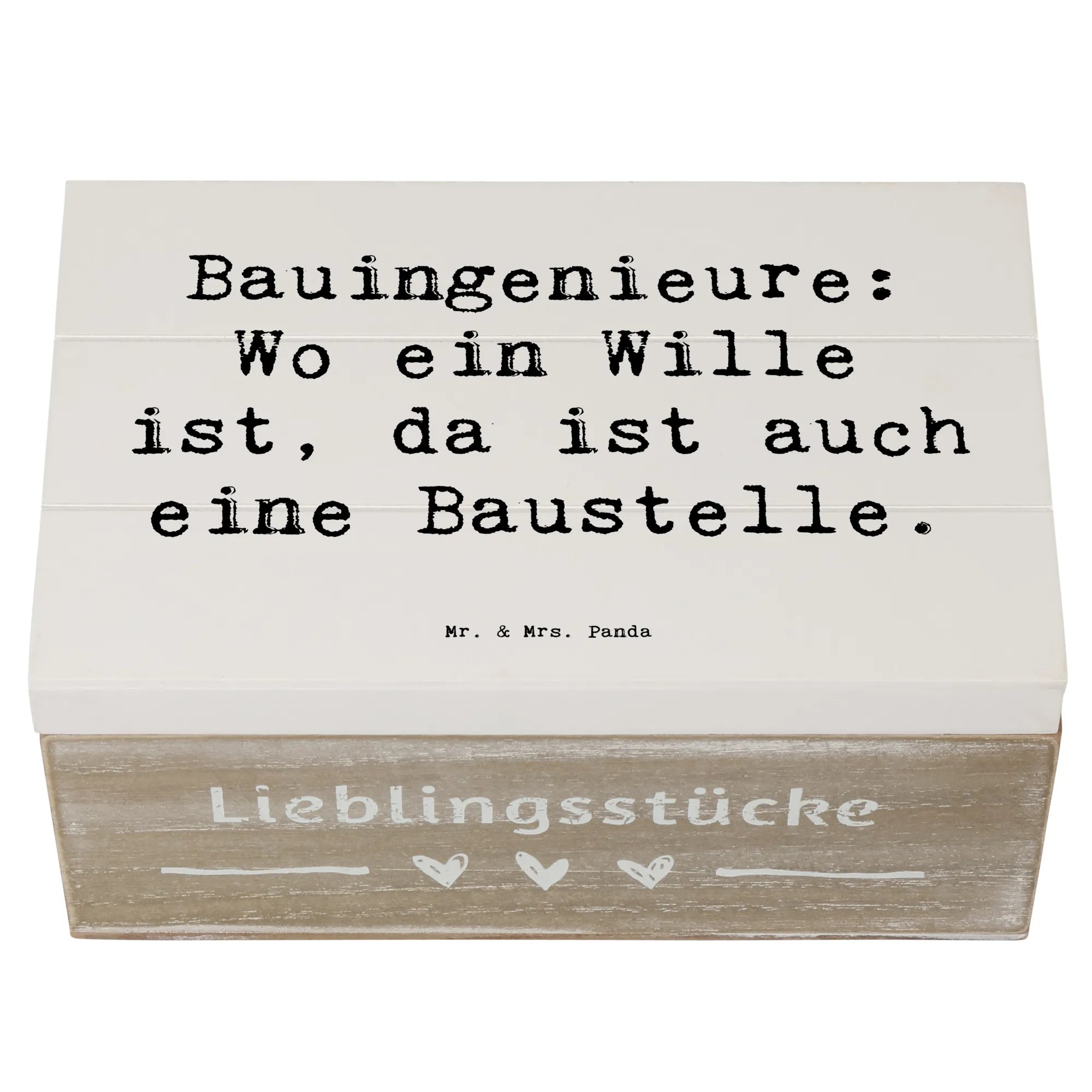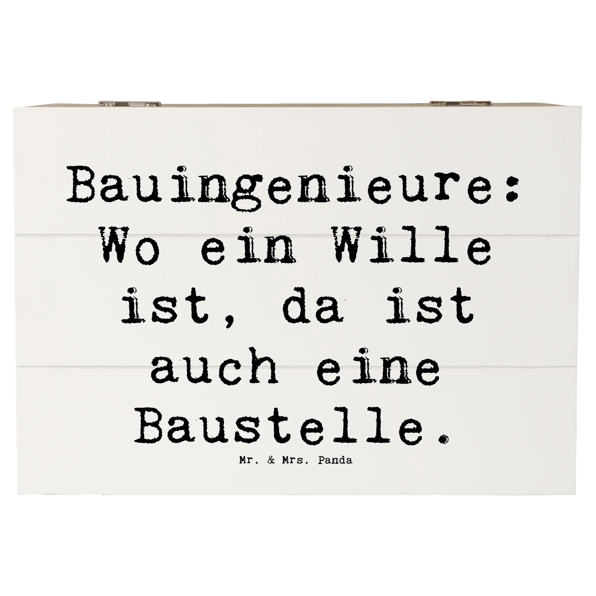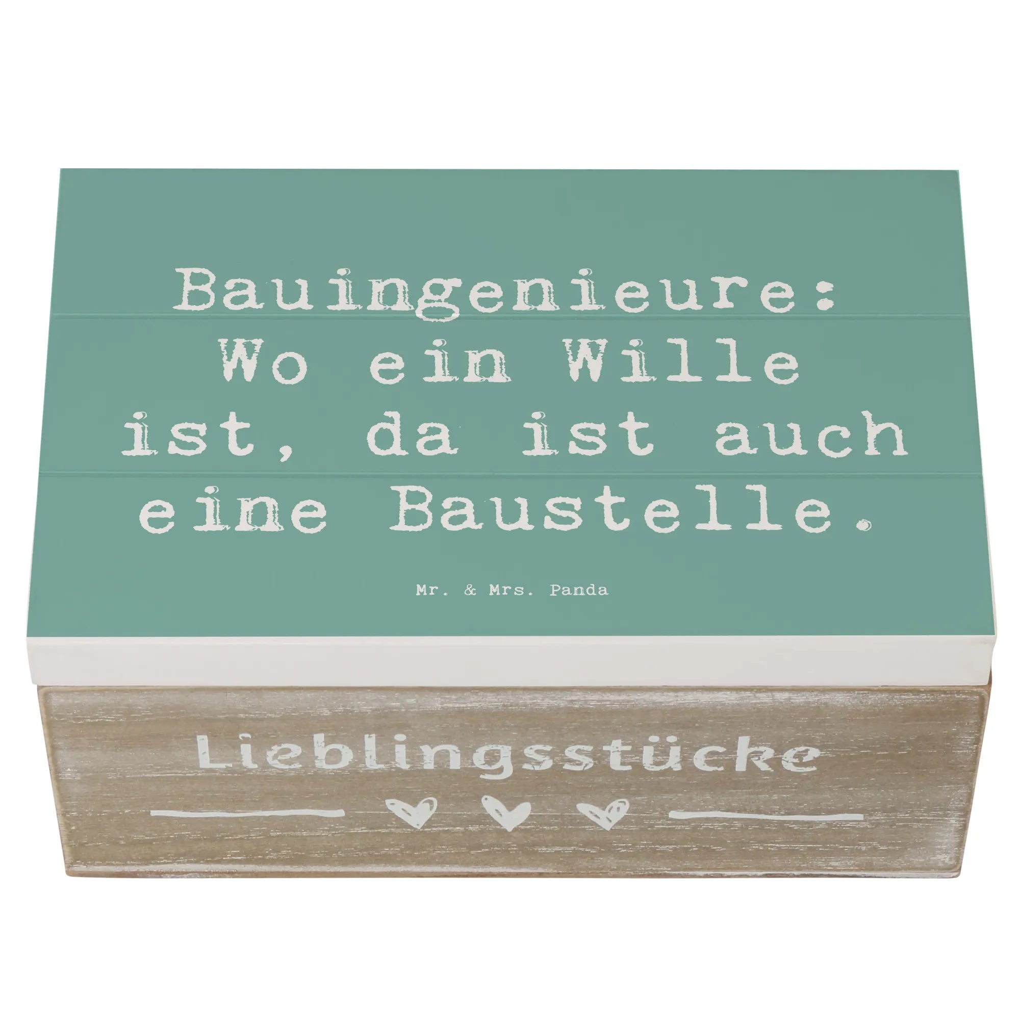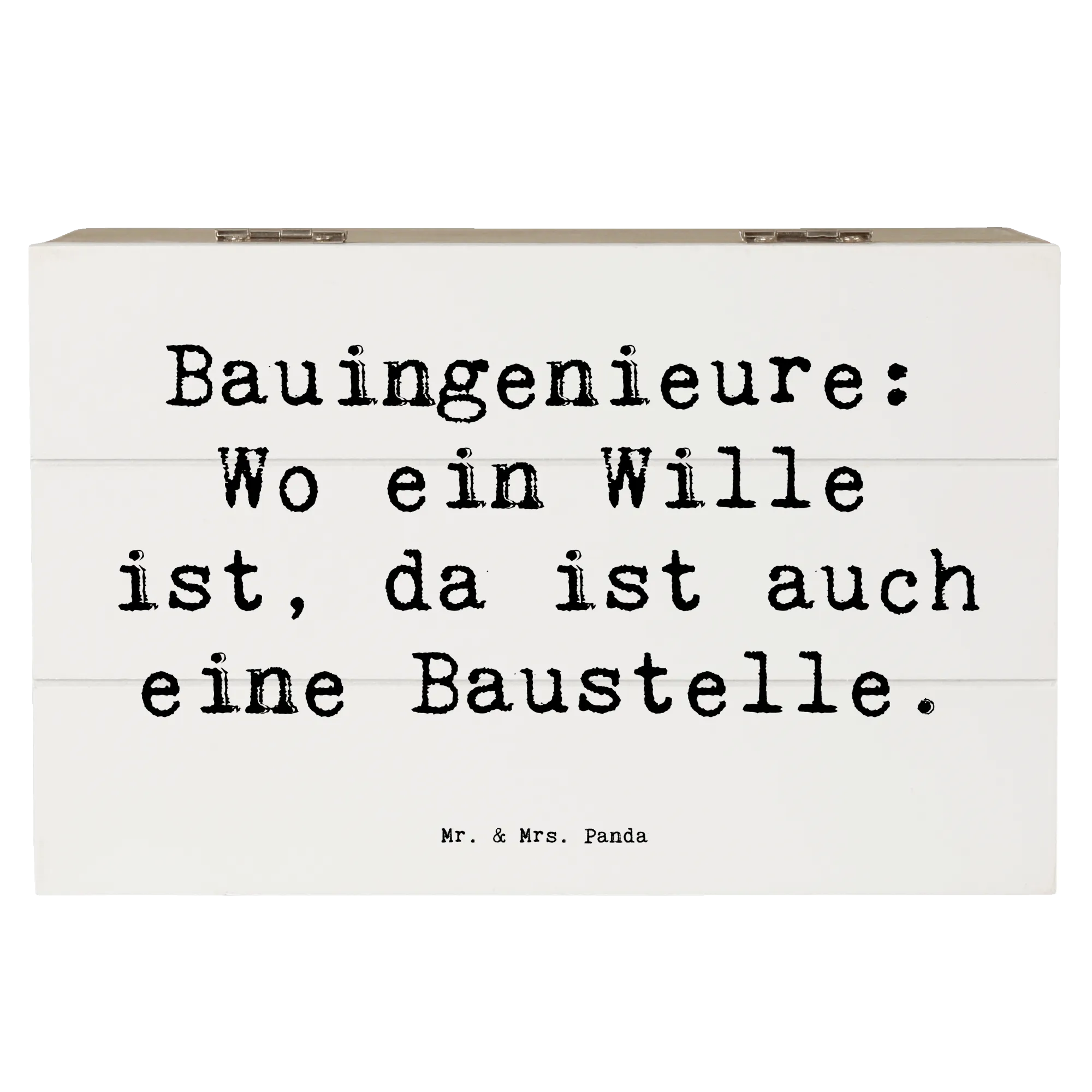 Wenn Du auf der Suche nach einem besonderen Geschenk für einen Bauingenieur bist, ist die liebevoll gestaltete Holzkiste von Mr. & Mrs. Panda genau das richtige! Diese wunderschöne Kiste ist nicht nur ein praktischer Aufbewahrungsort, sondern auch ein wunderschönes Erinnerungsstück. Jede Schatzkiste wird mit dem Slogan 'Bauingenieure: Wo ein Wille ist, da ist auch eine Baustelle' bedruckt - ein perfektes Motto für alle, die mit Leidenschaft und Hingabe im Bauwesen arbeiten.