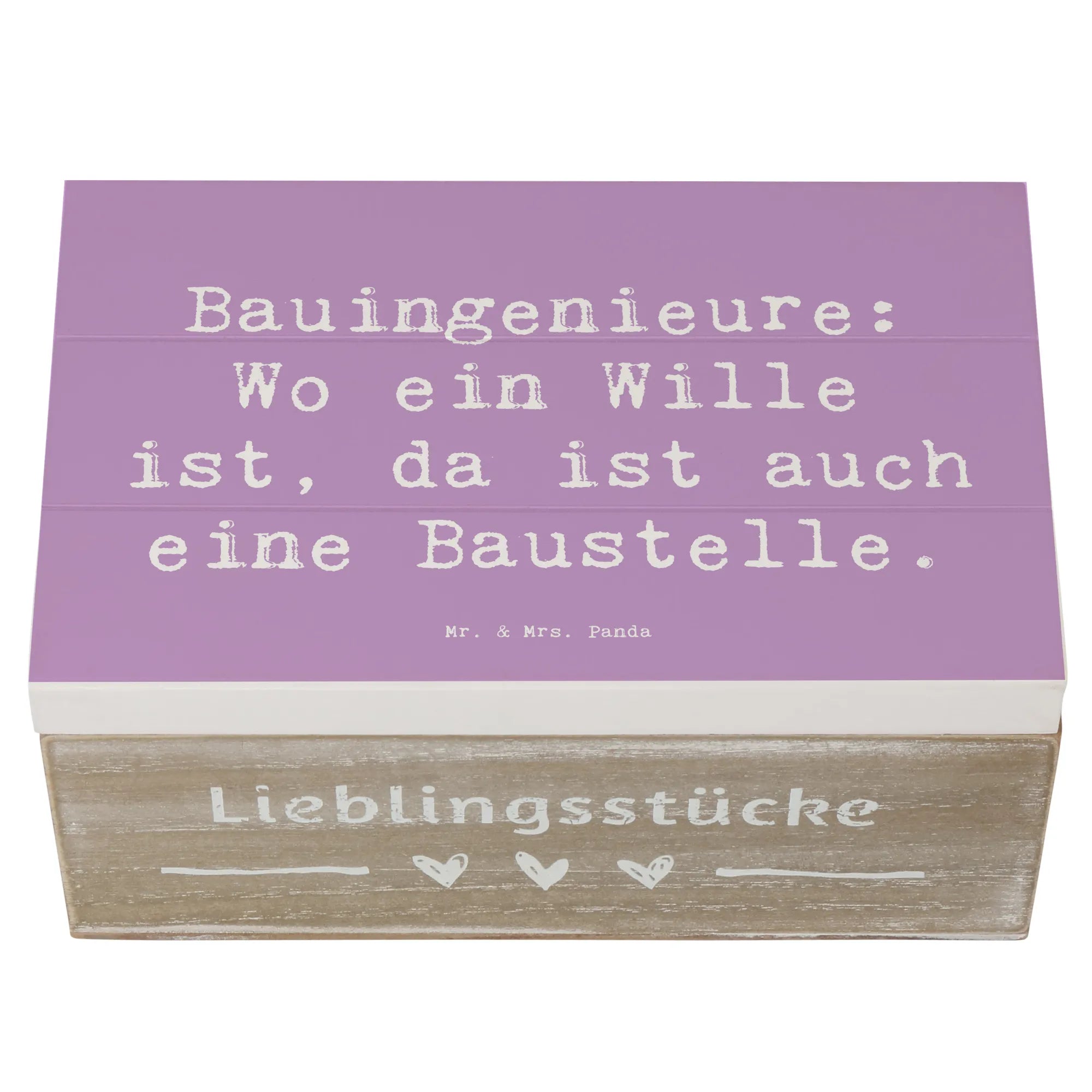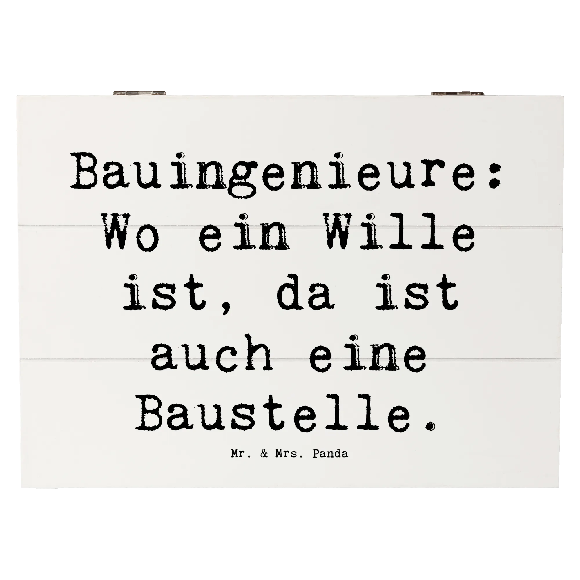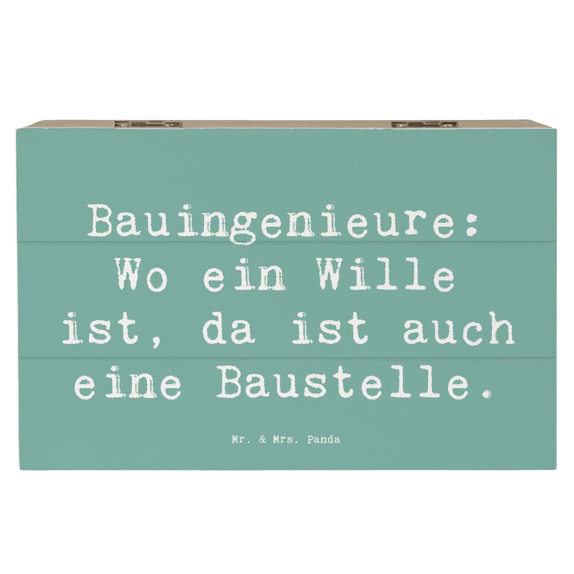 Die Holzkiste "Bauingenieur" von Mr. & Mrs. Panda ist ein liebevolles Geschenk für alle Bauingenieure und solche, die es werden wollen! Diese wunderschöne Kiste verbindet praktische Anwendung mit persönlichem Charme. Dank ihres einzigartigen Spruchs "Bauingenieure: Wo ein Wille ist, da ist auch eine Baustelle" ist sie mehr als nur ein Aufbewahrungsort.