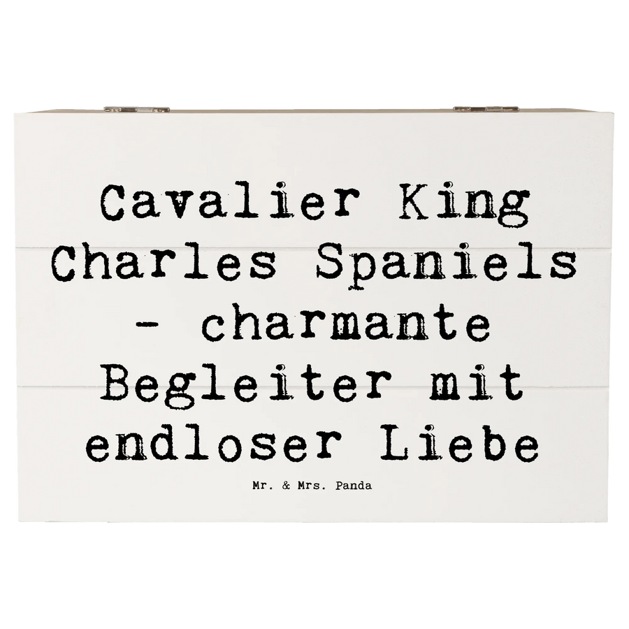 Du suchst das perfekte Geschenk für einen Hundeliebhaber? Unsere wunderschöne Holzkiste mit dem charmanten Cavalier King Charles Spaniel Motiv wird mit Sicherheit für strahlende Augen sorgen! Diese tolle Kiste von Mr. & Mrs. Panda ist nicht nur ein absolutes Schmuckstück, sondern auch äußerst funktional. Ob als Aufbewahrungsort für die liebevollsten Erinnerungen, Fotos oder kleine Schätze – diese Erinnerungskiste hat Platz für all die besonderen Momente in Deinem Leben.