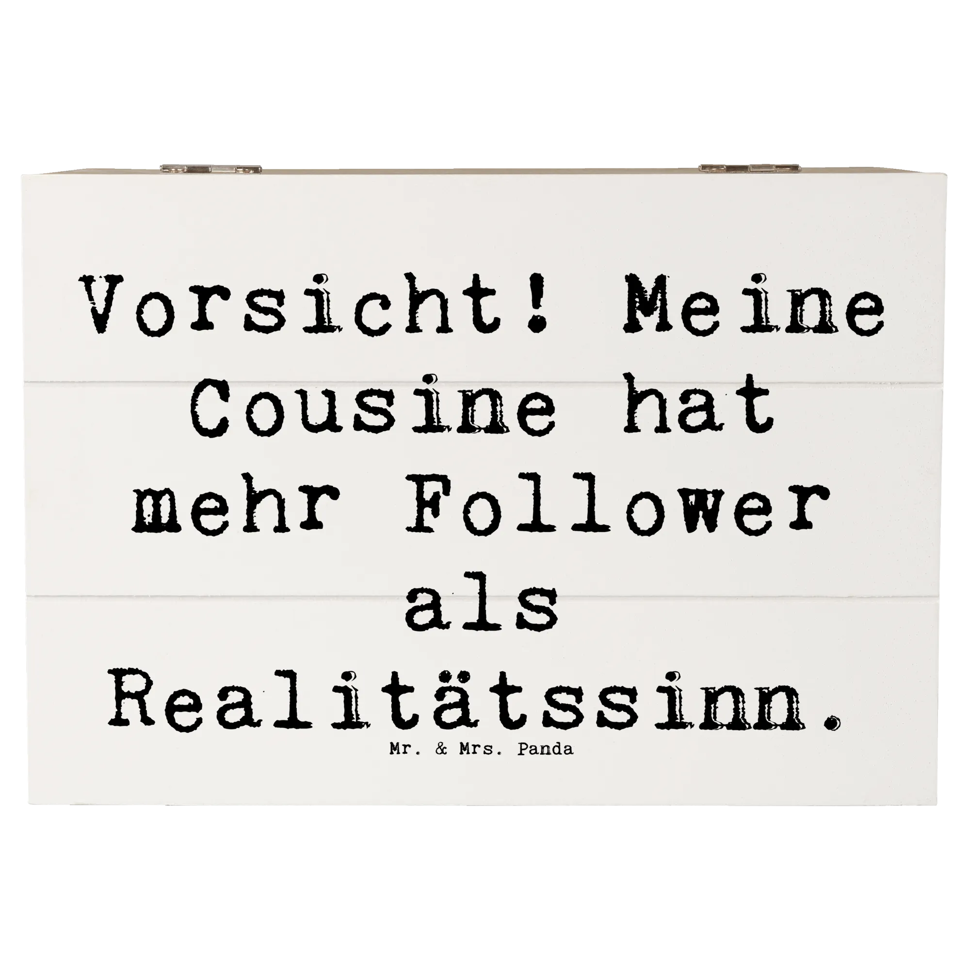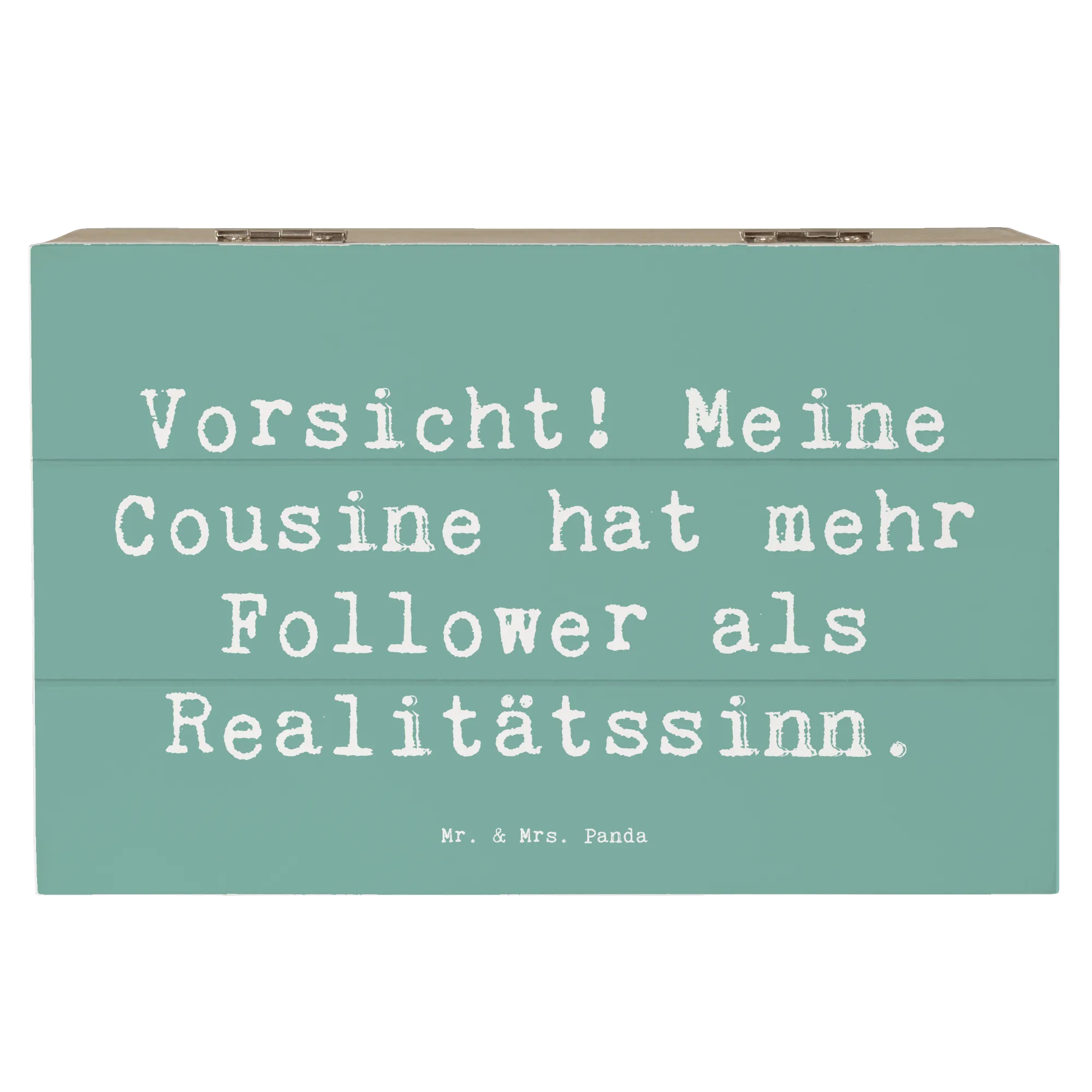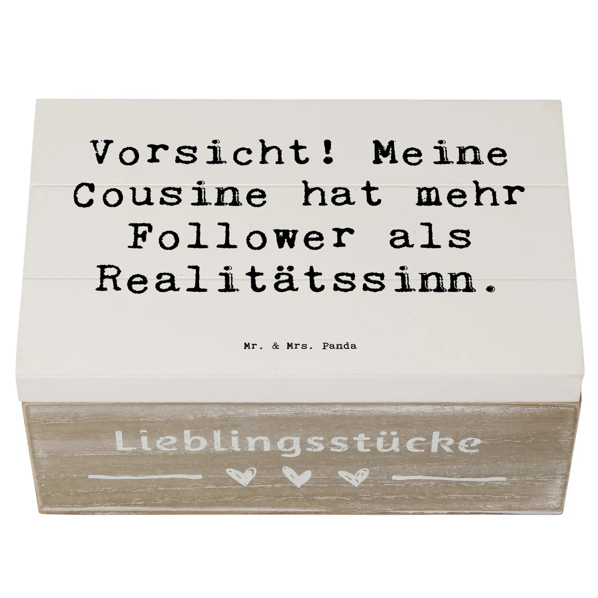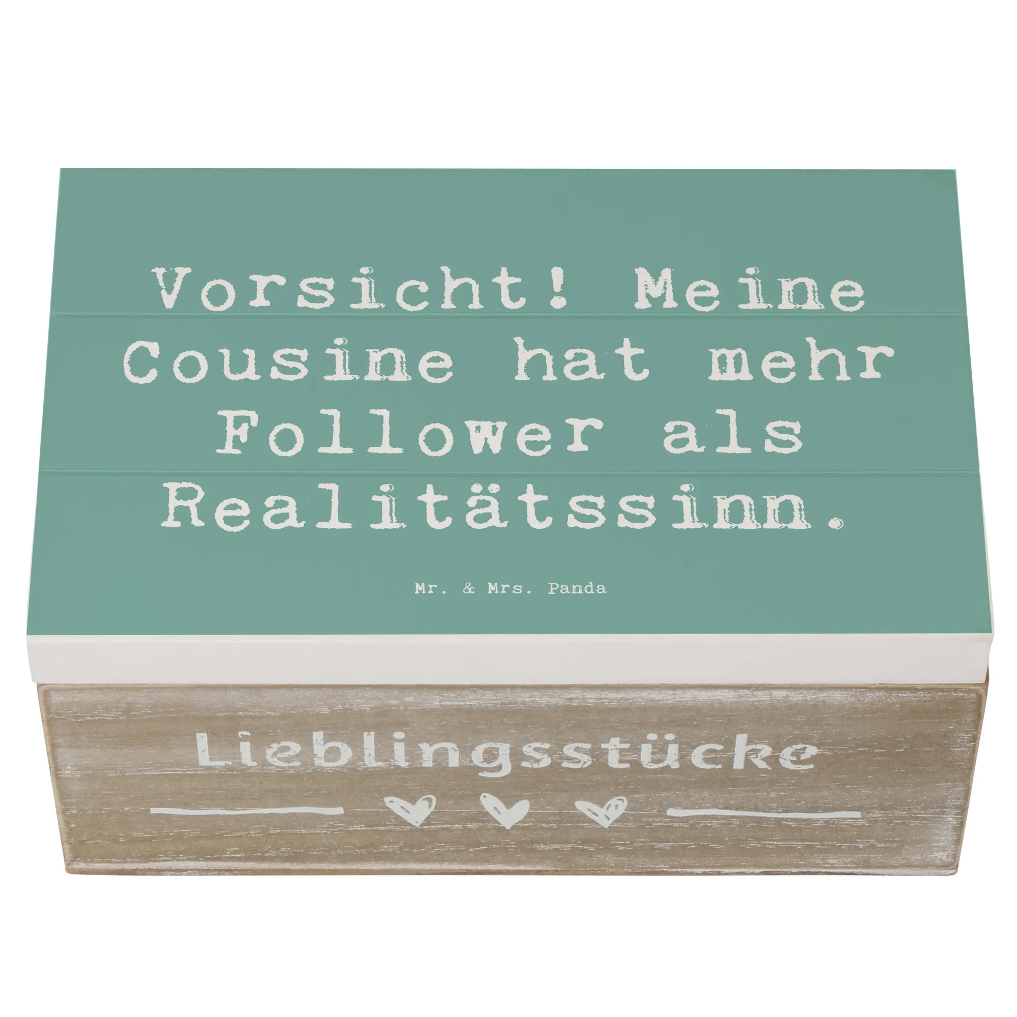 Diese wunderschöne Holzkiste von Mr. & Mrs. Panda ist das perfekte Geschenk für deine Cousine oder deinen Cousin. Mit dem charmanten Spruch "Vorsicht! Meine Cousine hat mehr Follower als Realitätssinn." bringt diese Kiste nicht nur ein Lächeln in ihr Gesicht, sondern ist auch eine stilvolle Aufbewahrungsmöglichkeit für all ihre Schätze.
