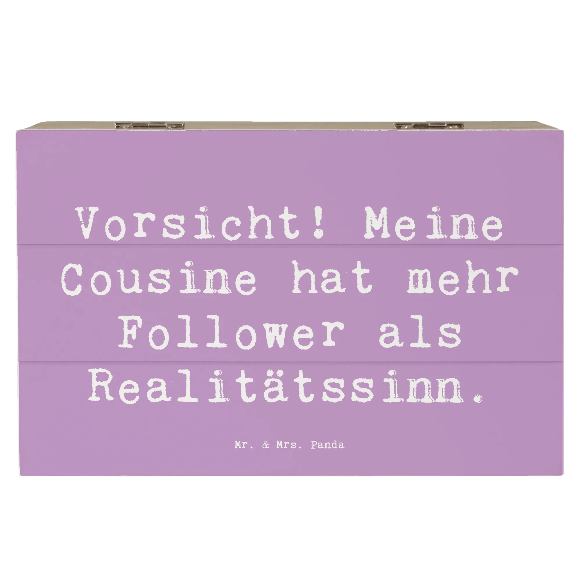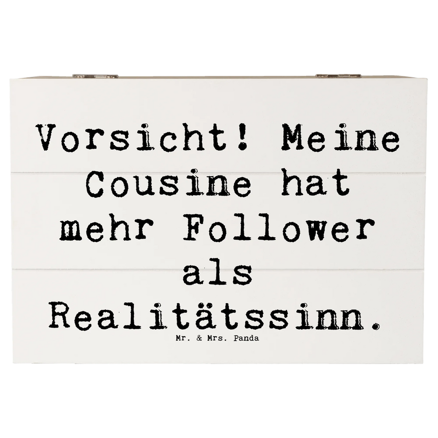 Eine wunderschöne Holzkiste von Mr. & Mrs. Panda – liebevoll gestaltet und mit einem frechen Spruch, der sofort sympathisch macht: Vorsicht! Meine Cousine hat mehr Follower als Realitätssinn. Diese Holzkiste ist das perfekte Geschenk für Cousins und Cousinen, die Humor, Familie und Erinnerungen schätzen.