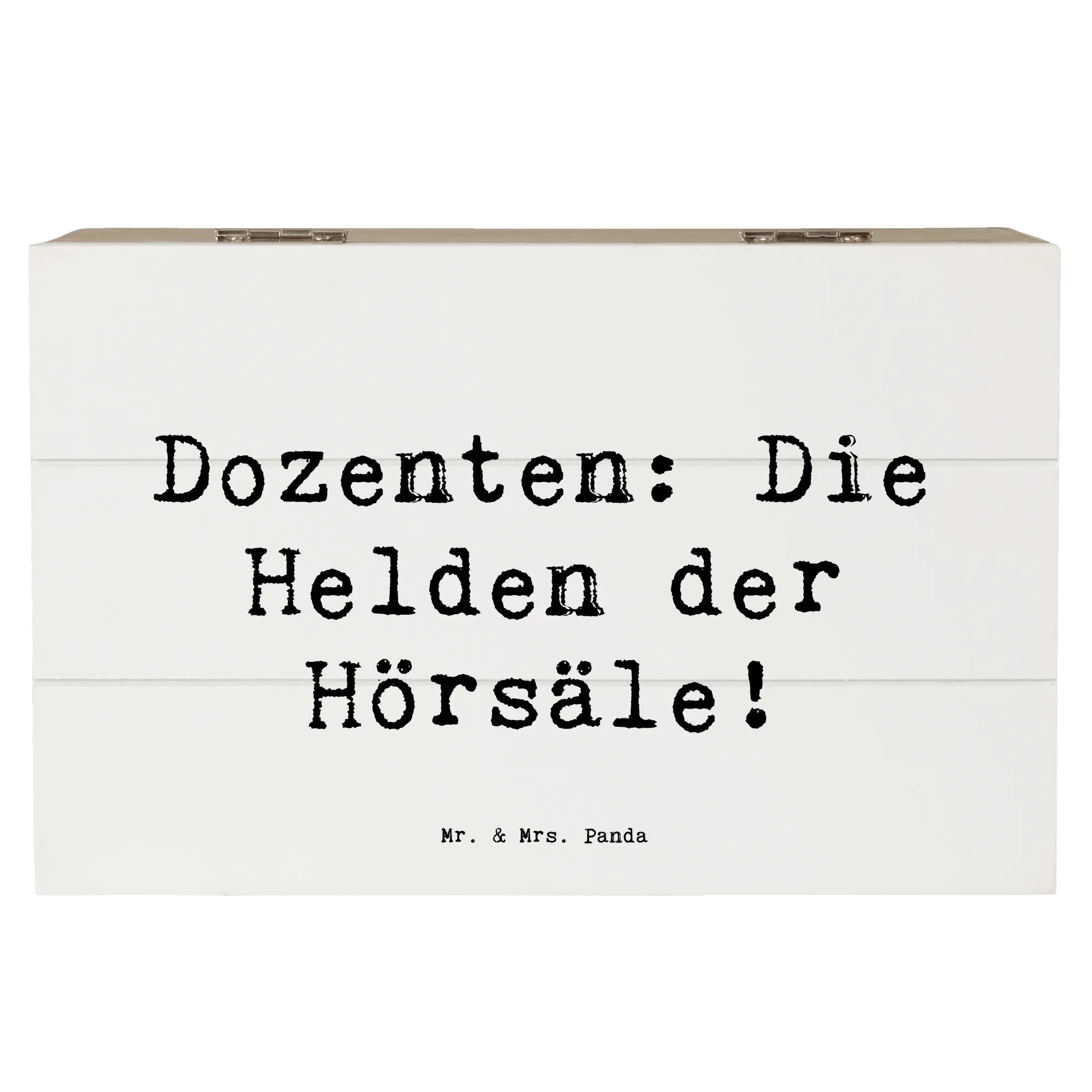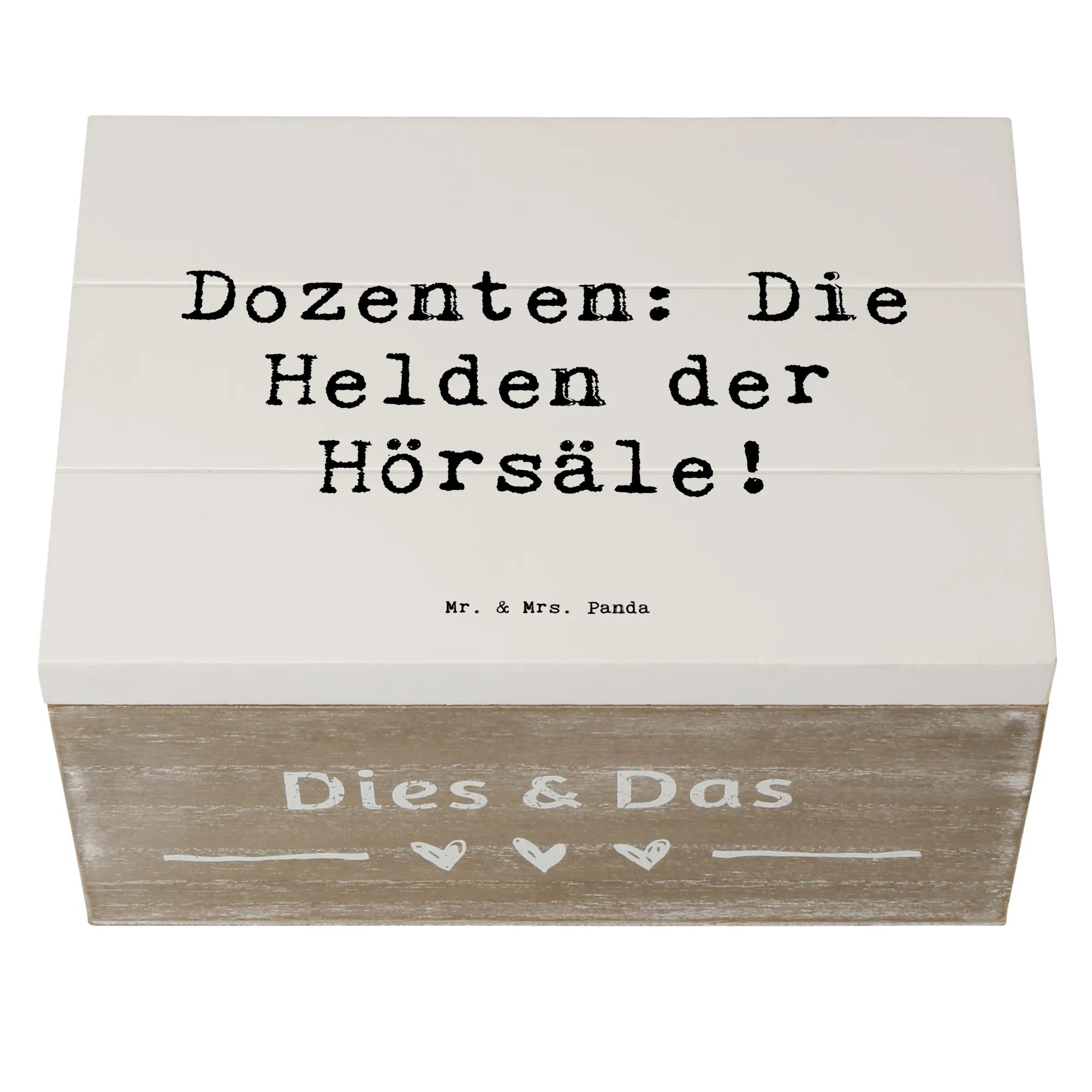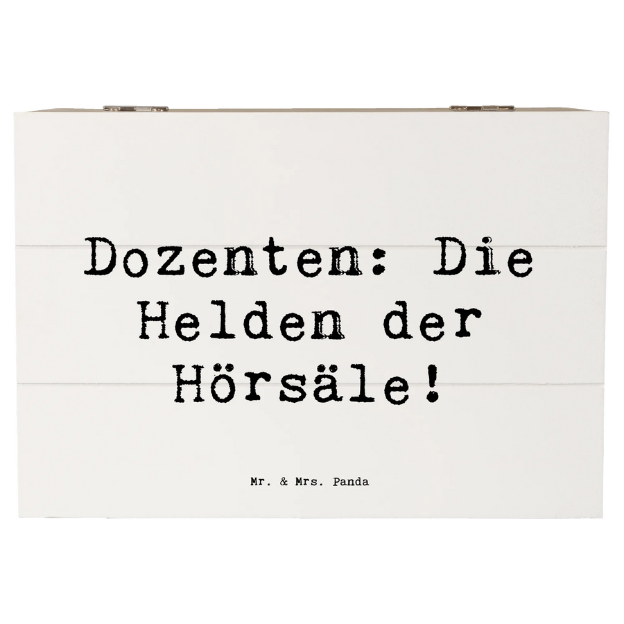 Die wunderschöne Holzkiste von Mr. & Mrs. Panda mit dem tollen Motiv 'Dozenten: Die Helden der Hörsäle!' ist das perfekte Geschenk für alle, die im Bildungsbereich tätig sind oder das Studium lieben. Diese sorgfältig gestaltete XXL Erinnerungsbox bietet nicht nur ausreichend Platz für die besonderen Schätze deines Lebens, sondern erinnert auch an all die wunderbaren Momente im Hörsaal.