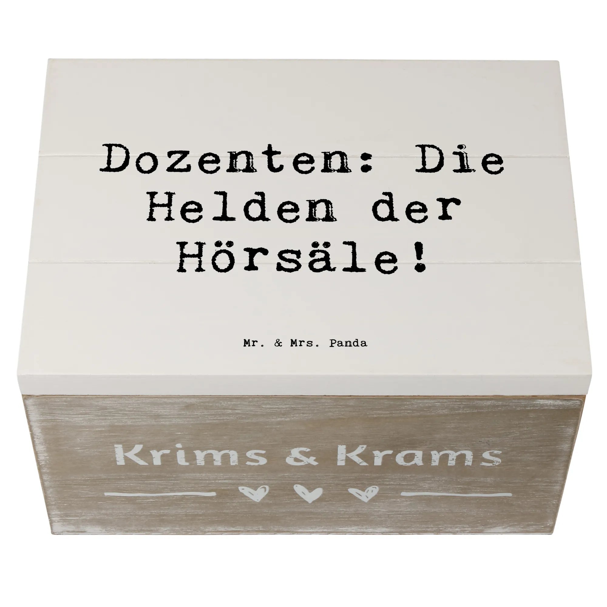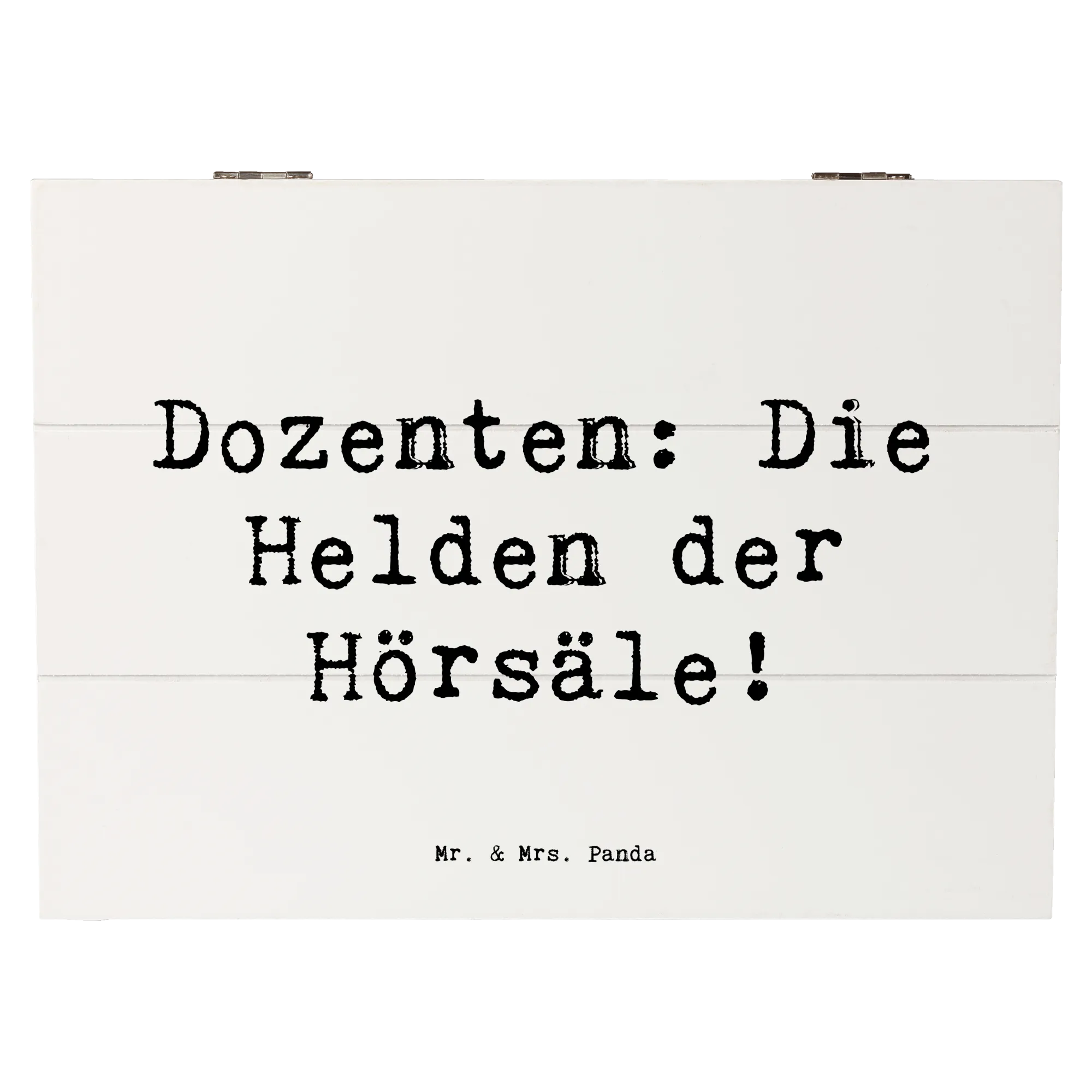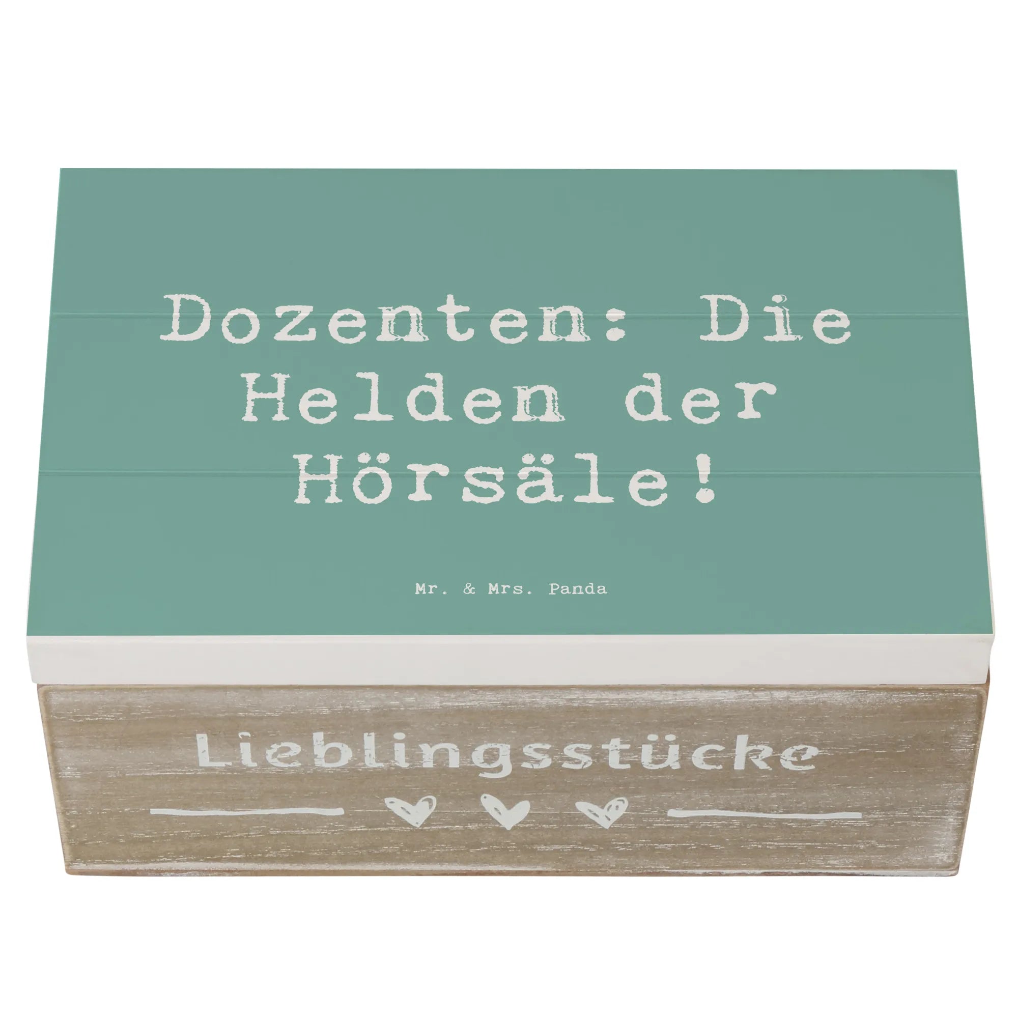 Die wunderschöne Holzkiste von Mr. & Mrs. Panda mit dem tollen Motiv 'Dozenten: Die Helden der Hörsäle!' ist das perfekte Geschenk für alle, die im Bildungsbereich tätig sind oder das Studium lieben. Diese sorgfältig gestaltete XXL Erinnerungsbox bietet nicht nur ausreichend Platz für die besonderen Schätze deines Lebens, sondern erinnert auch an all die wunderbaren Momente im Hörsaal.