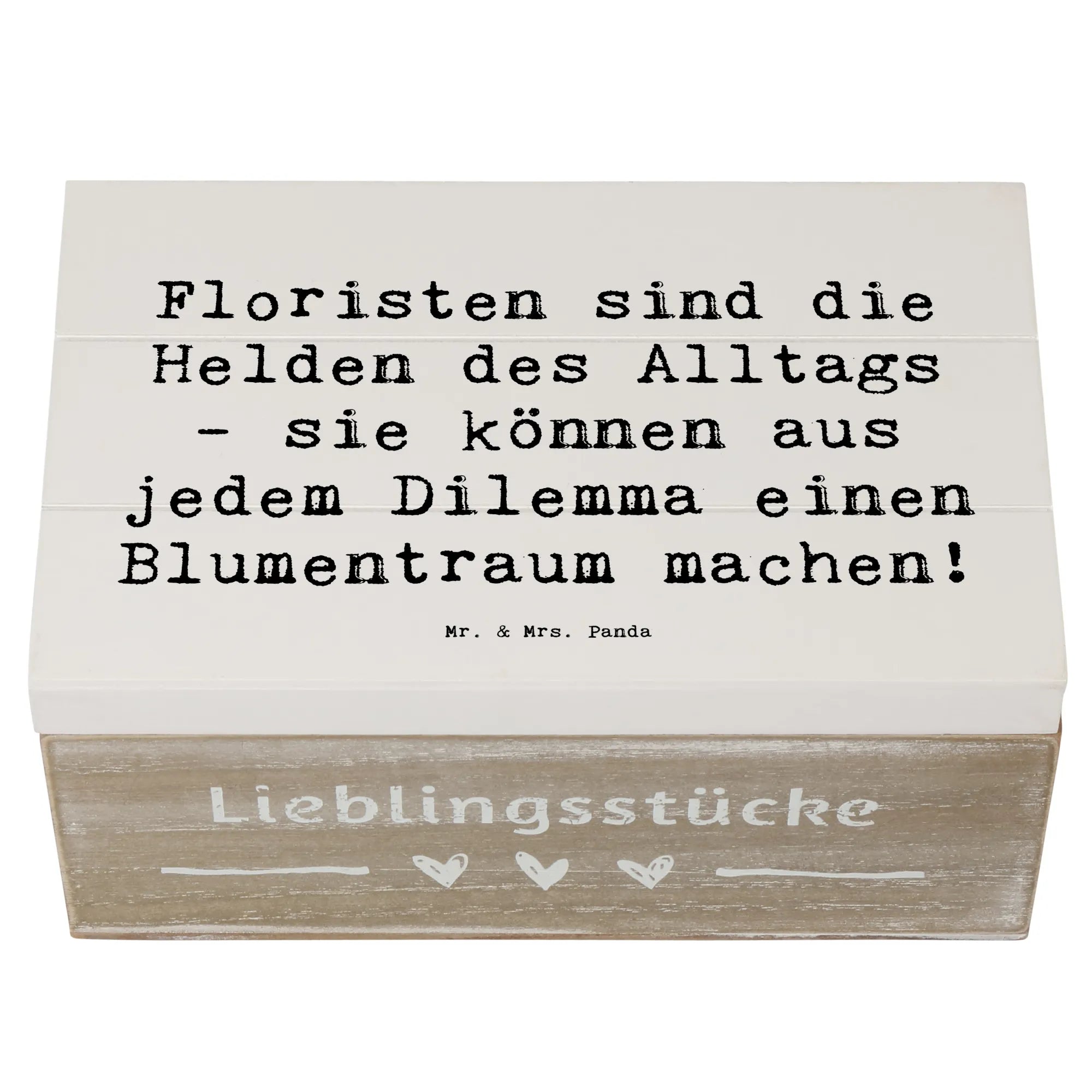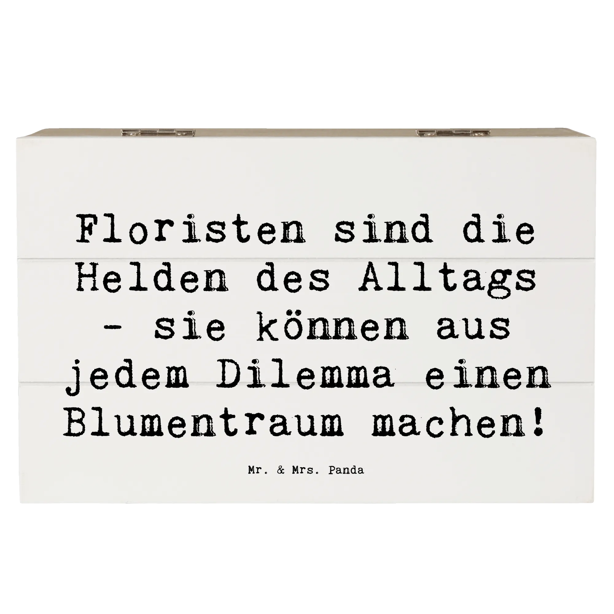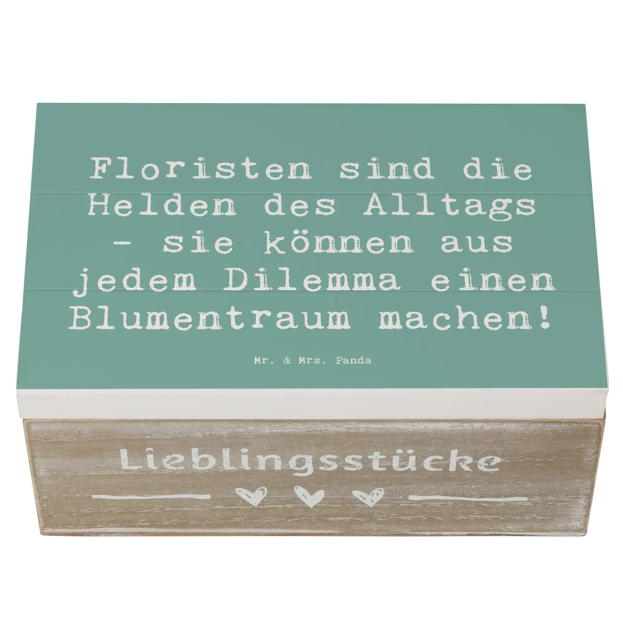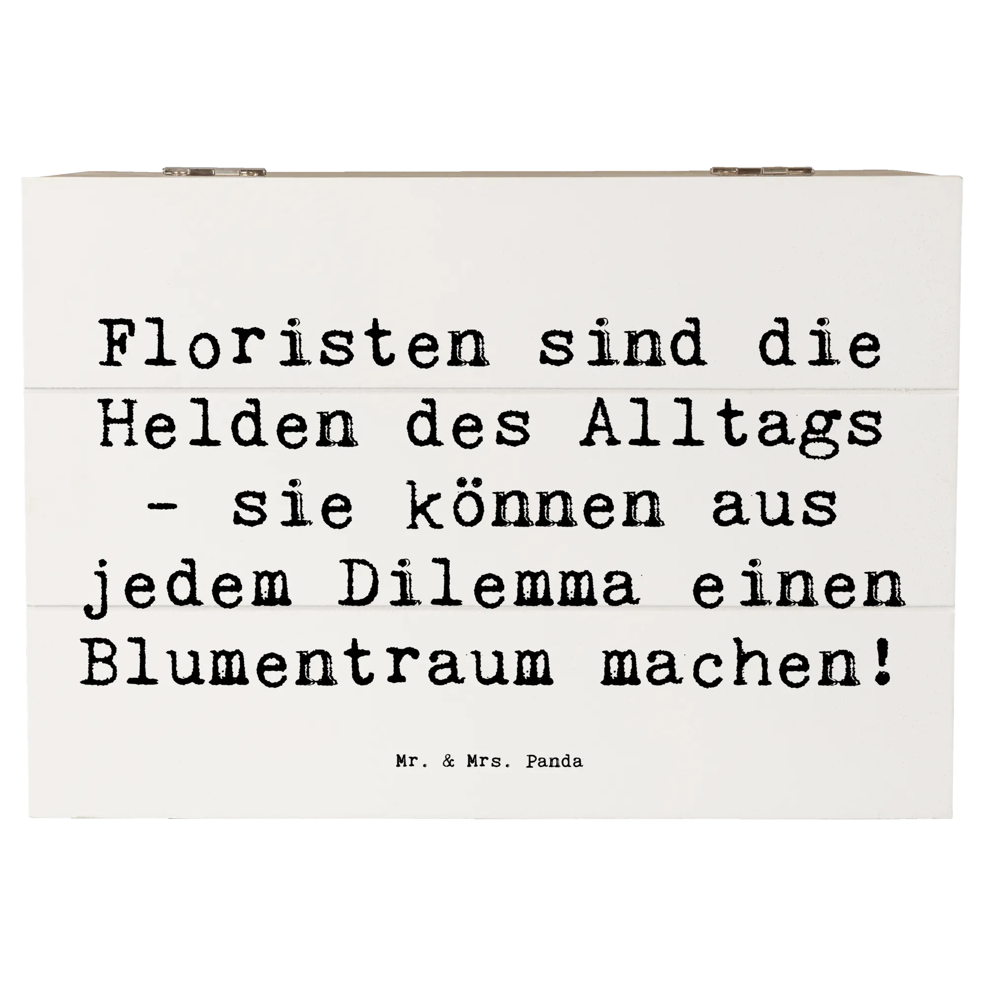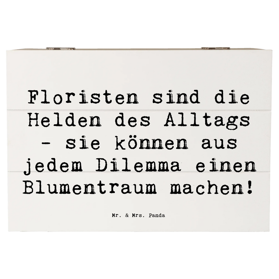 Die wunderschöne Holzkiste von Mr. & Mrs. Panda ist das ideale Geschenk für alle Floristen und Blumenliebhaber! Diese besondere Schatzkiste, ein Teil unserer Kollektion "Berufe", ist mit dem liebevollen Spruch "Floristen sind die Helden des Alltags - sie können aus jedem Dilemma einen Blumentraum machen!" bedruckt und bringt strahlende Freude in jeden Raum.