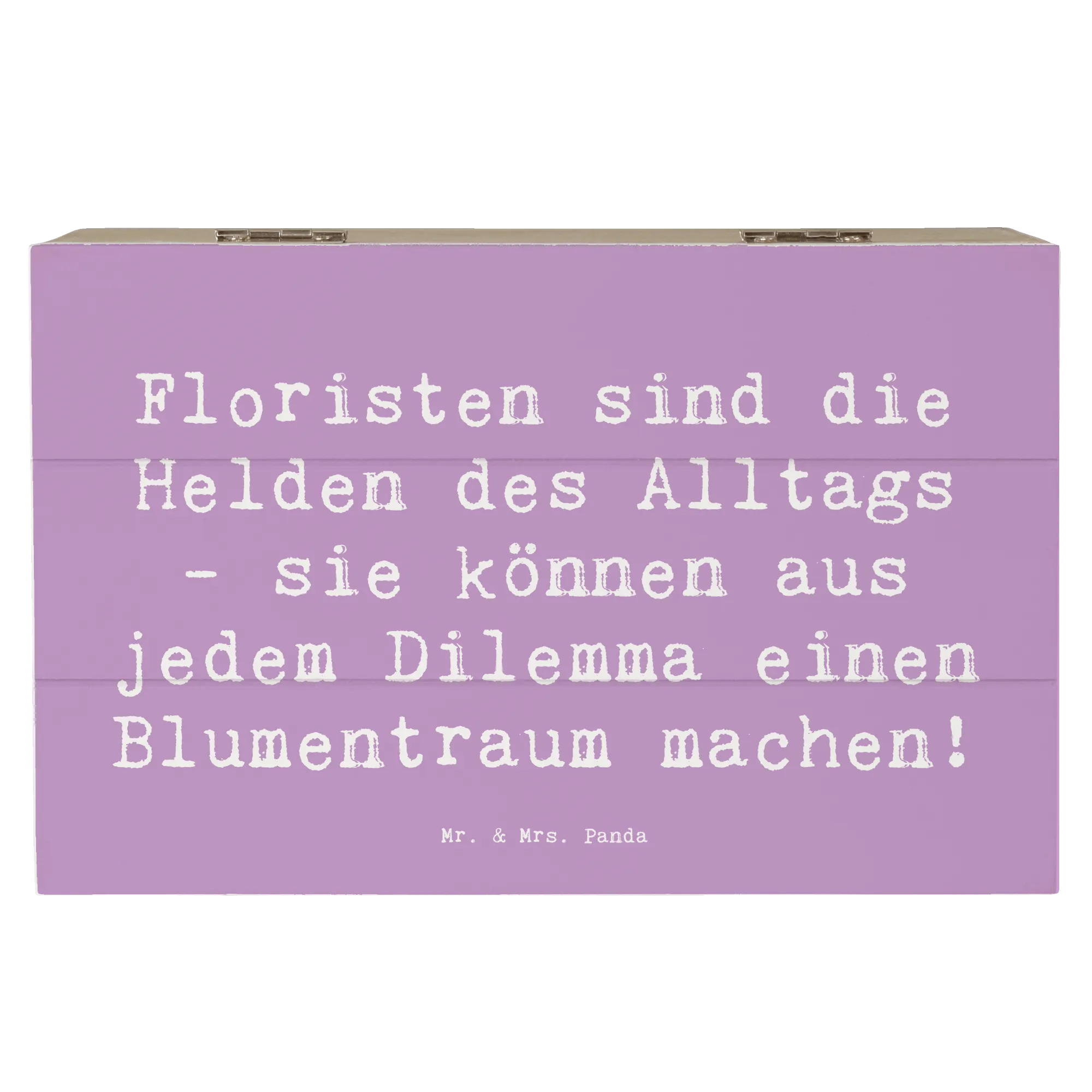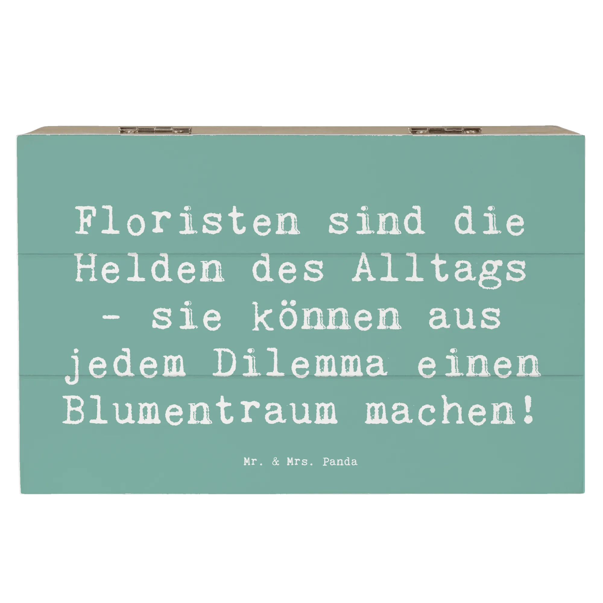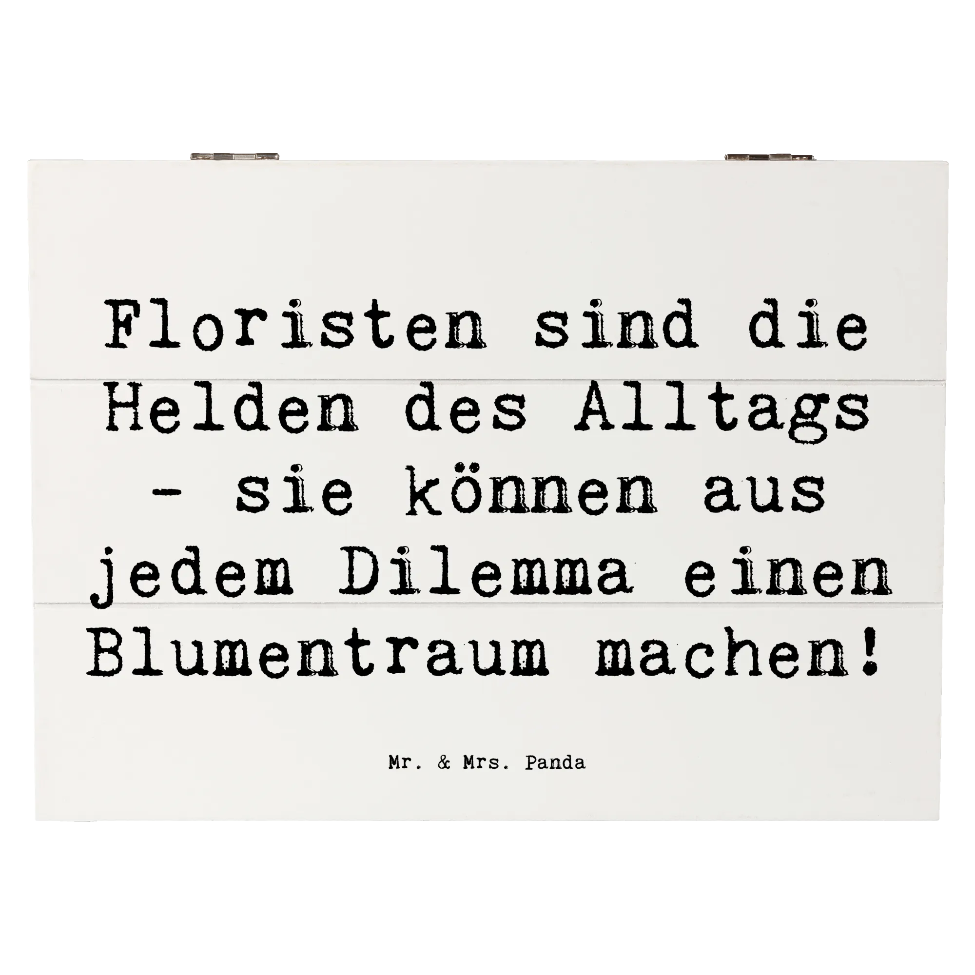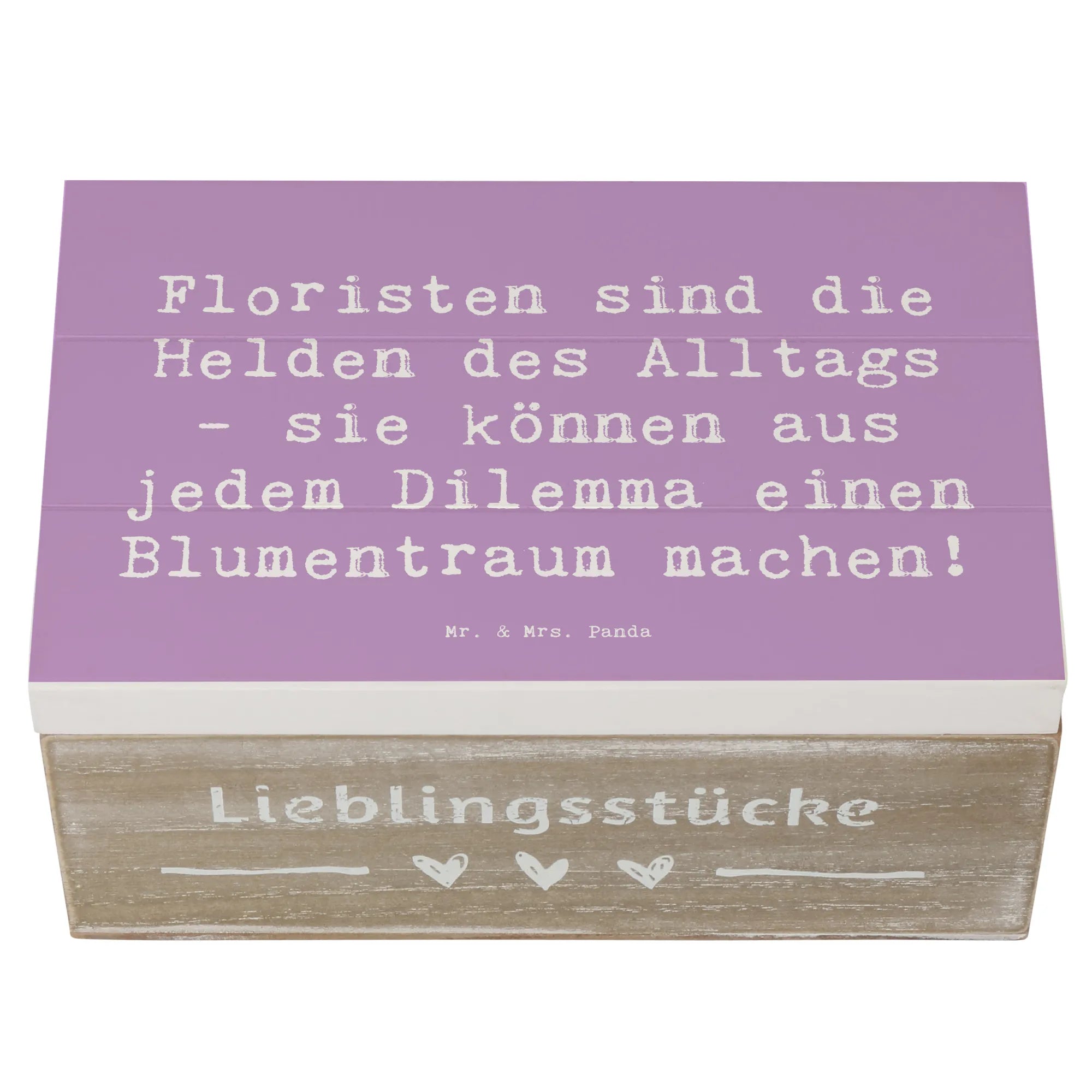 Die wunderschöne Holzkiste von Mr. & Mrs. Panda ist das ideale Geschenk für alle Floristen und Blumenliebhaber! Diese besondere Schatzkiste, ein Teil unserer Kollektion "Berufe", ist mit dem liebevollen Spruch "Floristen sind die Helden des Alltags - sie können aus jedem Dilemma einen Blumentraum machen!" bedruckt und bringt strahlende Freude in jeden Raum.