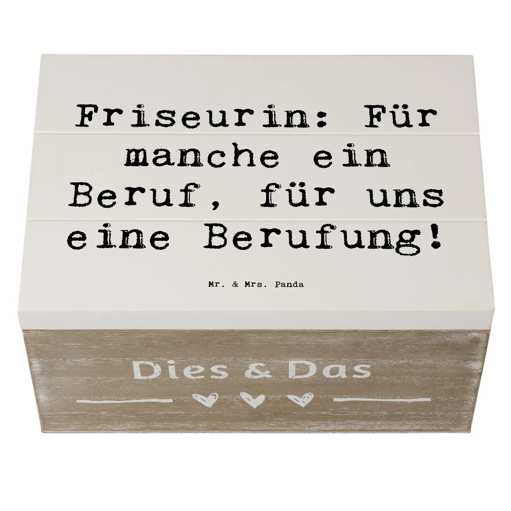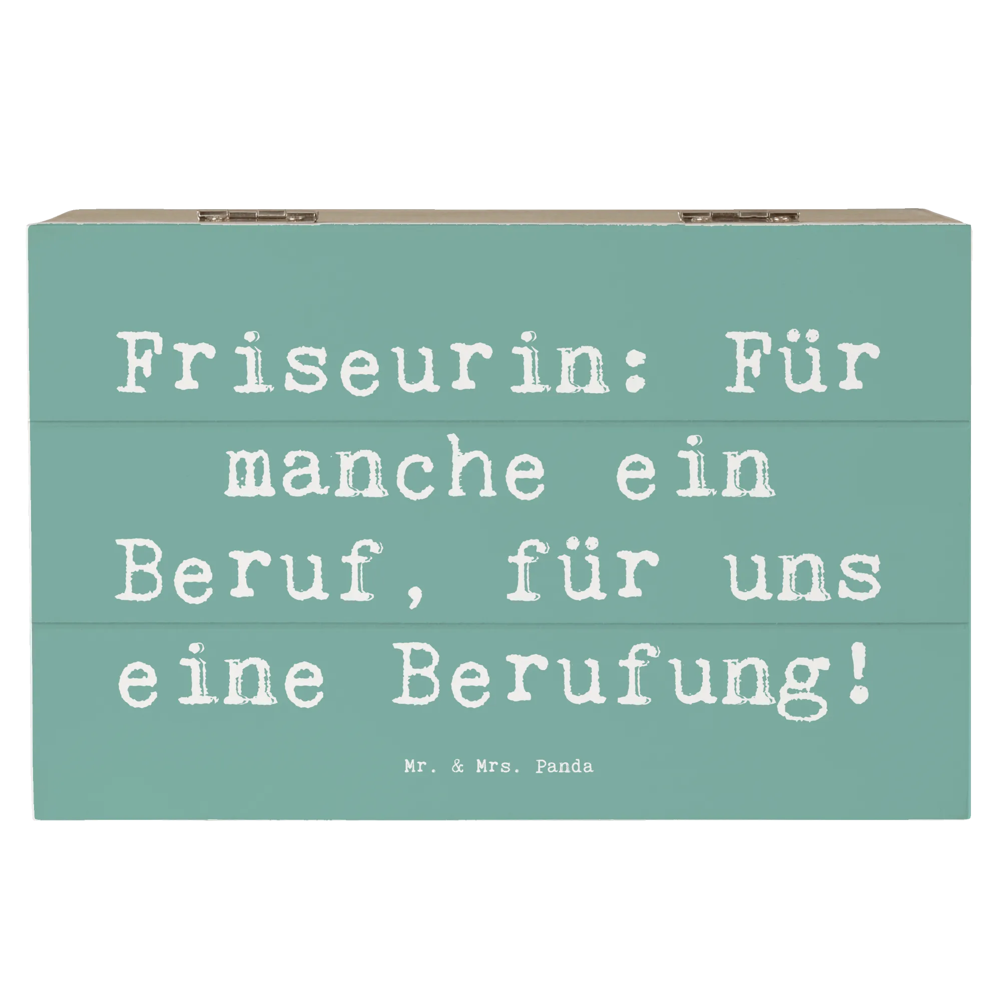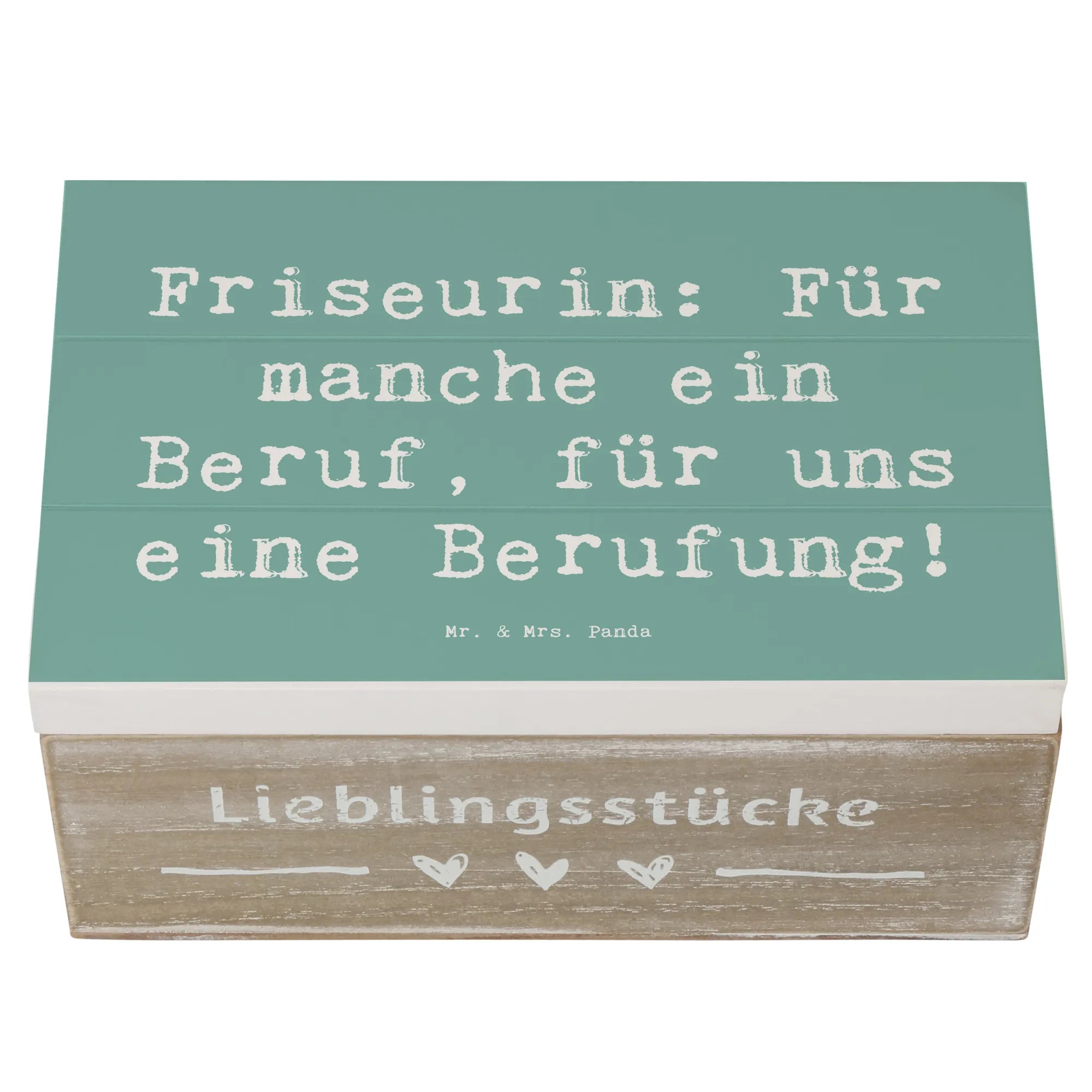 Die wunderschöne Holzkiste 'Friseurin: Für manche ein Beruf, für uns eine Berufung!' von Mr. & Mrs. Panda ist das perfekte Geschenk für alle, die in der kreativen Welt der Friseure arbeiten.
