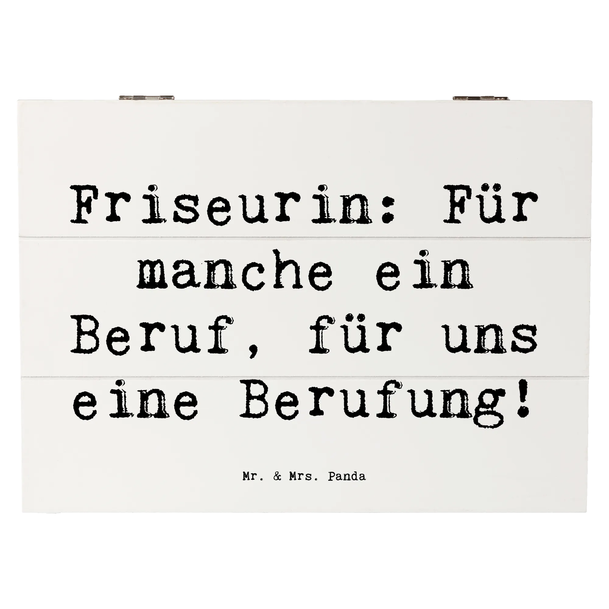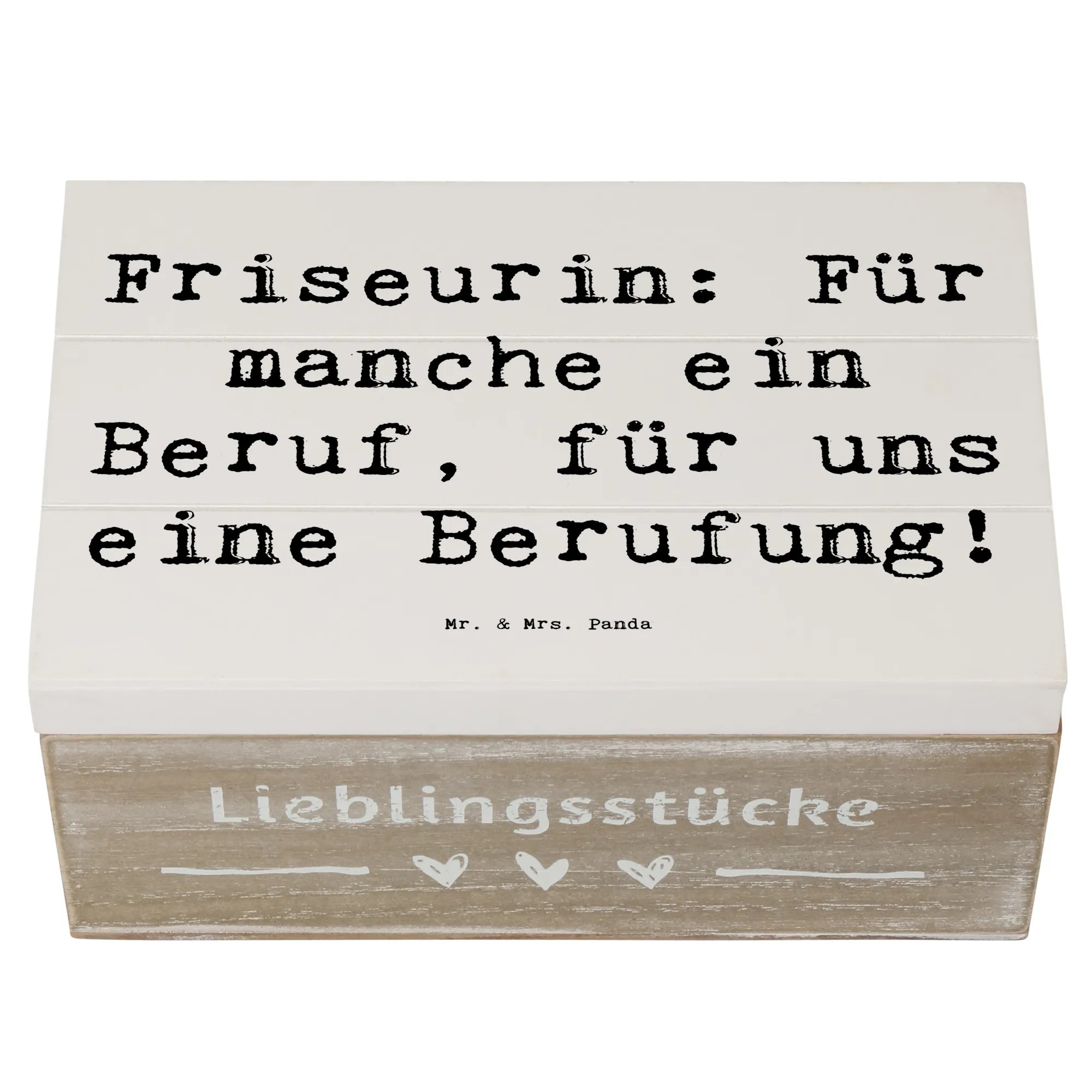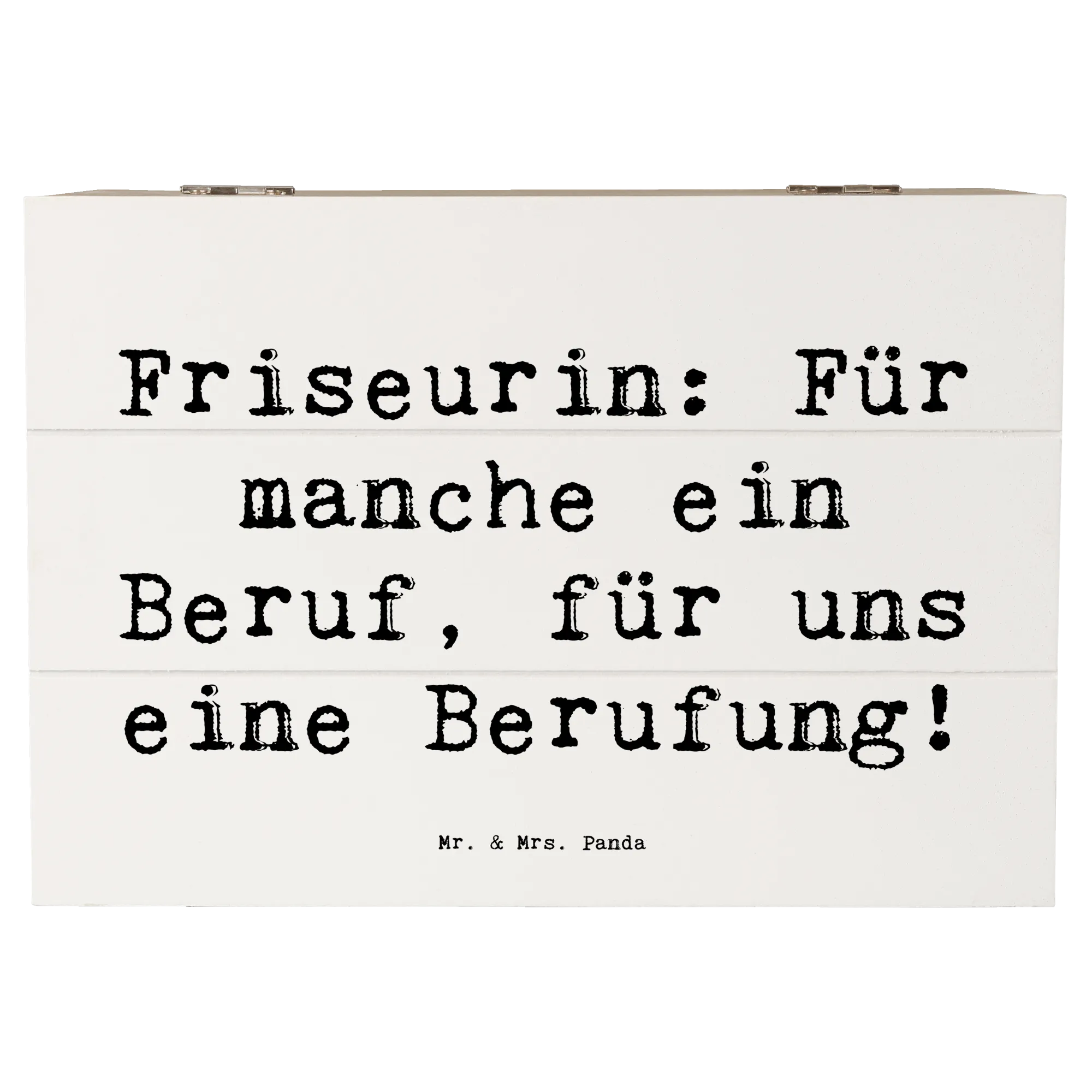Die wunderschöne Holzkiste 'Friseurin: Für manche ein Beruf, für uns eine Berufung!' von Mr. & Mrs. Panda ist das perfekte Geschenk für alle, die in der kreativen Welt der Friseure arbeiten.