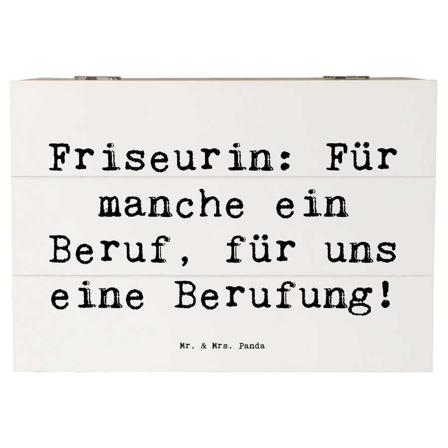 Die wunderschöne Holzkiste von Mr. & Mrs. Panda mit dem inspirierenden Motto "Friseurin: Für manche ein Beruf, für uns eine Berufung!" ist das perfekte Geschenk für alle Friseurinnen und Friseure, die mehr als nur ihren Job lieben.