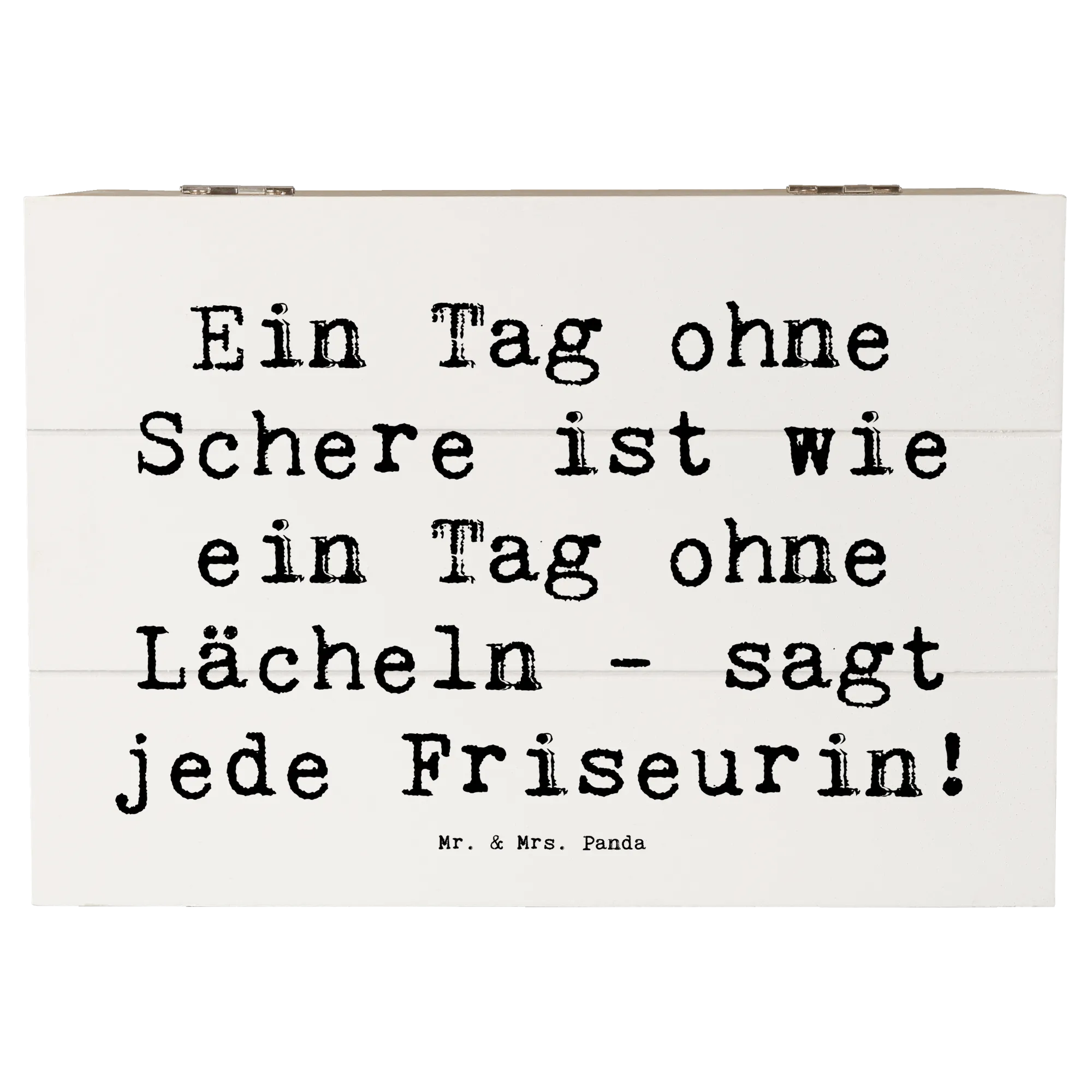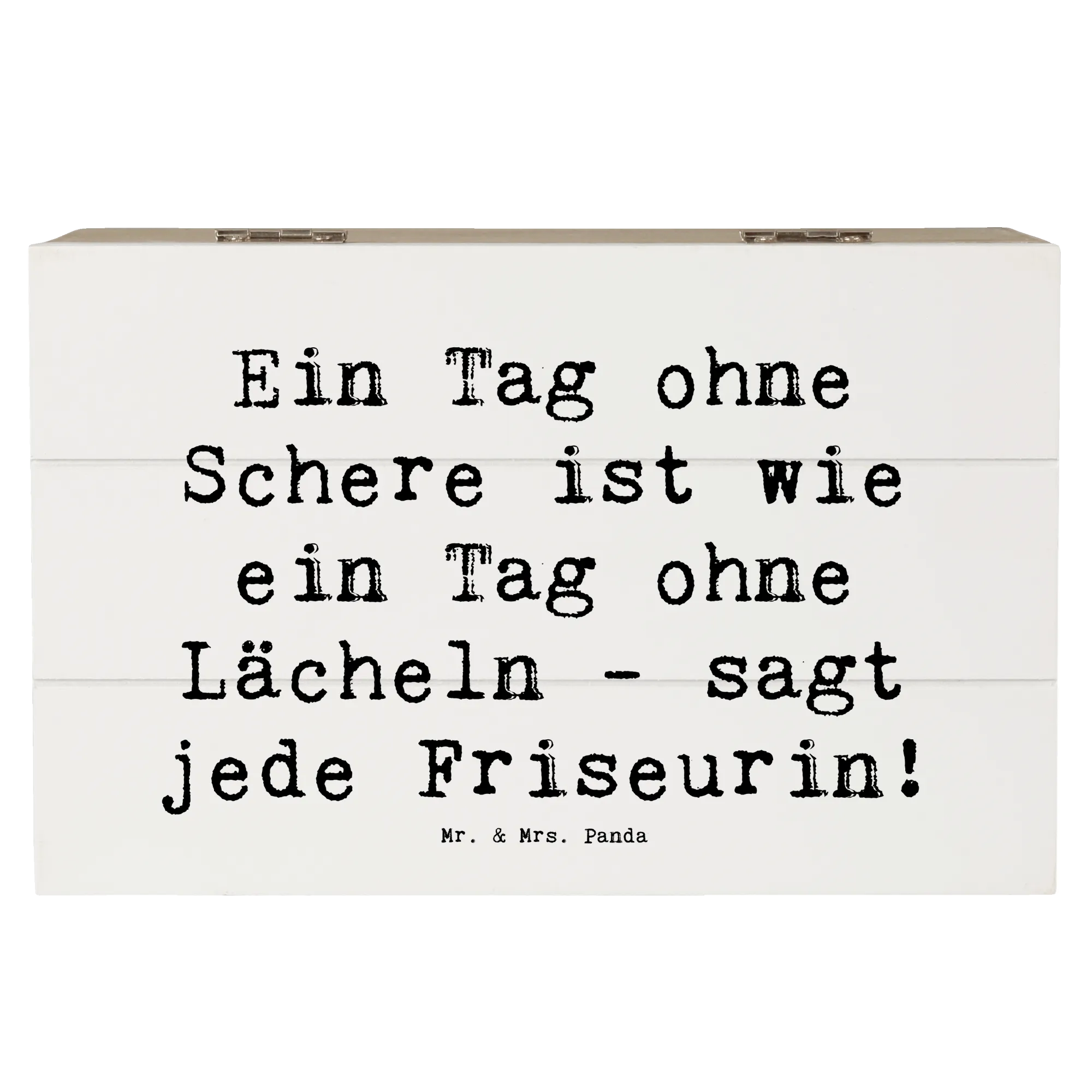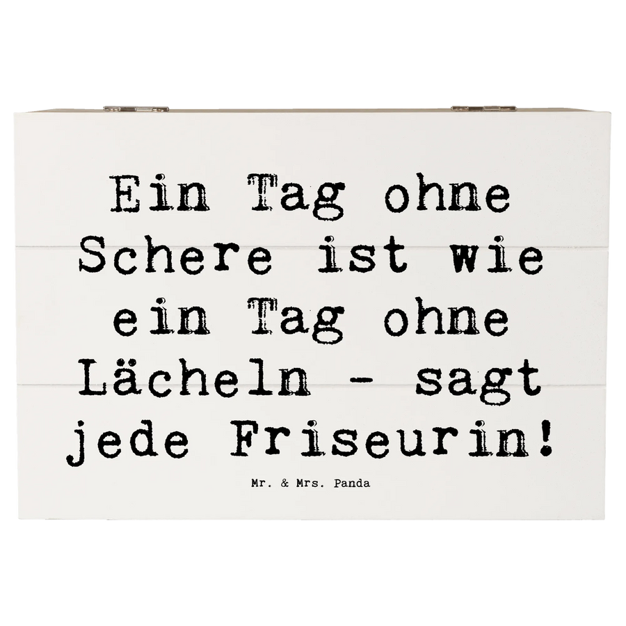 Eine bezaubernde Holzkiste von Mr. & Mrs. Panda – perfekt als Schatzkiste, Erinnerungskiste oder Geschenkbox. Das liebevoll illustrierte Motiv „Friseurin“ mit dem Spruch „Ein Tag ohne Schere ist wie ein Tag ohne Lächeln - sagt jede Friseurin!“ bringt Charme und ein Lächeln in jeden Raum. 🎁