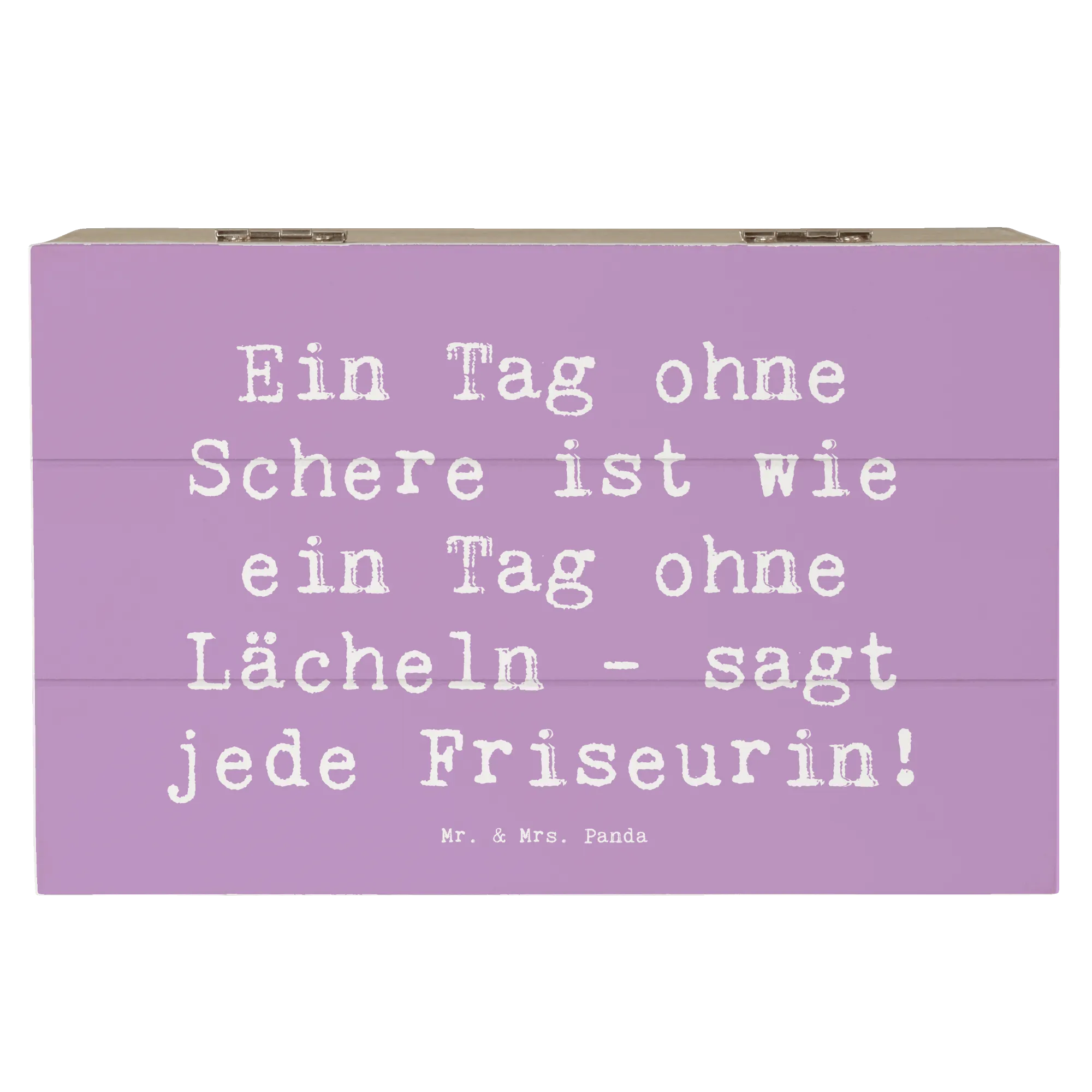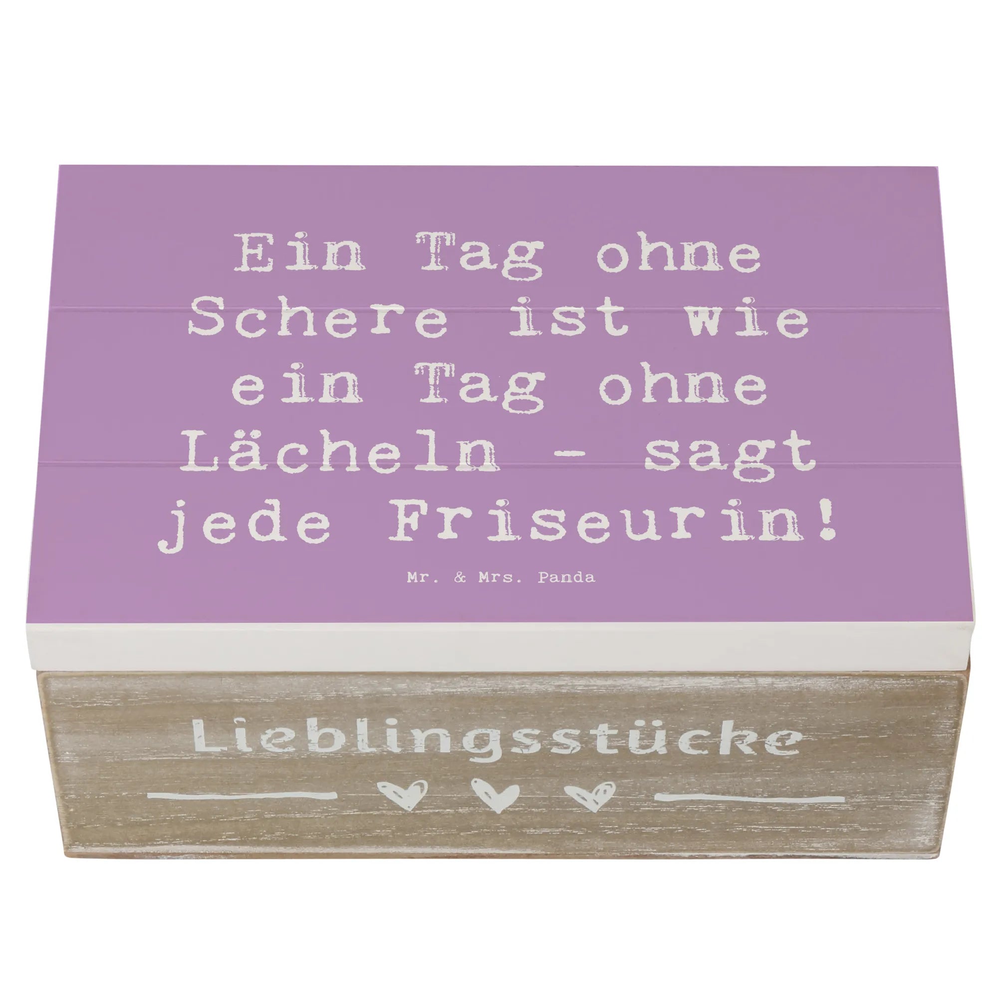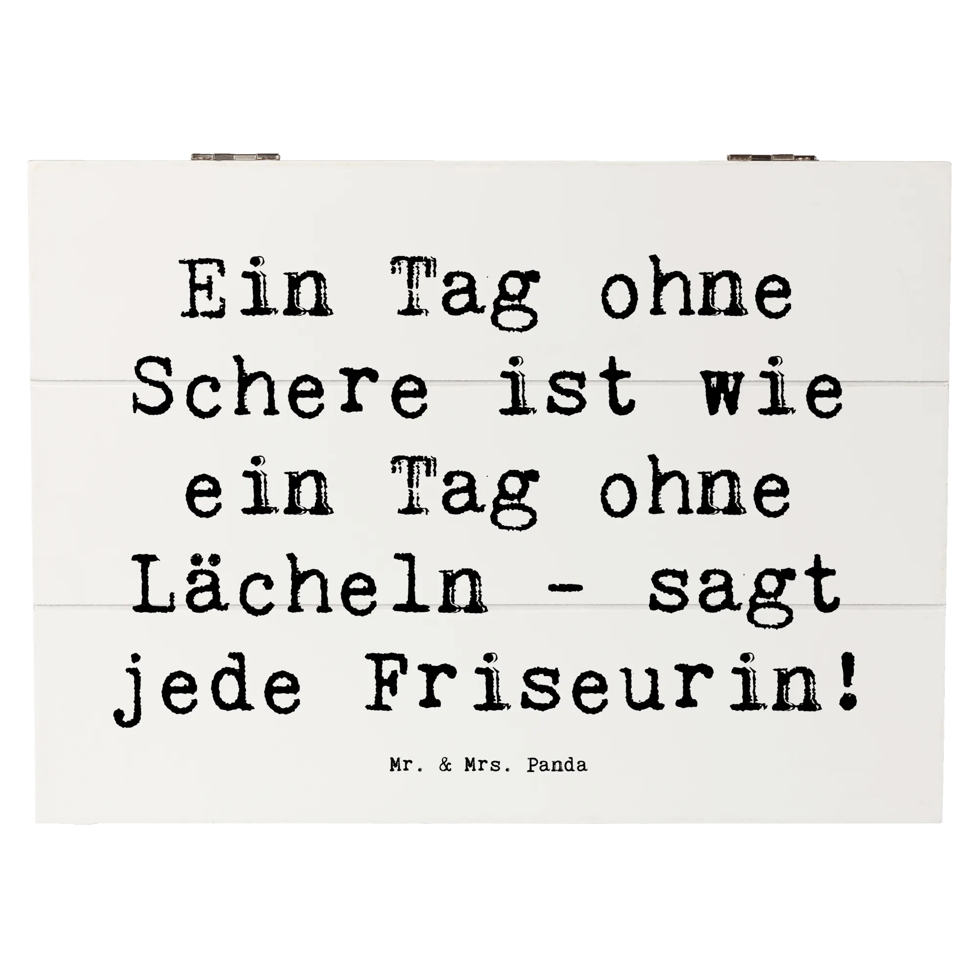 Eine bezaubernde Holzkiste von Mr. & Mrs. Panda – perfekt als Schatzkiste, Erinnerungskiste oder Geschenkbox. Das liebevoll illustrierte Motiv „Friseurin“ mit dem Spruch „Ein Tag ohne Schere ist wie ein Tag ohne Lächeln - sagt jede Friseurin!“ bringt Charme und ein Lächeln in jeden Raum. 🎁