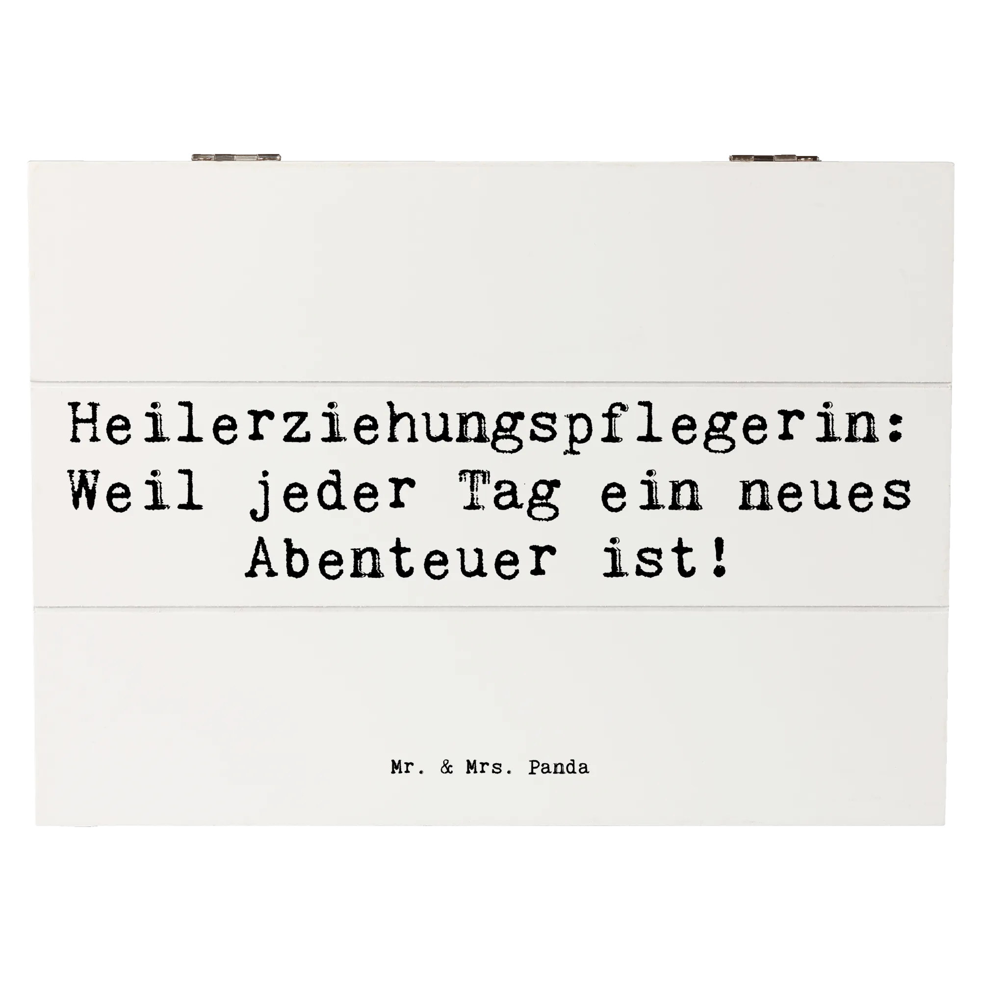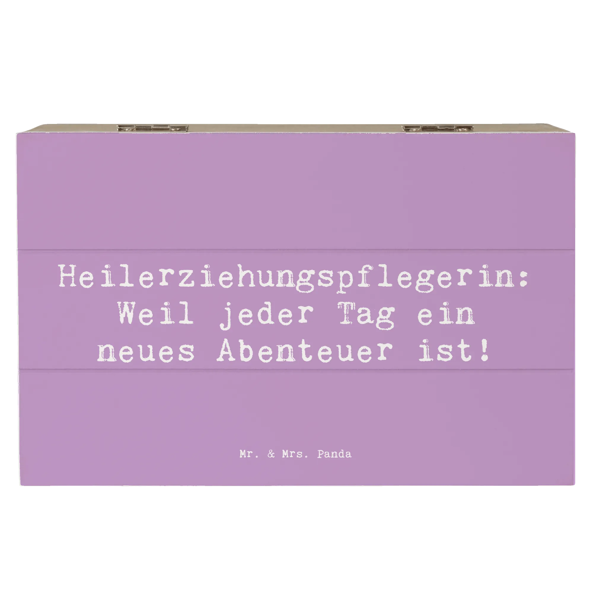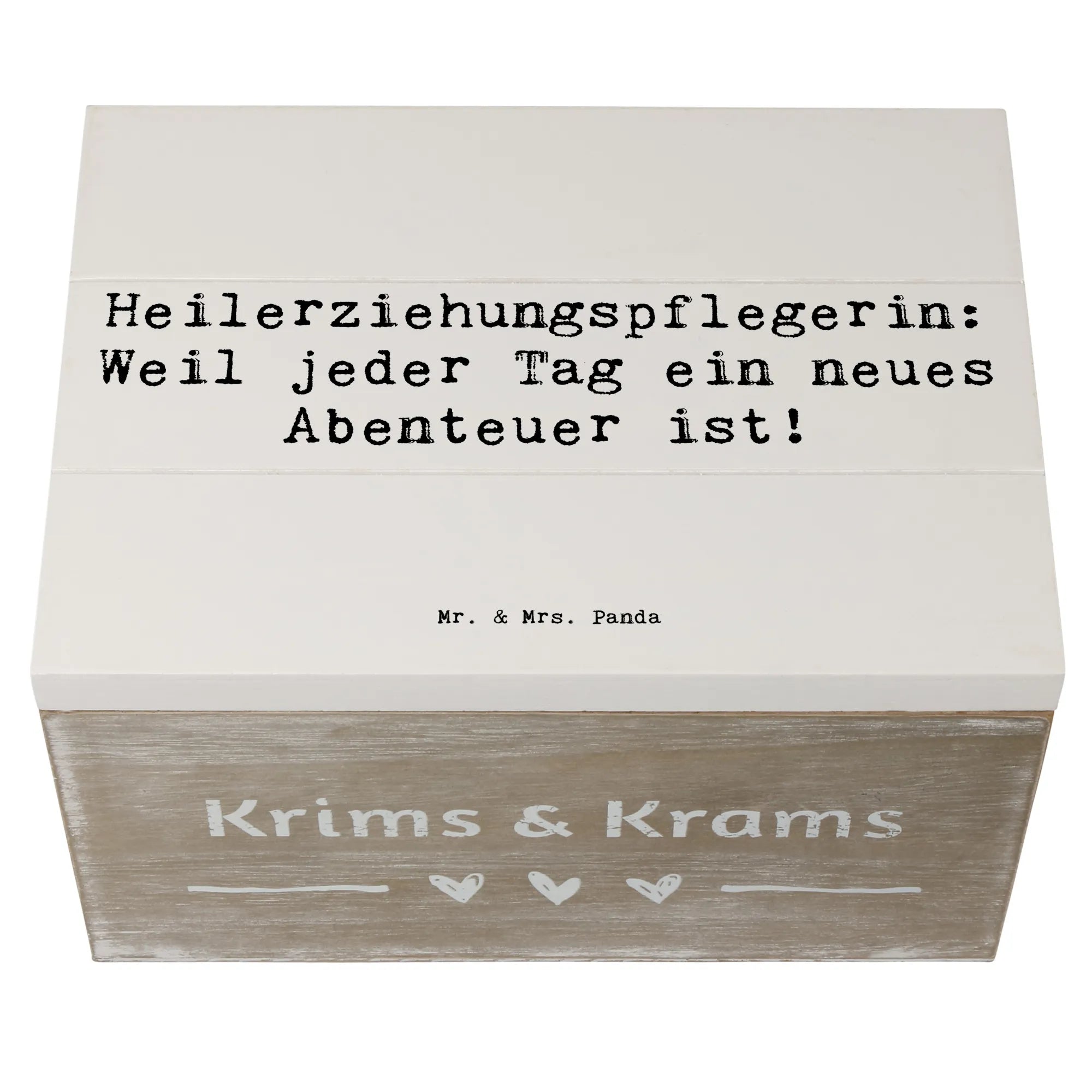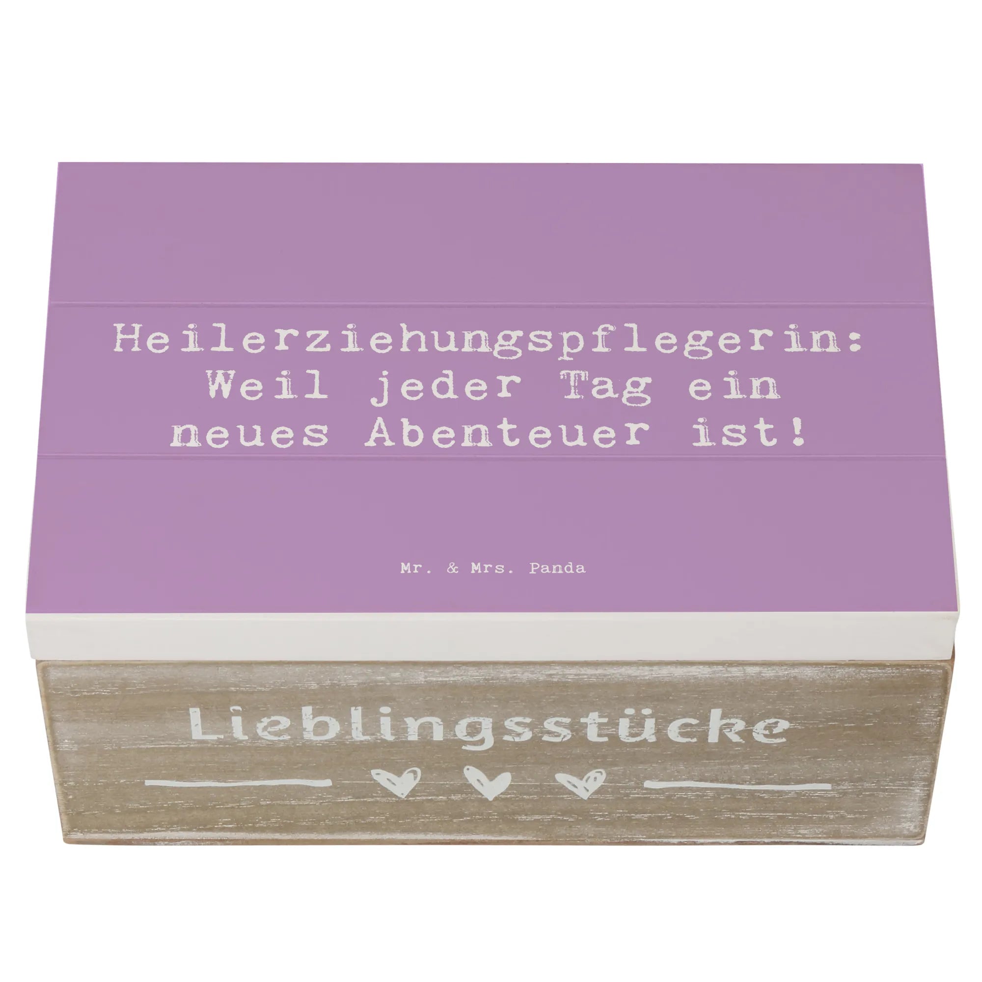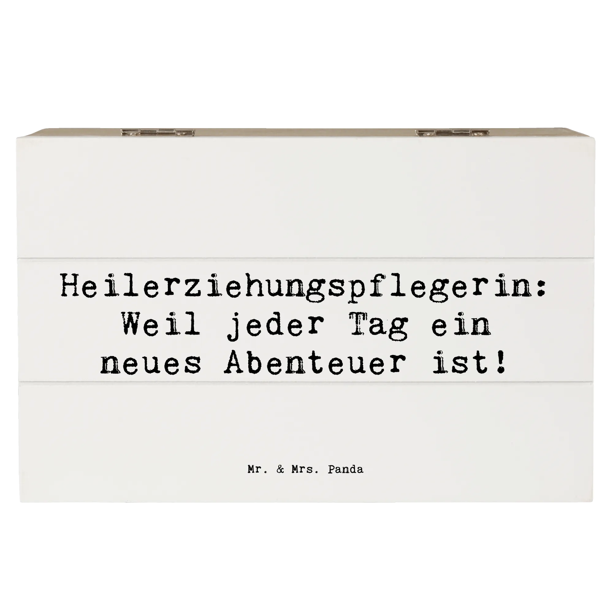 Die Holzkiste "Heilerziehungspflegerin: Weil jeder Tag ein neues Abenteuer ist!" von Mr. & Mrs. Panda ist das perfekte Geschenk für alle, die im Bereich der Heilerziehung arbeiten oder eine besondere Beziehung zu diesem Beruf haben. Diese wunderschöne Kiste fasst nicht nur die Herausforderungen und Freuden dieser bedeutungsvollen Arbeit zusammen, sondern bietet auch einen praktischen und stilvollen Ort, um Erinnerungen oder kleine Schätze aufzubewahren.