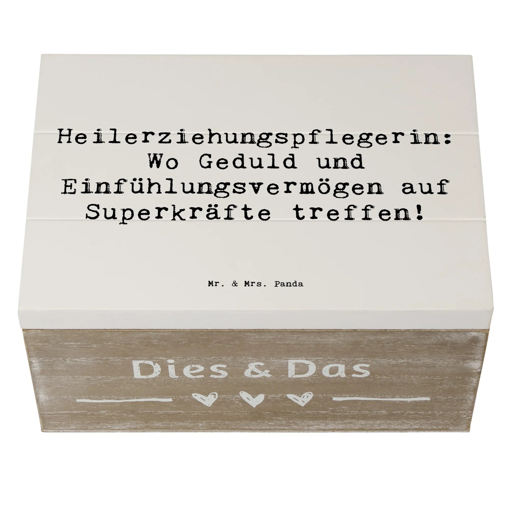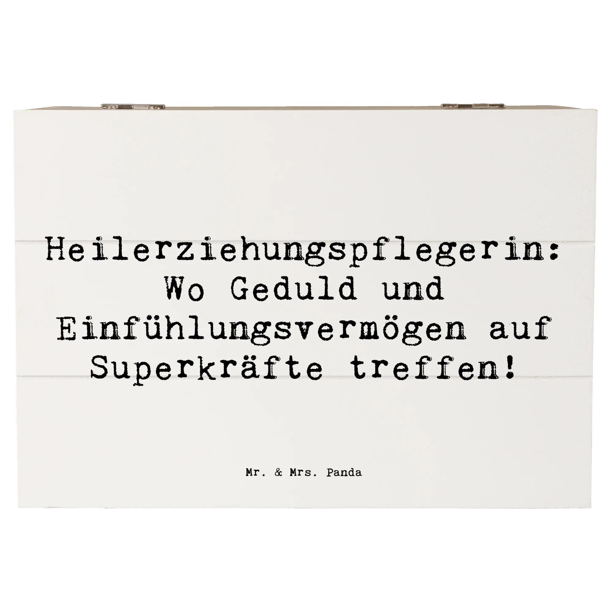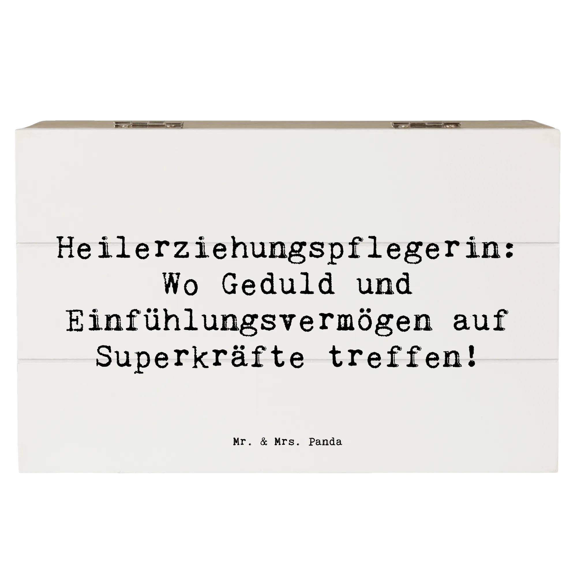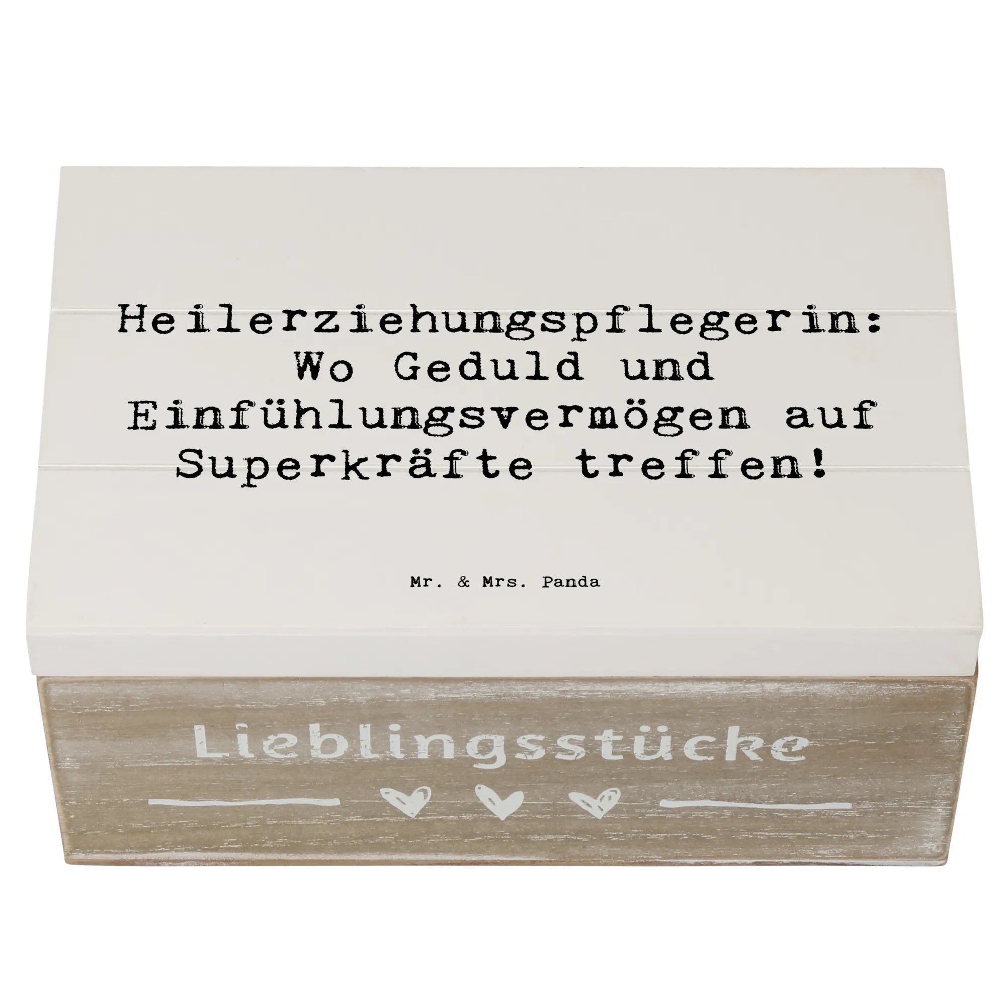 Entdecke die bezaubernde Holzkiste von Mr. & Mrs. Panda, die perfekt für alle Heilerziehungspflegerinnen ist! Diese wunderschöne Erinnerungskiste mit dem Spruch "Heilerziehungspflegerin: Wo Geduld und Einfühlungsvermögen auf Superkräfte treffen!" ist nicht nur ein Blickfang, sondern auch ein praktischer Aufbewahrungsort für all deine wertvollen Schätze. Egal ob für Fotos, kleine Erinnerungsstücke aus der Kindheit oder besondere Anlässe wie Kommunion und Konfirmation – diese Kiste bewahrt deine schönsten Erinnerungen stilvoll auf!