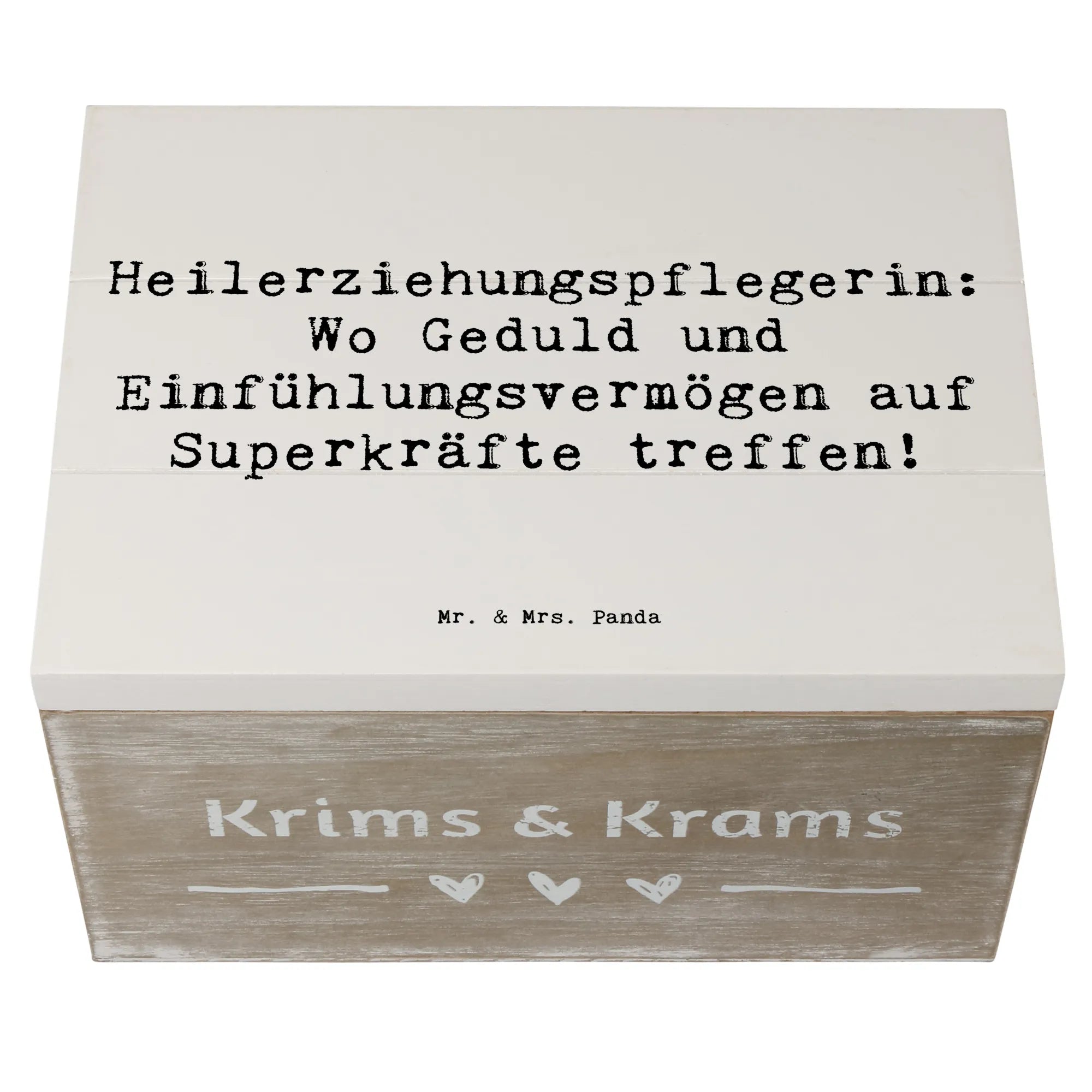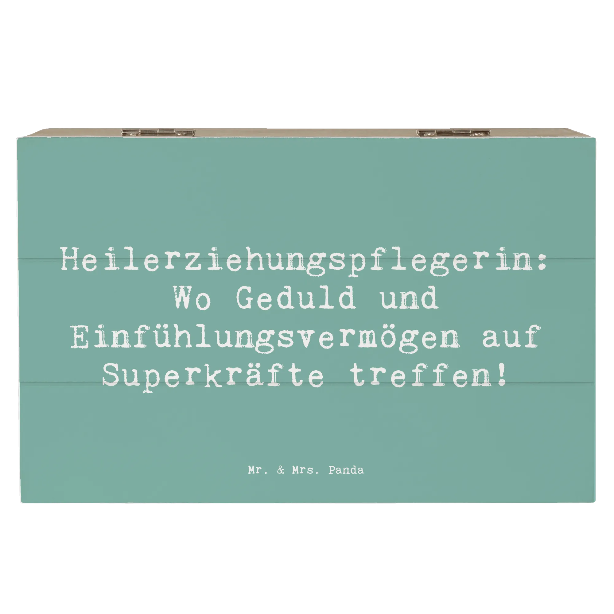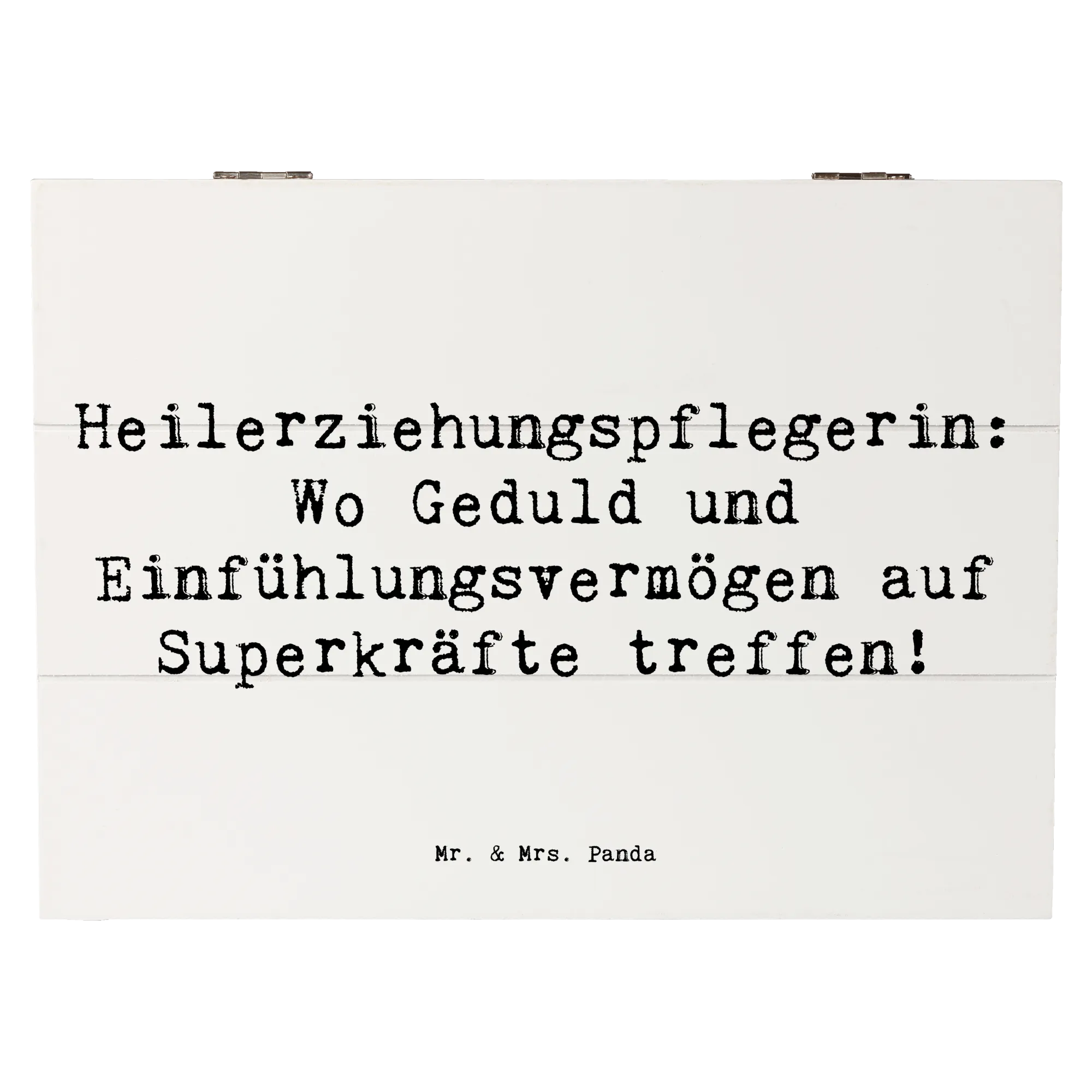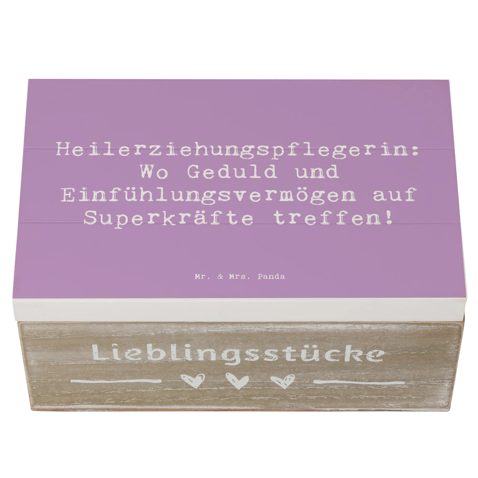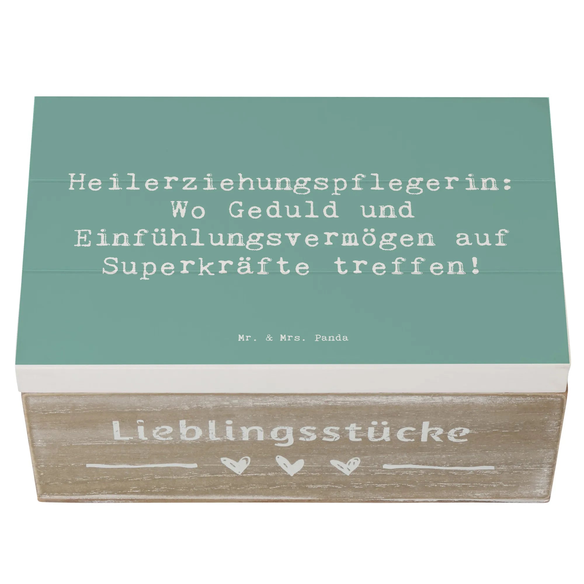 Entdecke die bezaubernde Holzkiste von Mr. & Mrs. Panda, die perfekt für alle Heilerziehungspflegerinnen ist! Diese wunderschöne Erinnerungskiste mit dem Spruch "Heilerziehungspflegerin: Wo Geduld und Einfühlungsvermögen auf Superkräfte treffen!" ist nicht nur ein Blickfang, sondern auch ein praktischer Aufbewahrungsort für all deine wertvollen Schätze. Egal ob für Fotos, kleine Erinnerungsstücke aus der Kindheit oder besondere Anlässe wie Kommunion und Konfirmation – diese Kiste bewahrt deine schönsten Erinnerungen stilvoll auf!