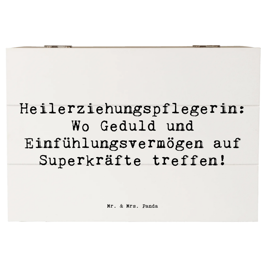 Die besondere Holzkiste mit dem Motiv "Heilerziehungspflegerin: Wo Geduld und Einfühlungsvermögen auf Superkräfte treffen!" von Mr. & Mrs. Panda ist das perfekte Geschenk für alle, die in der Heilerziehung tätig sind oder sich mit diesem Beruf verbunden fühlen. Diese liebevoll gestaltete Erinnerungskiste ist nicht nur ein praktischer Aufbewahrungsort für eure schönsten Schätze wie Fotos, Erinnerungen an besondere Anlässe wie Kommunion oder Konfirmation, sondern auch eine wunderbare Dekokiste für euer Zuhause.