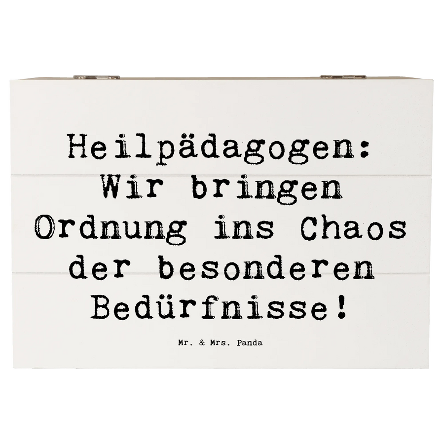 Die wunderschöne Holzkiste von Mr. & Mrs. Panda ist das perfekte Geschenk für alle Heilpädagogen und Heilpädagoginnen! Mit dem fröhlichen Spruch "Heilpädagogen: Wir bringen Ordnung ins Chaos der besonderen Bedürfnisse!" wird diese Kiste nicht nur zum praktischen Aufbewahrungsort, sondern auch zu einem liebevollen Erinnerungsstück.