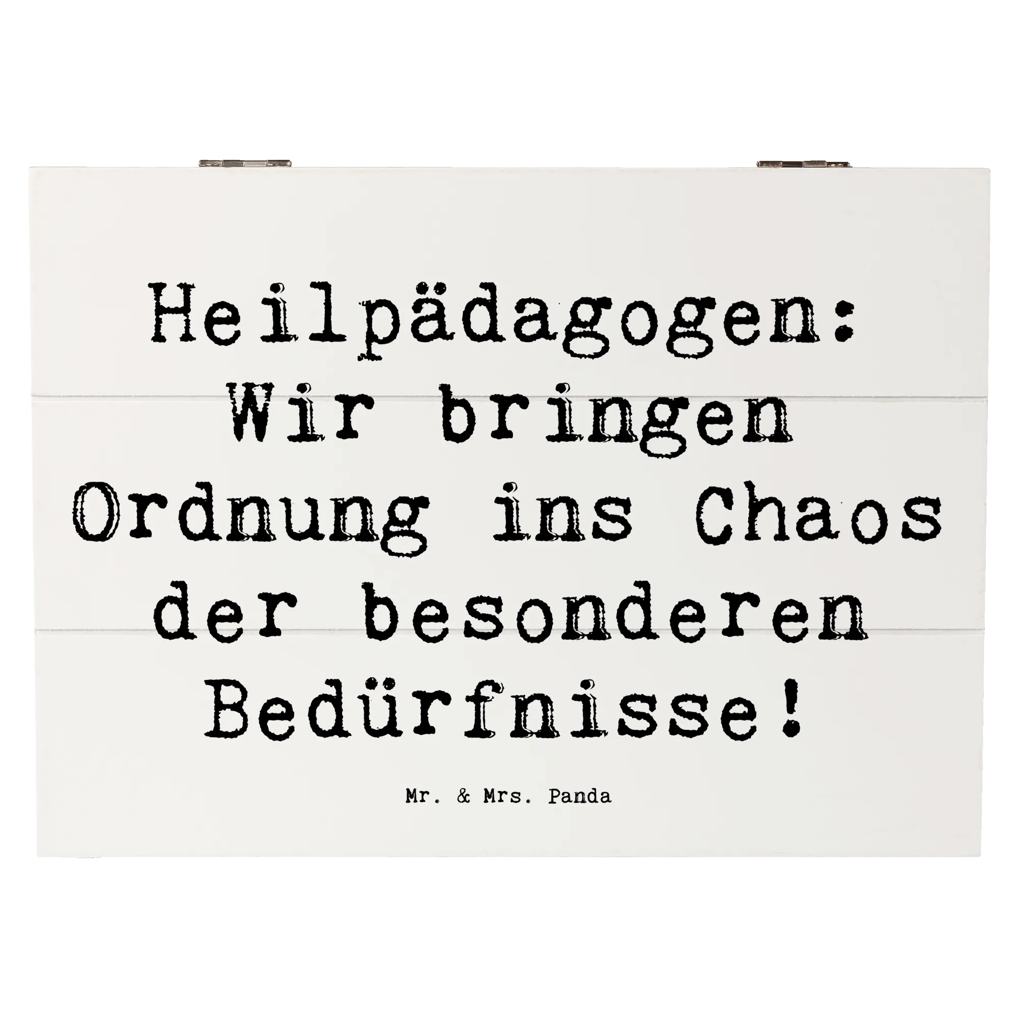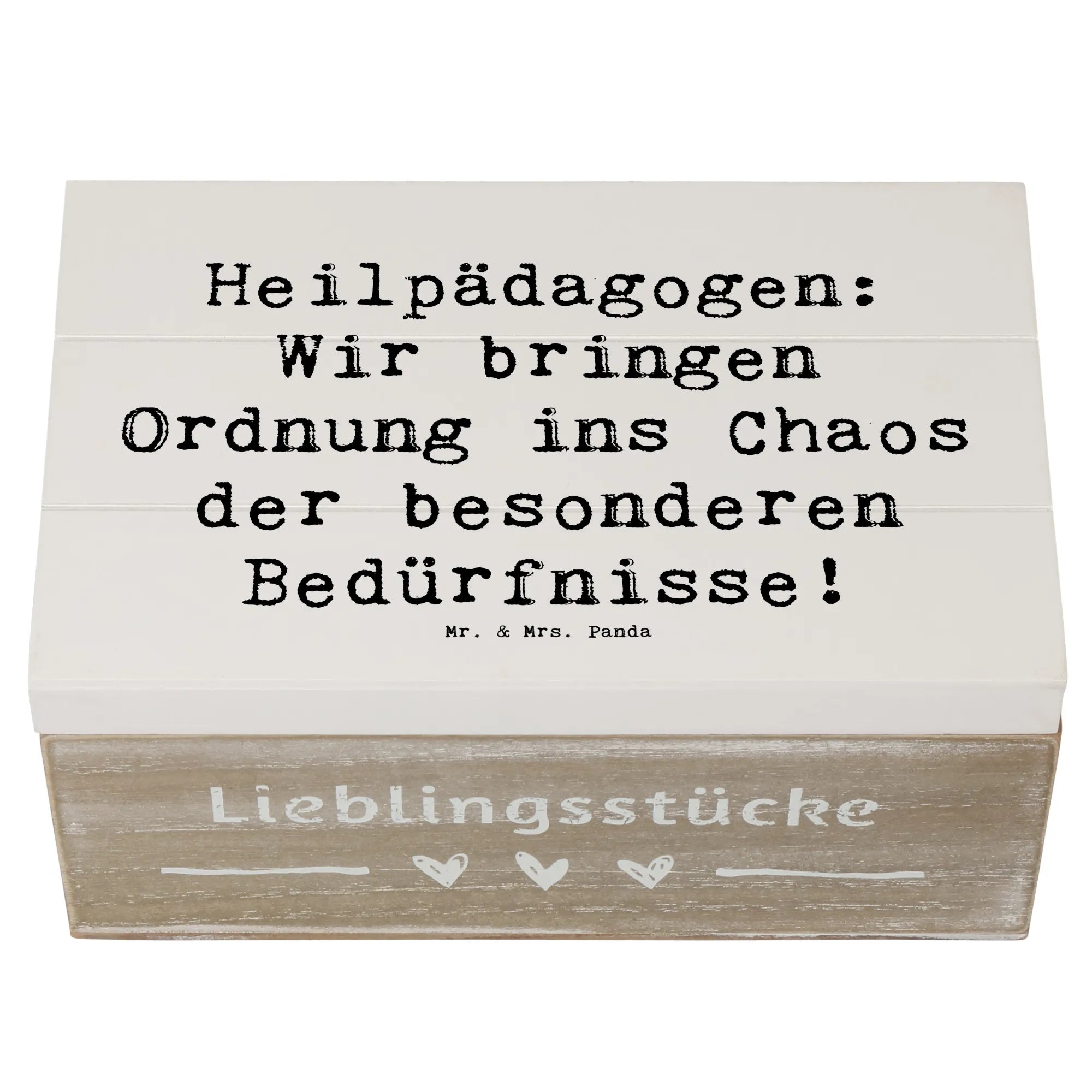Die wunderschöne Holzkiste von Mr. & Mrs. Panda ist das ideale Geschenk für Heilpädagogen und alle, die in diesem wichtigen Berufsfeld tätig sind! Sie bietet nicht nur einen stilvollen Aufbewahrungsort für Erinnerungen, Dokumente oder kleine Schätze, sondern ist auch ein echter Blickfang in jedem Raum. Bedruckt mit dem liebevollen Spruch: „Heilpädagogen: Wir bringen Ordnung ins Chaos der besonderen Bedürfnisse!“, strahlt diese Schatzkiste eine herzliche und inspirierende Botschaft aus, die jeden Heilpädagogen in seiner Berufung bestärkt.