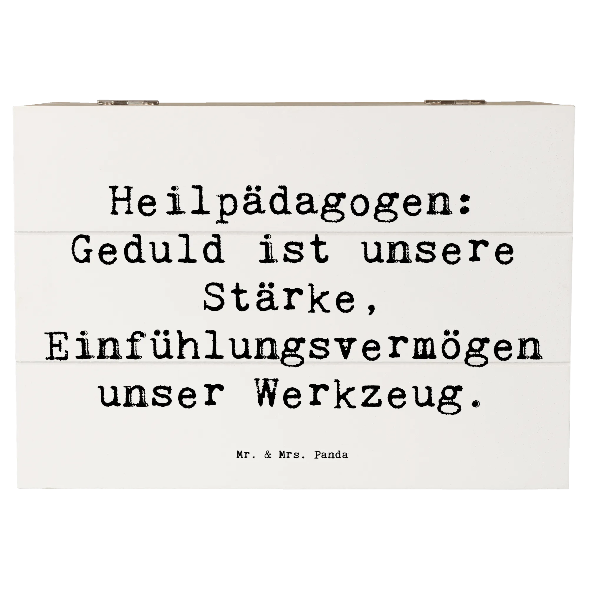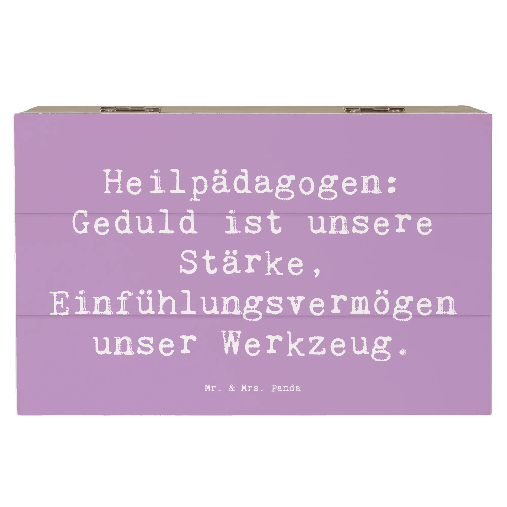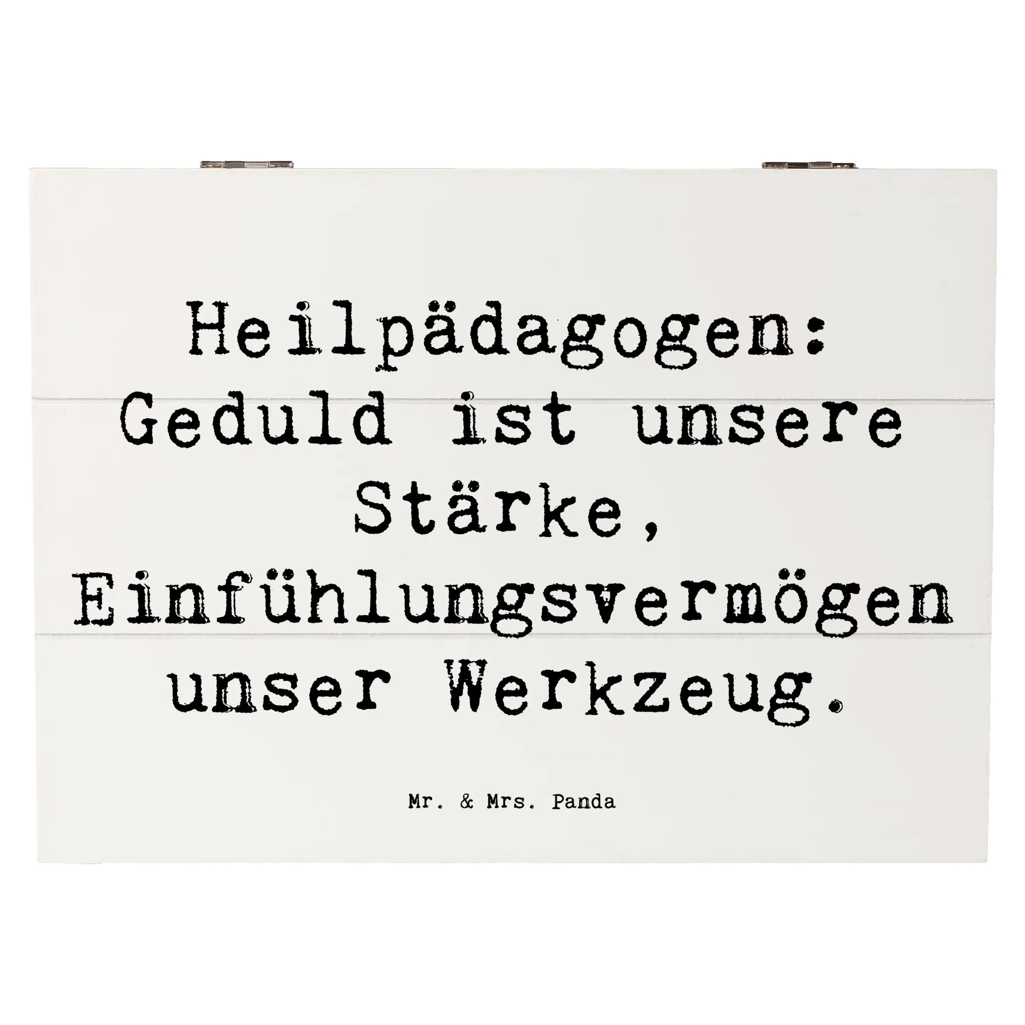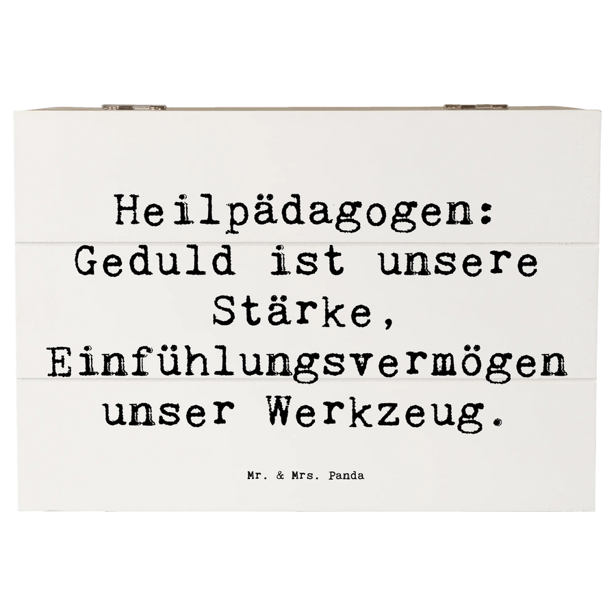 Die Holzkiste "Heilpädagogin" von Mr. & Mrs. Panda ist ein wundervolles Geschenk für all die engagierten Heilpädagogen und Heilpädagoginnen, die mit Geduld und Einfühlungsvermögen täglich Großes leisten. Diese liebevoll gestaltete Erinnerungsbox wurde mit dem Slogan "Heilpädagogen: Geduld ist unsere Stärke, Einfühlungsvermögen unser Werkzeug" bedruckt und ist nicht nur ein praktischer Aufbewahrungsort für kleine Schätze, sondern auch eine liebevolle Hommage an den wichtigen Beruf der Heilpädagogik.