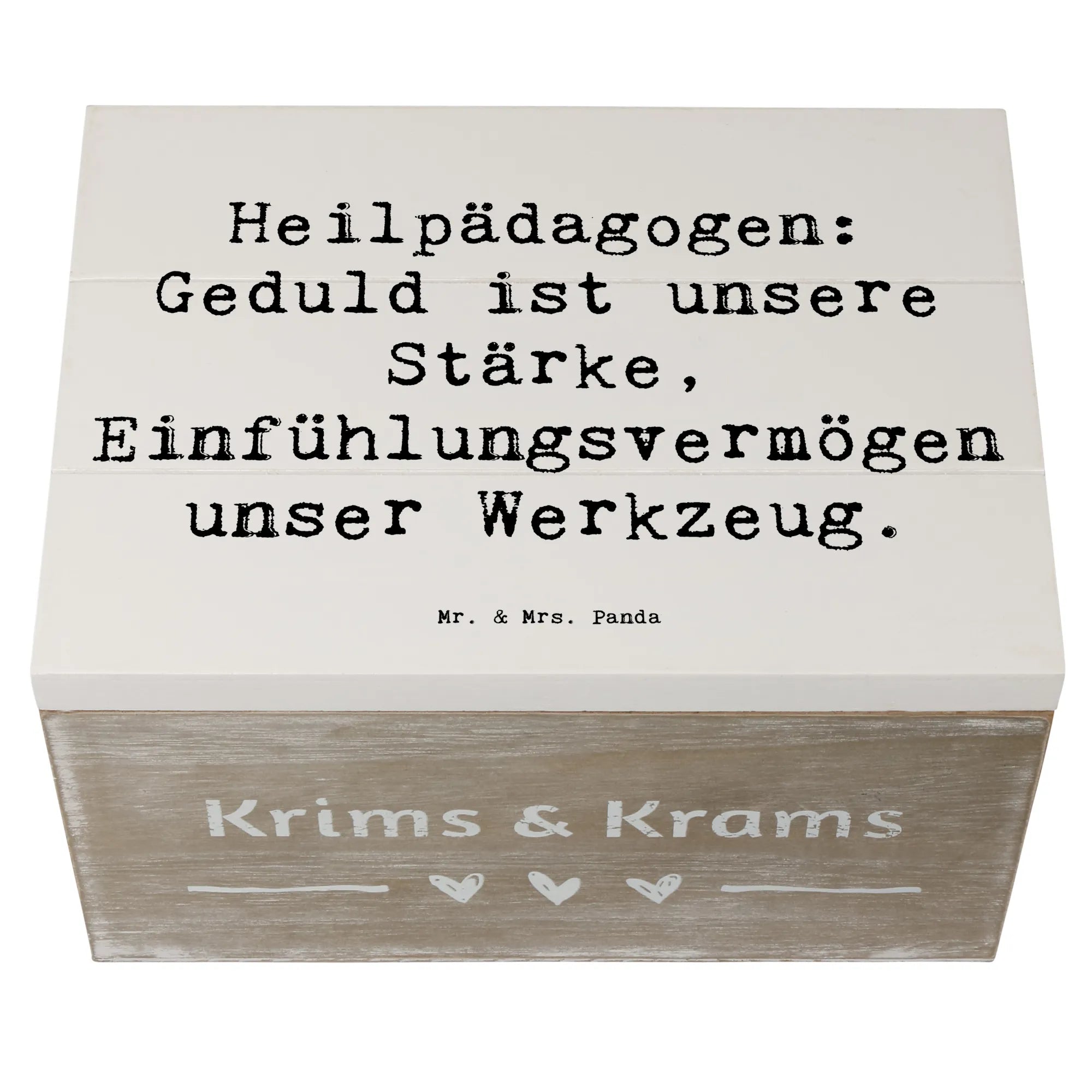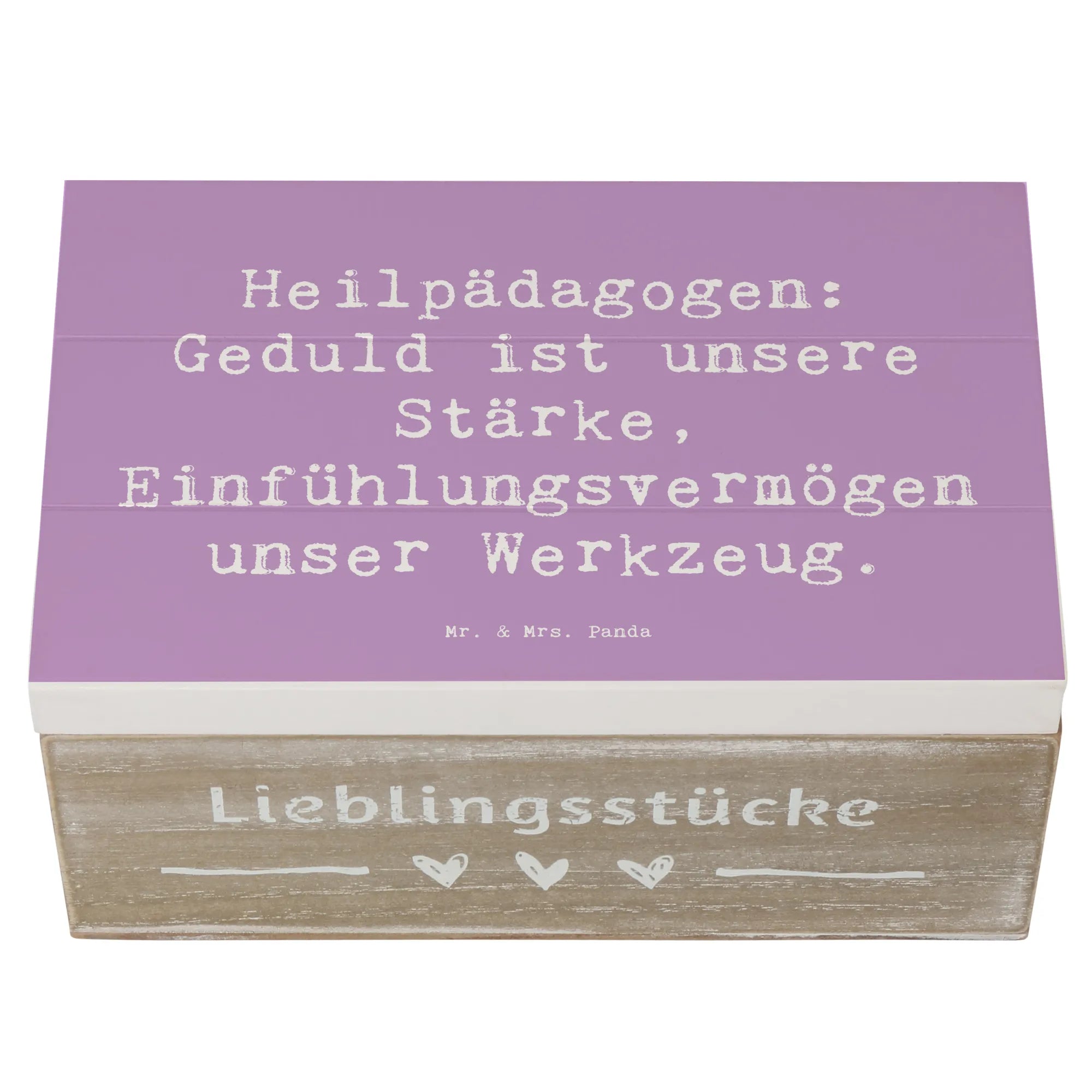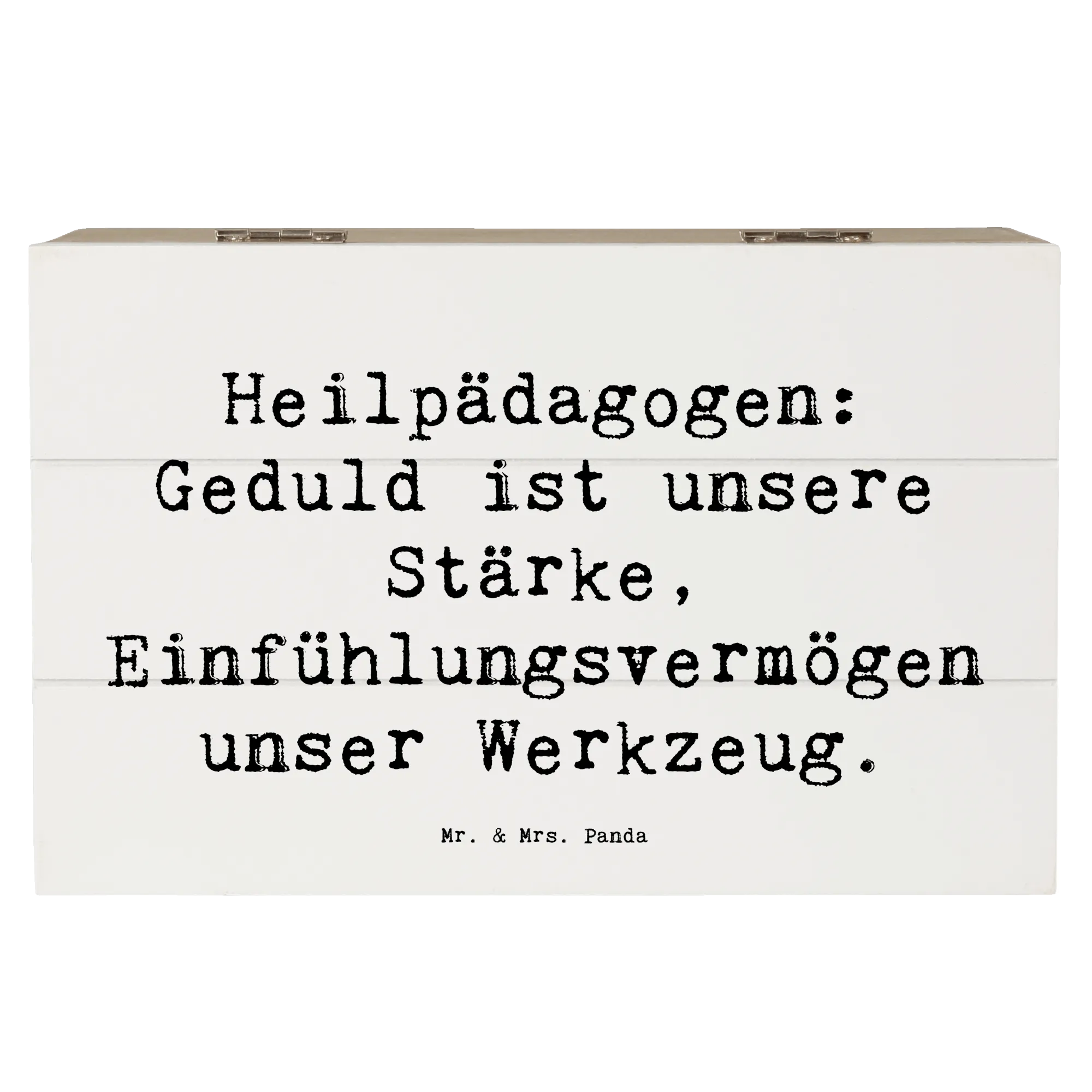Die Kiste aus der Berufe-Kollektion von Mr. & Mrs. Panda inspirierte viele zu einem liebevollen Geschenk, das sowohl praktisch als auch herzergreifend ist. Überrasche jemanden besonderen mit dieser Holzkiste und bringe zum Ausdruck, wie viel Dir ihre Arbeit bedeutet. Egal ob für Freunde, Kollegen oder die eigene Familie - die Holzkiste ist ein einzigartiges, nachhaltiges Geschenk, das lange Freude bereitet und immer wieder auf die wertvolle Arbeit der Heilpädagogen hinweist.