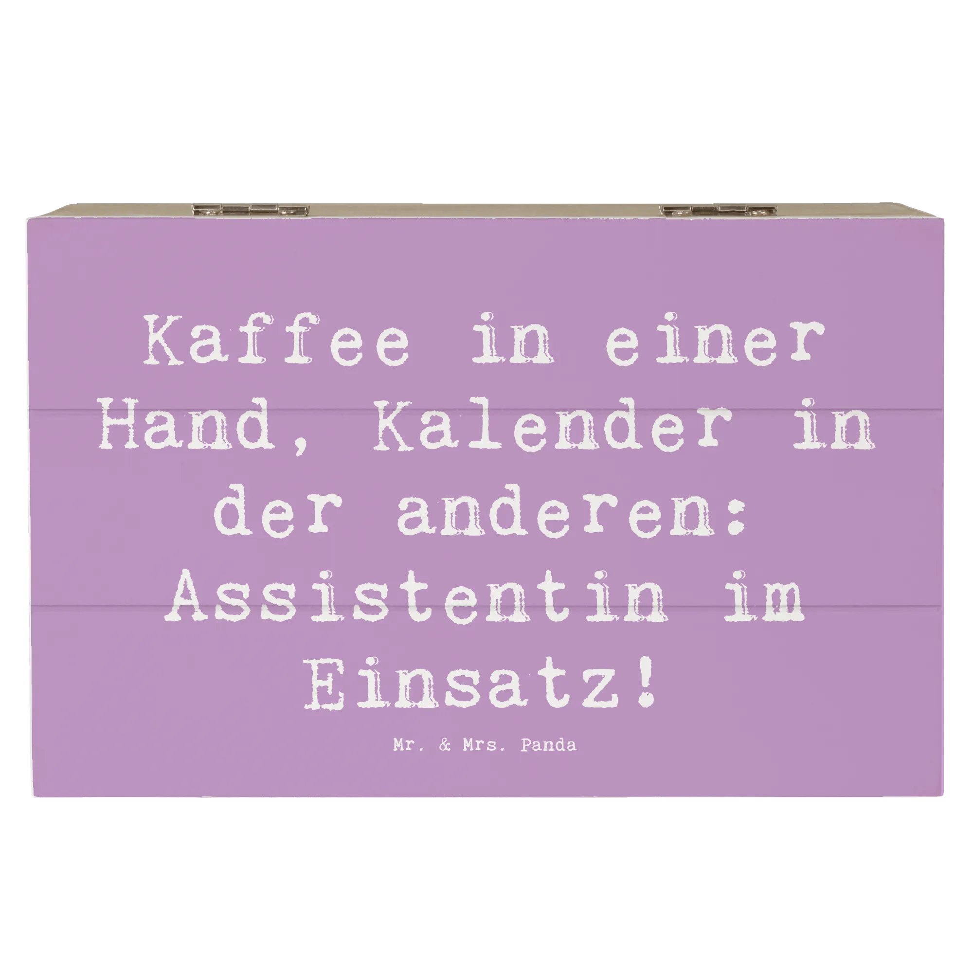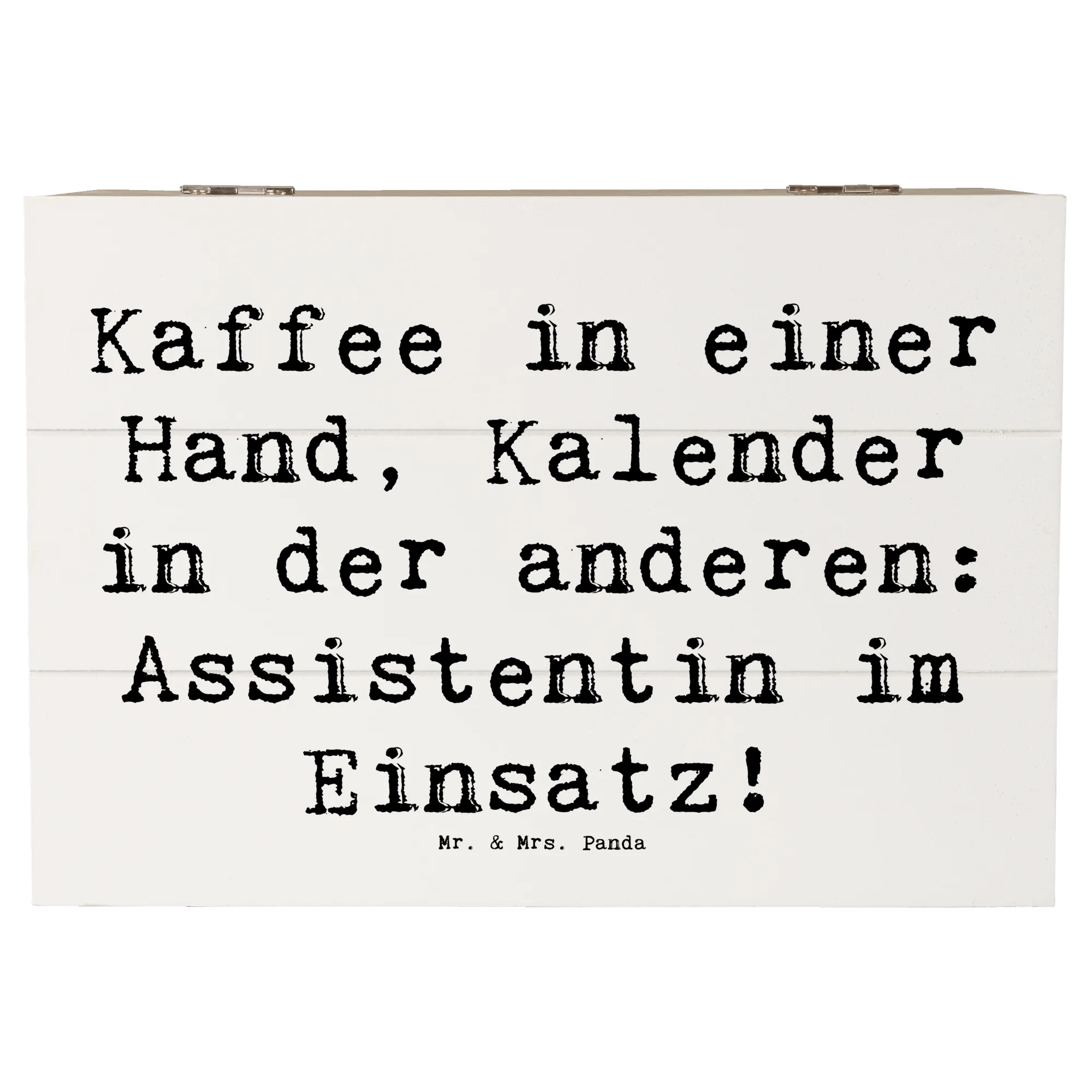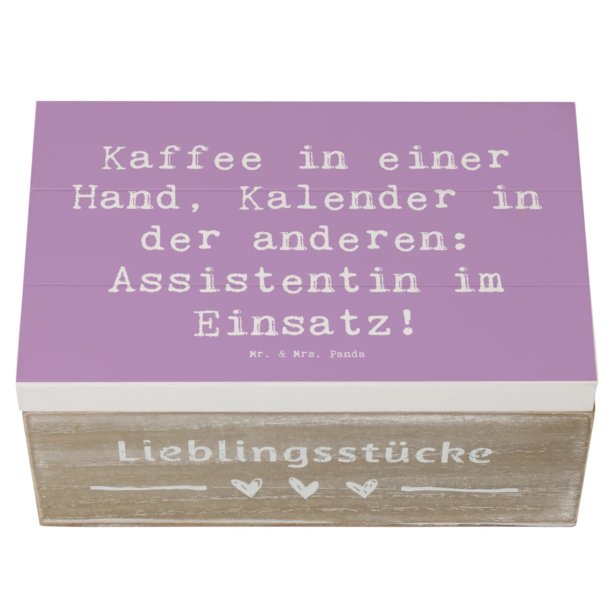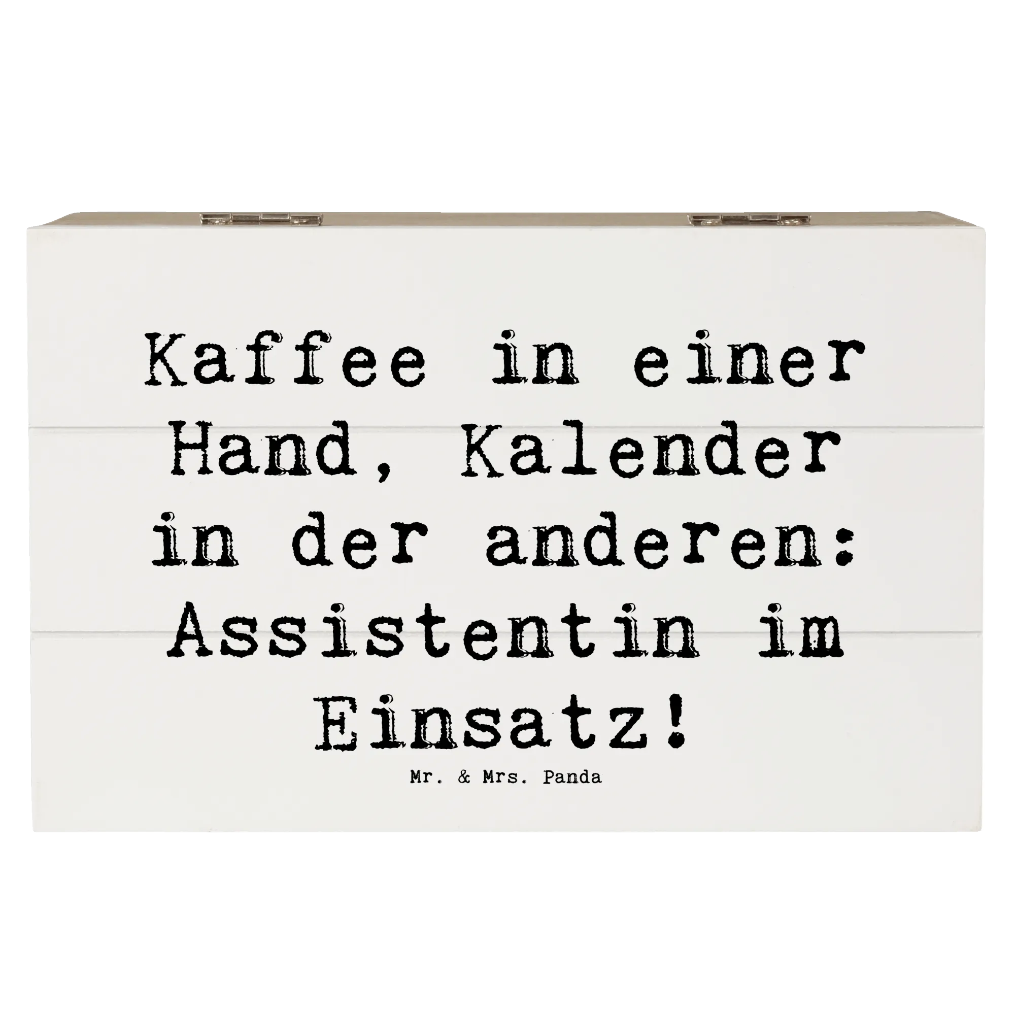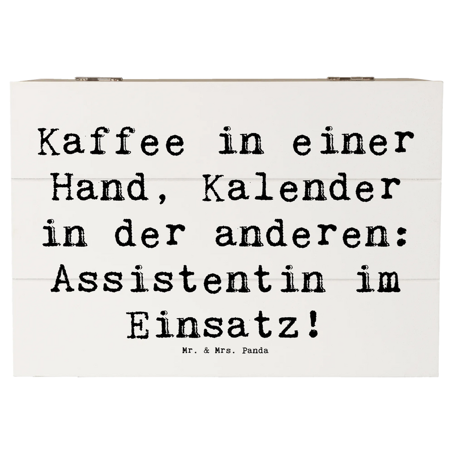 Entdecke die einzigartige Holzkiste "Assistentin" von Mr. & Mrs. Panda! Diese liebevoll gestaltete Kiste ist nicht nur ein Blickfang, sondern auch äußerst praktisch. Mit dem Spruch 'Kaffee in einer Hand, Kalender in der anderen: Assistentin im Einsatz!' sorgt sie dafür, dass jeder deine Unterstützung zu schätzen weiß.