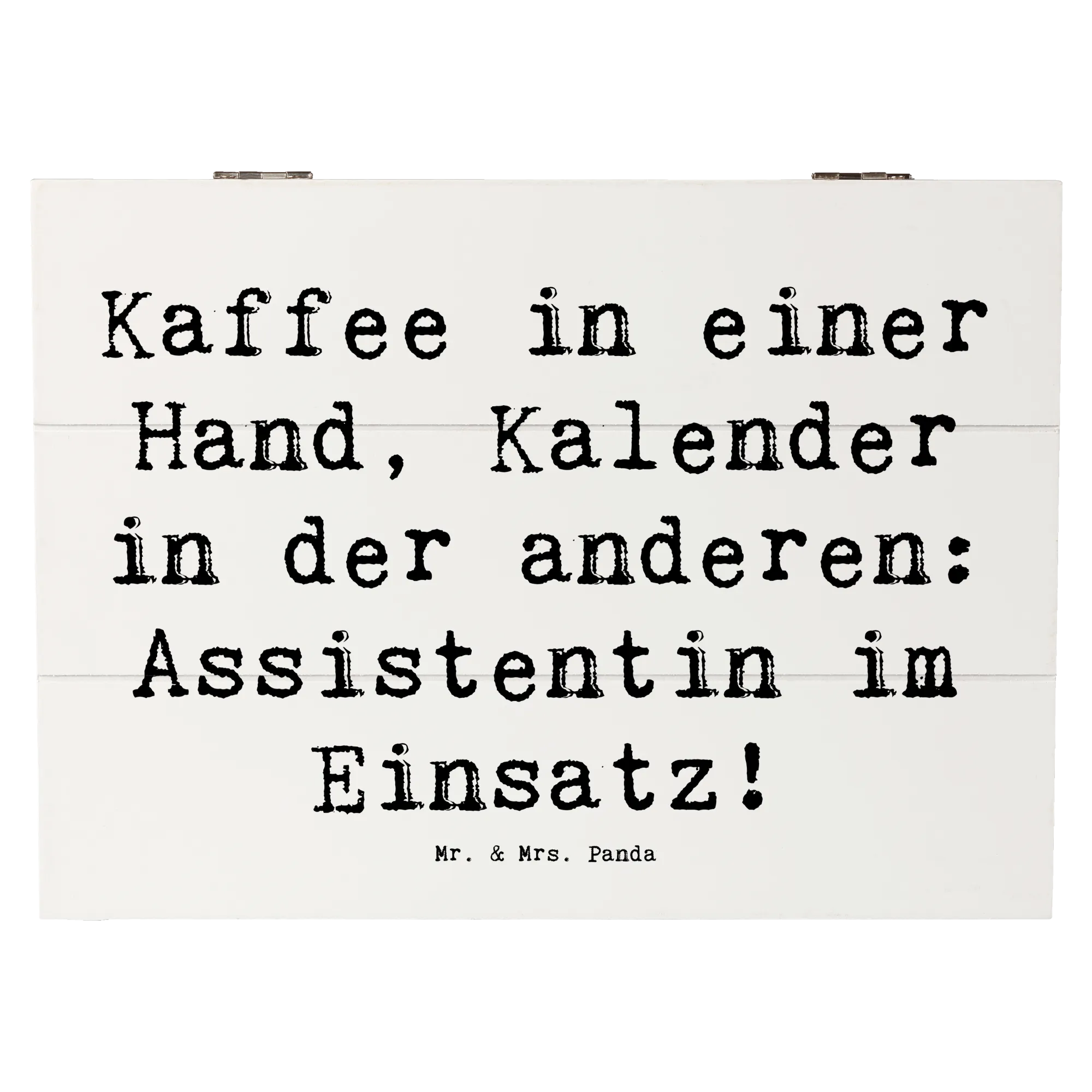 Holzkiste Spruch Kaffee in einer Hand, Kalender in der anderen: Assistentin im Einsatz! - 22 x 15 cm - Weiß
