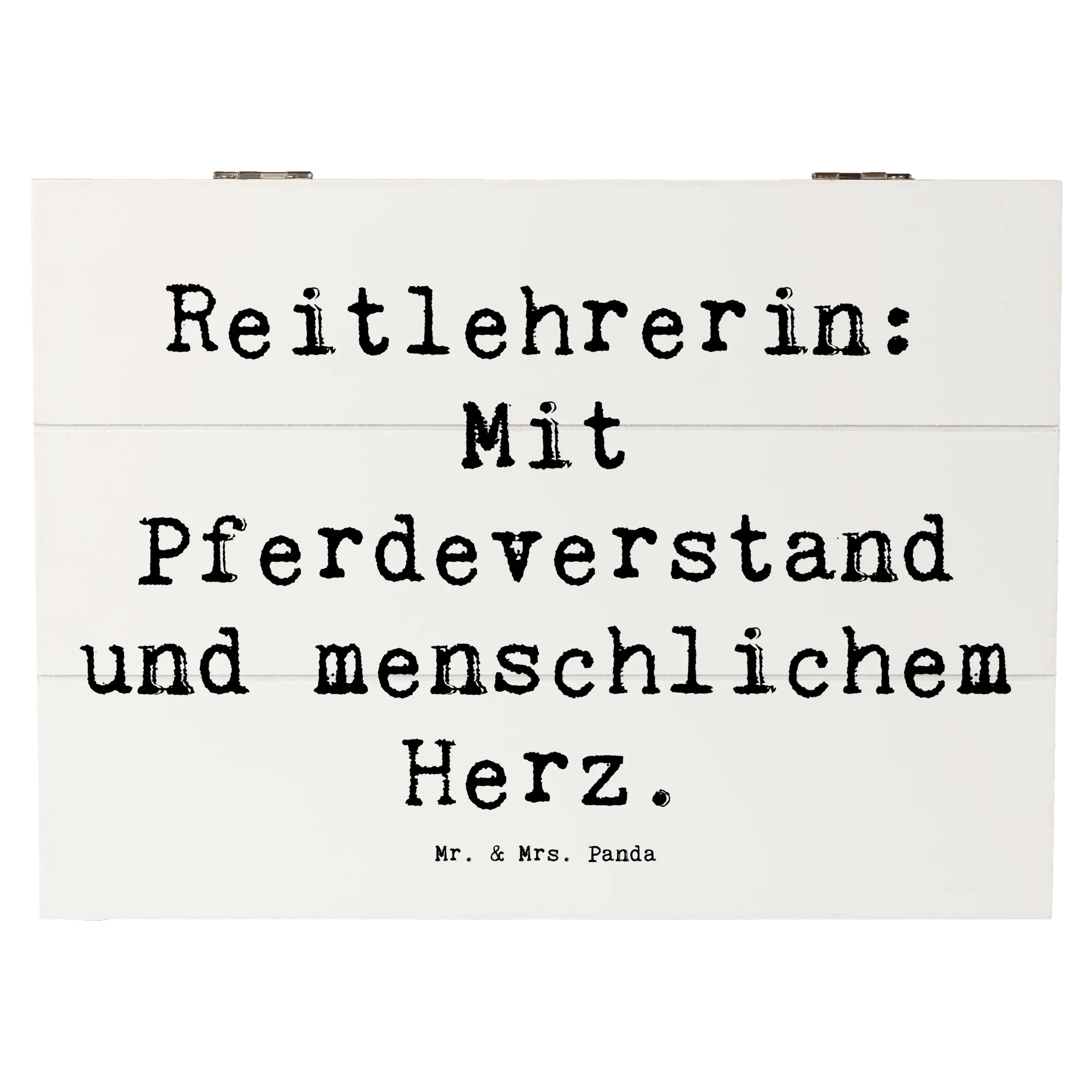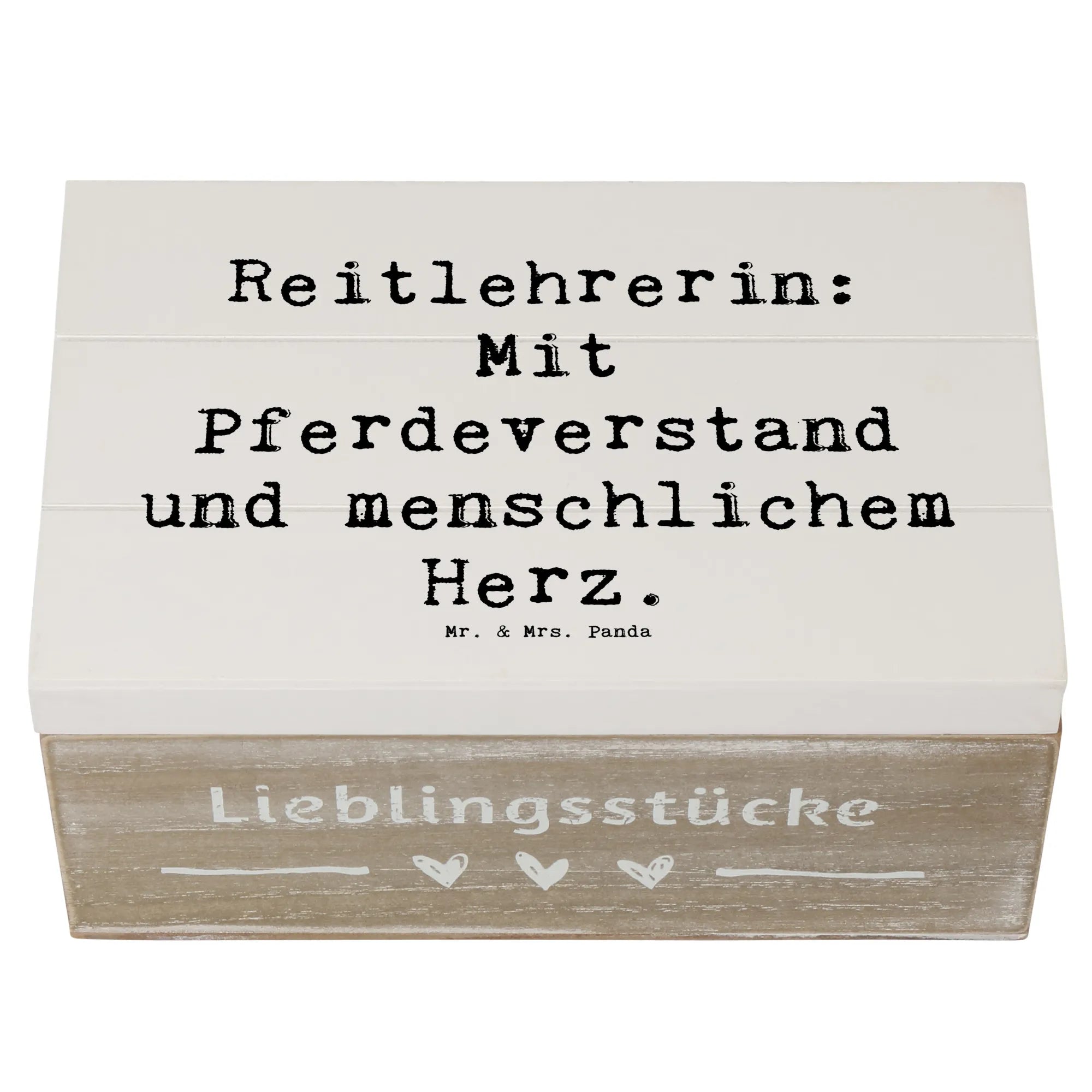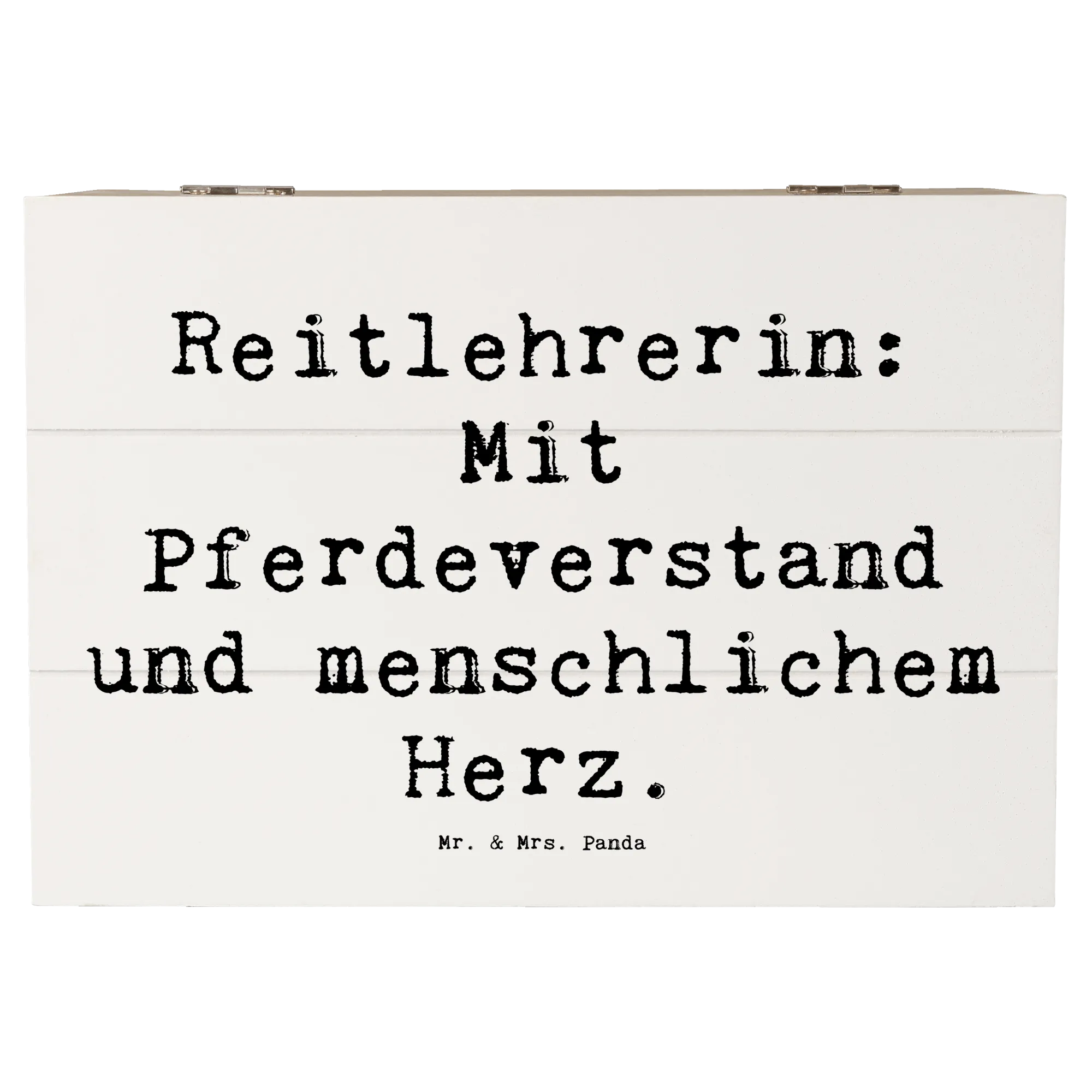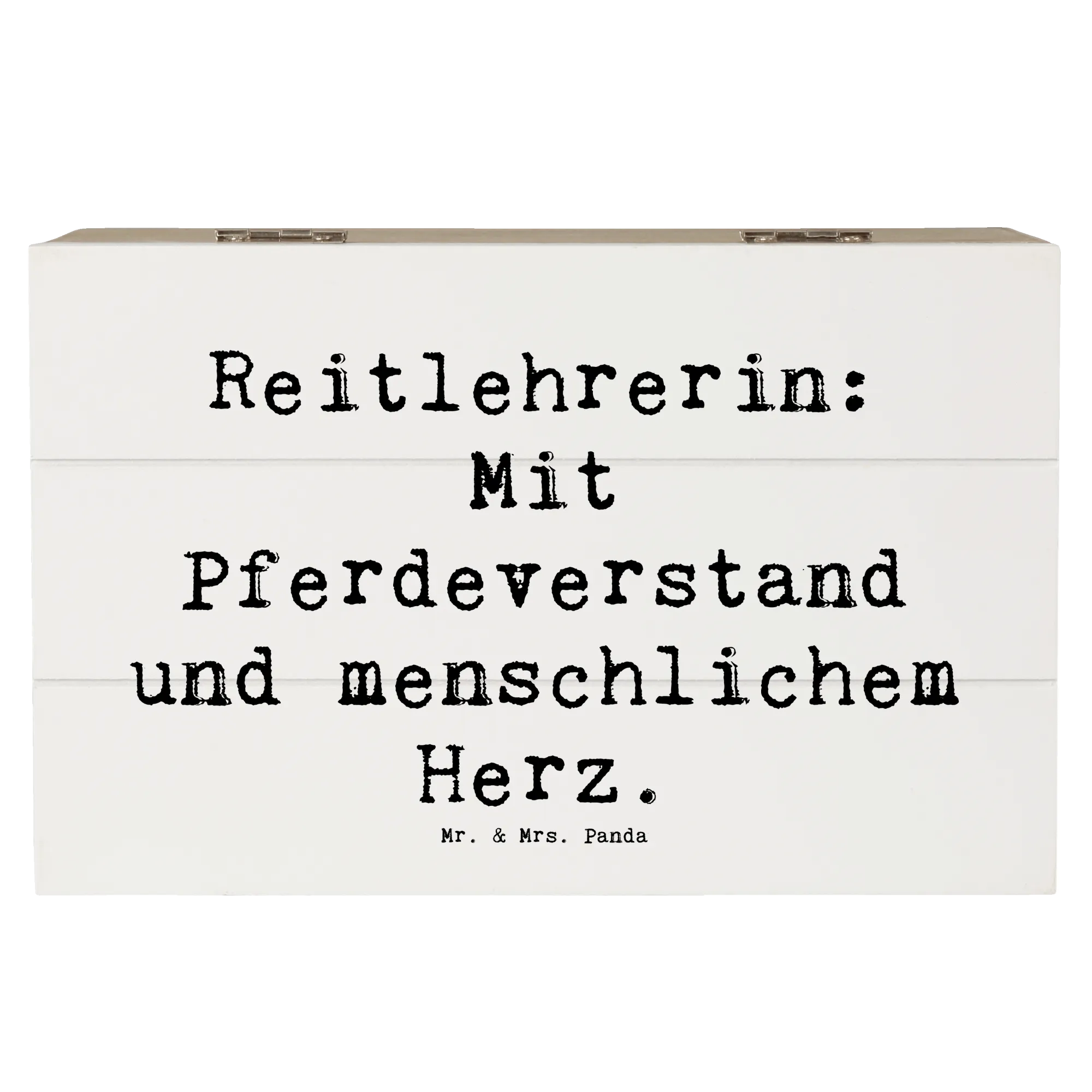 Eine tolle Geschenkidee, die sowohl nützlich als auch von Herzen kommt! Zögere nicht, gib der Reitlehrerin in Deinem Leben die Anerkennung, die sie verdient, mit dieser liebevoll gestalteten Holzkiste von Mr. & Mrs. Panda.