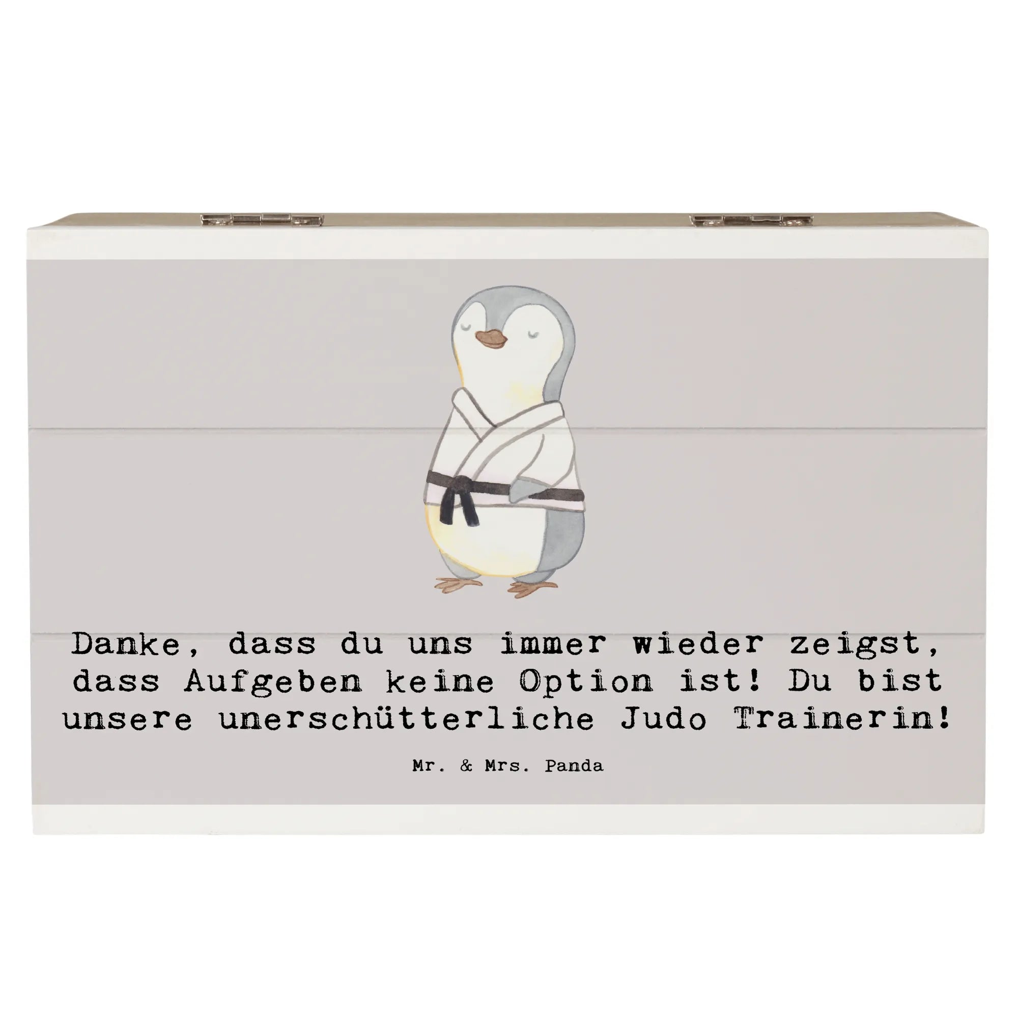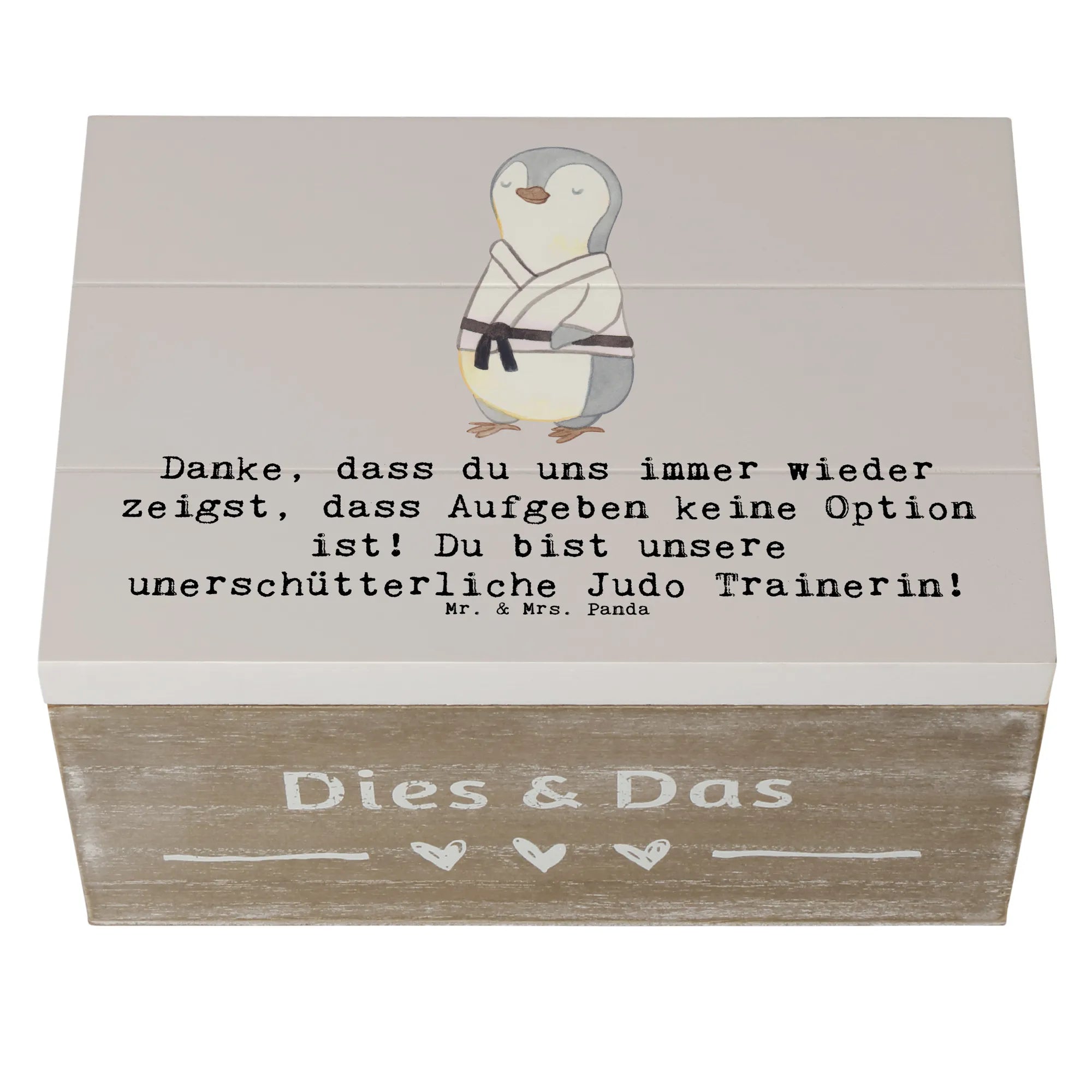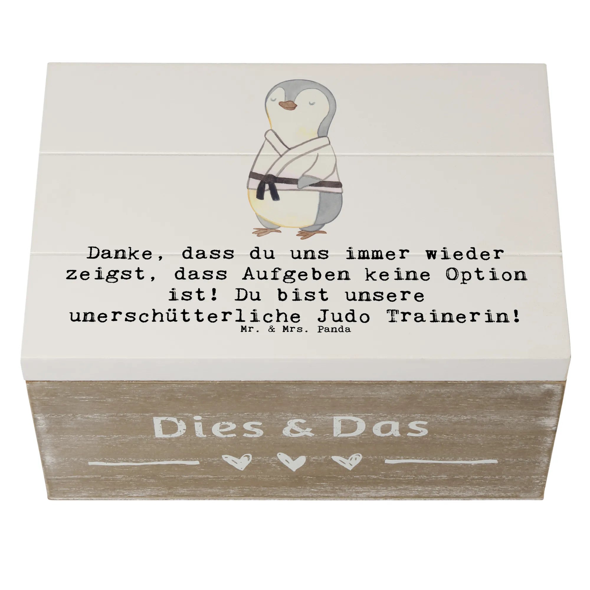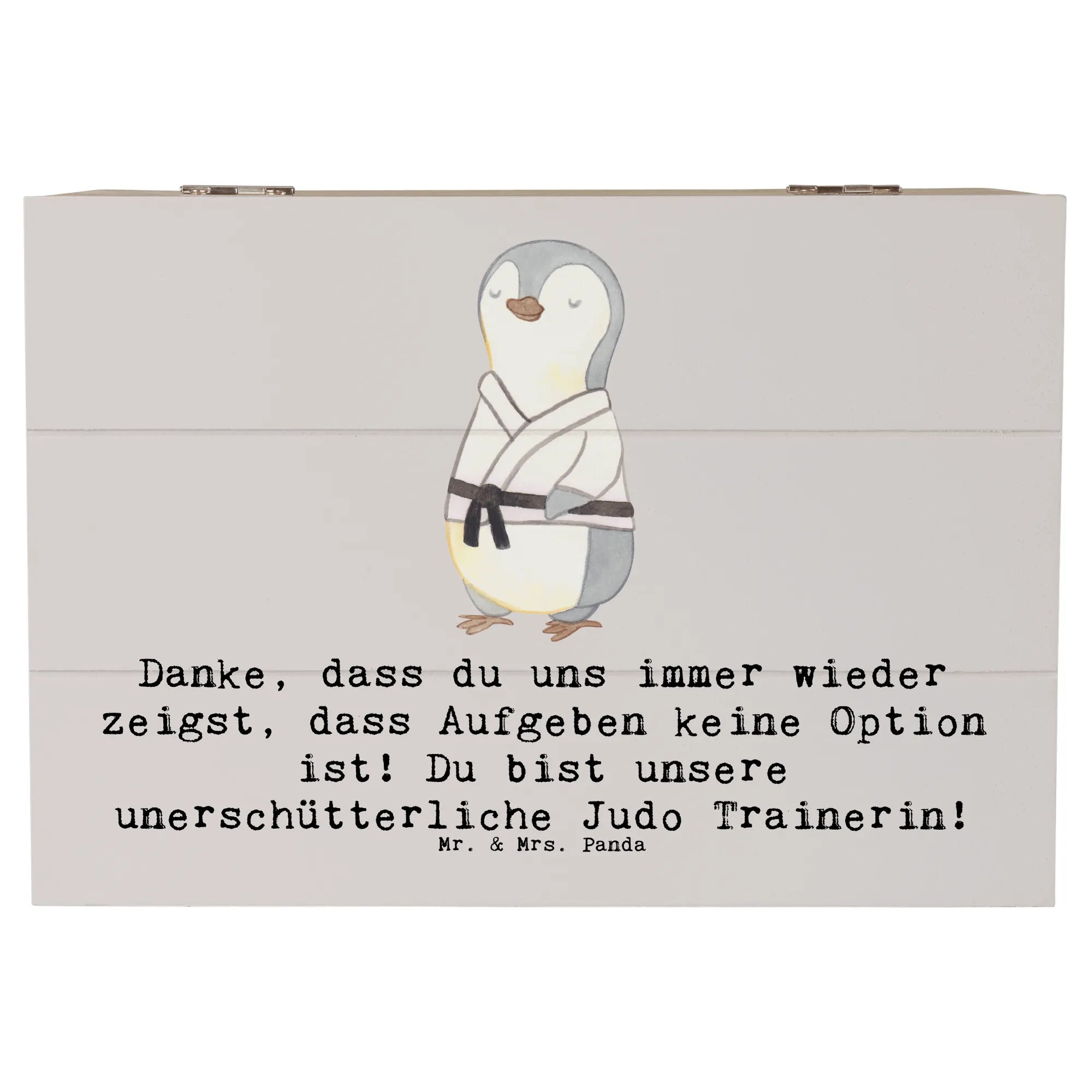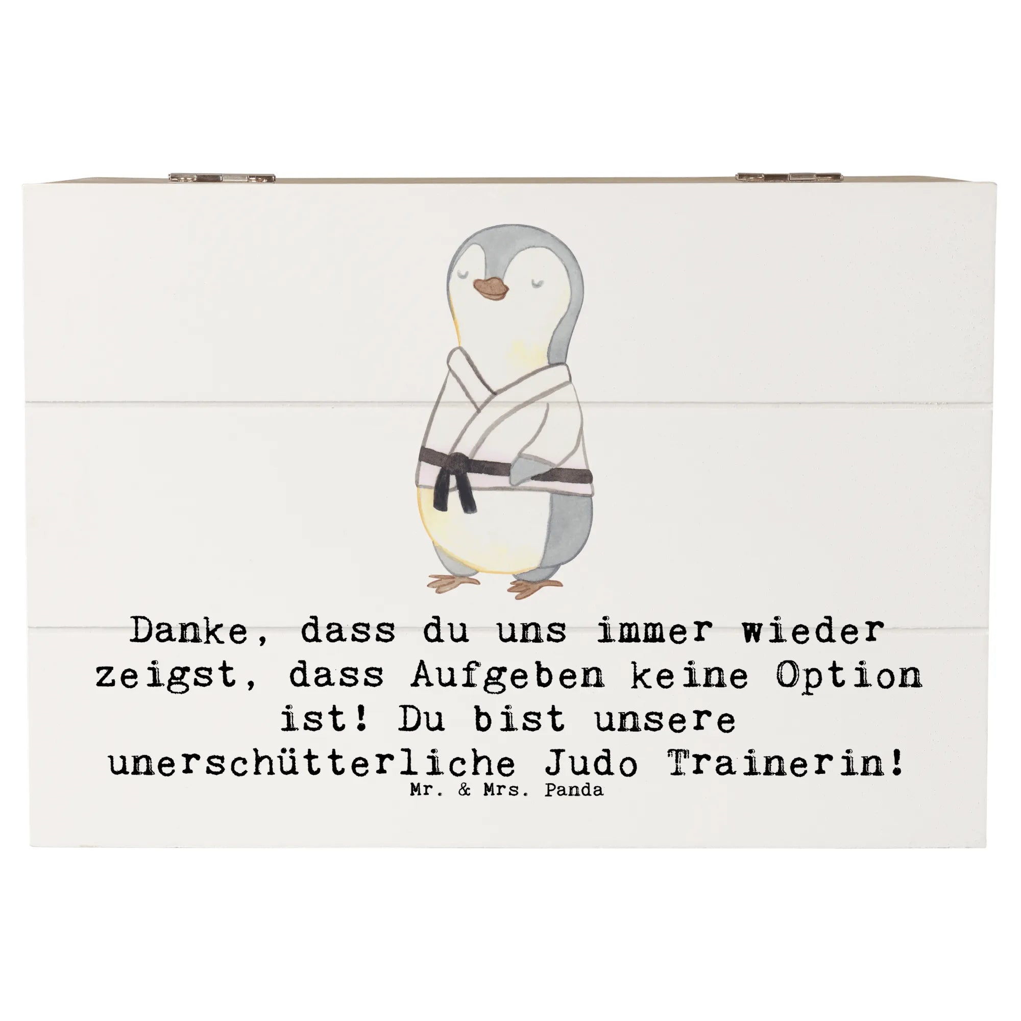 Ein Geschenk, das von Herzen kommt: Die Holzkiste „Judo Trainerin“ von Mr. & Mrs. Panda ist die perfekte Kombination aus Herzlichkeit, Funktionalität und Stil. Bedruckt mit dem liebevollen Spruch „Danke, dass du uns immer wieder zeigst, dass Aufgeben keine Option ist! Du bist unsere unerschütterliche Judo Trainerin!“ bringt diese Aufbewahrungsbox Holz genau das zum Ausdruck, was viele Trainerinnen am meisten schätzen: echte Anerkennung.