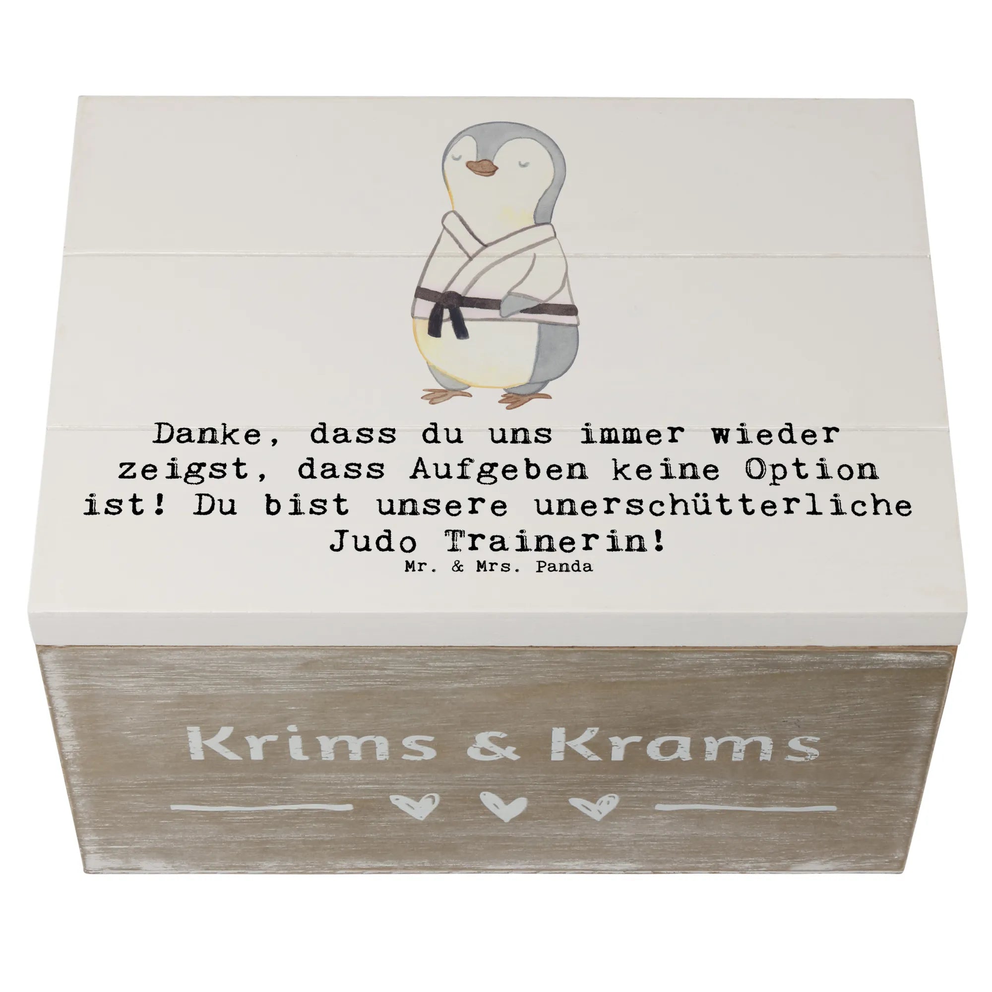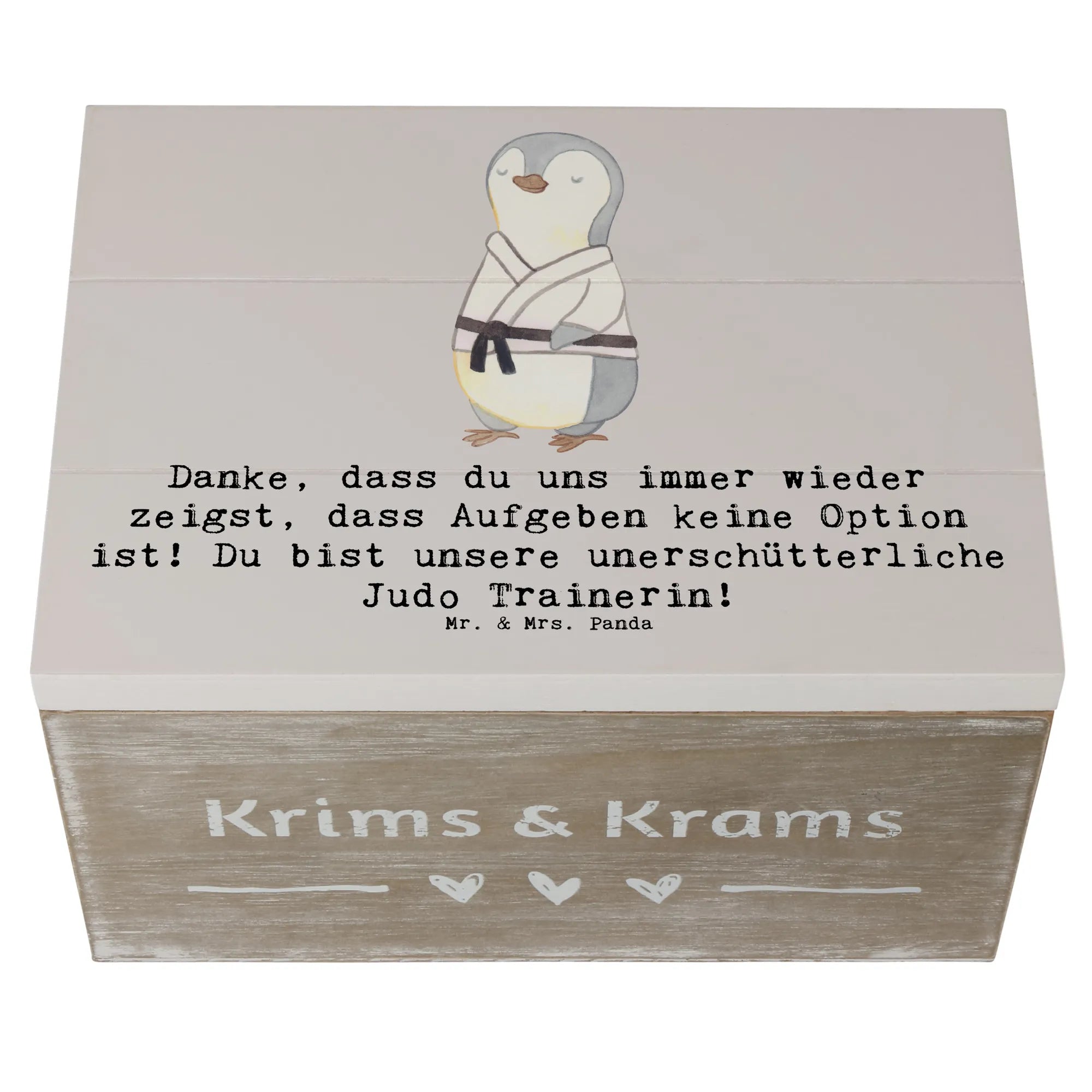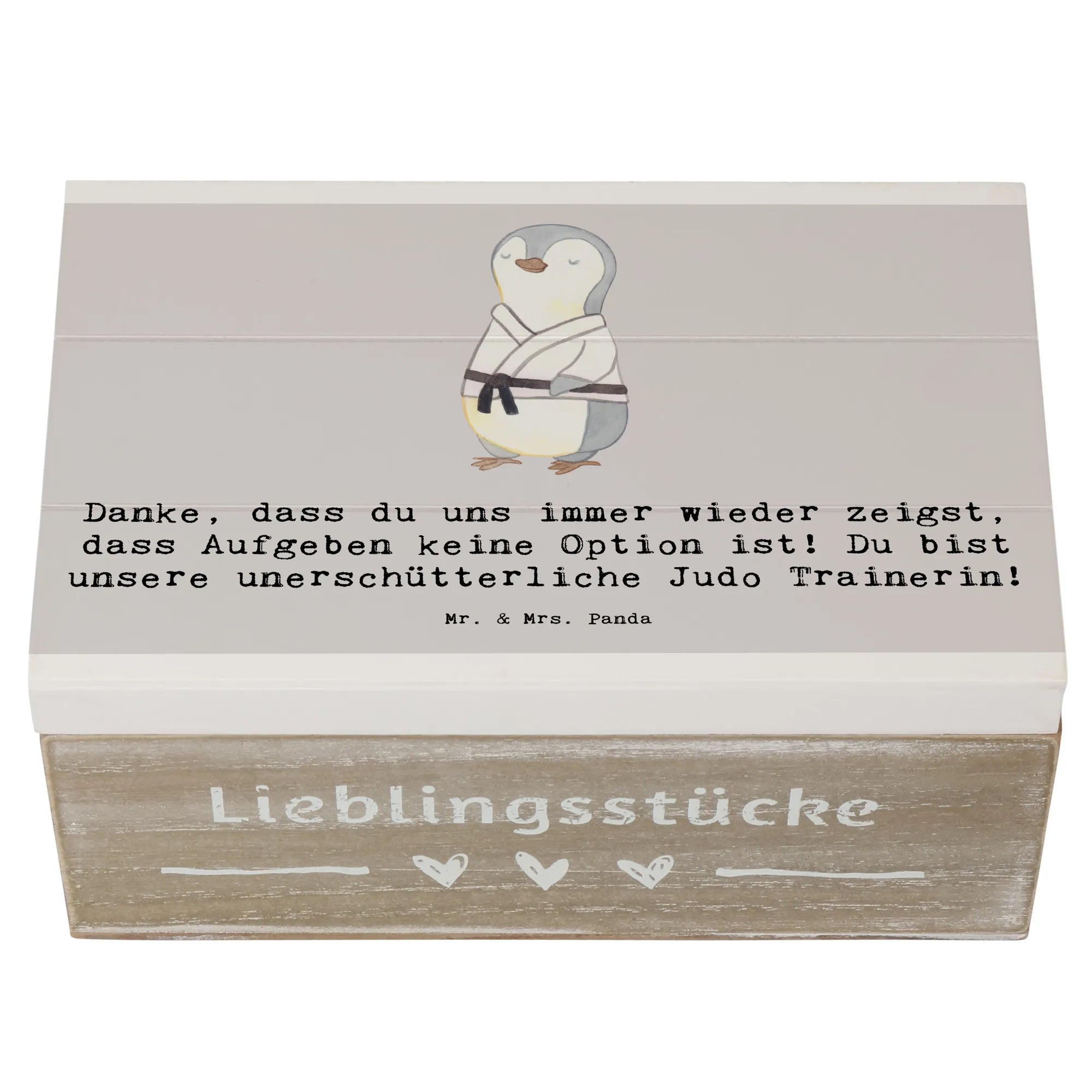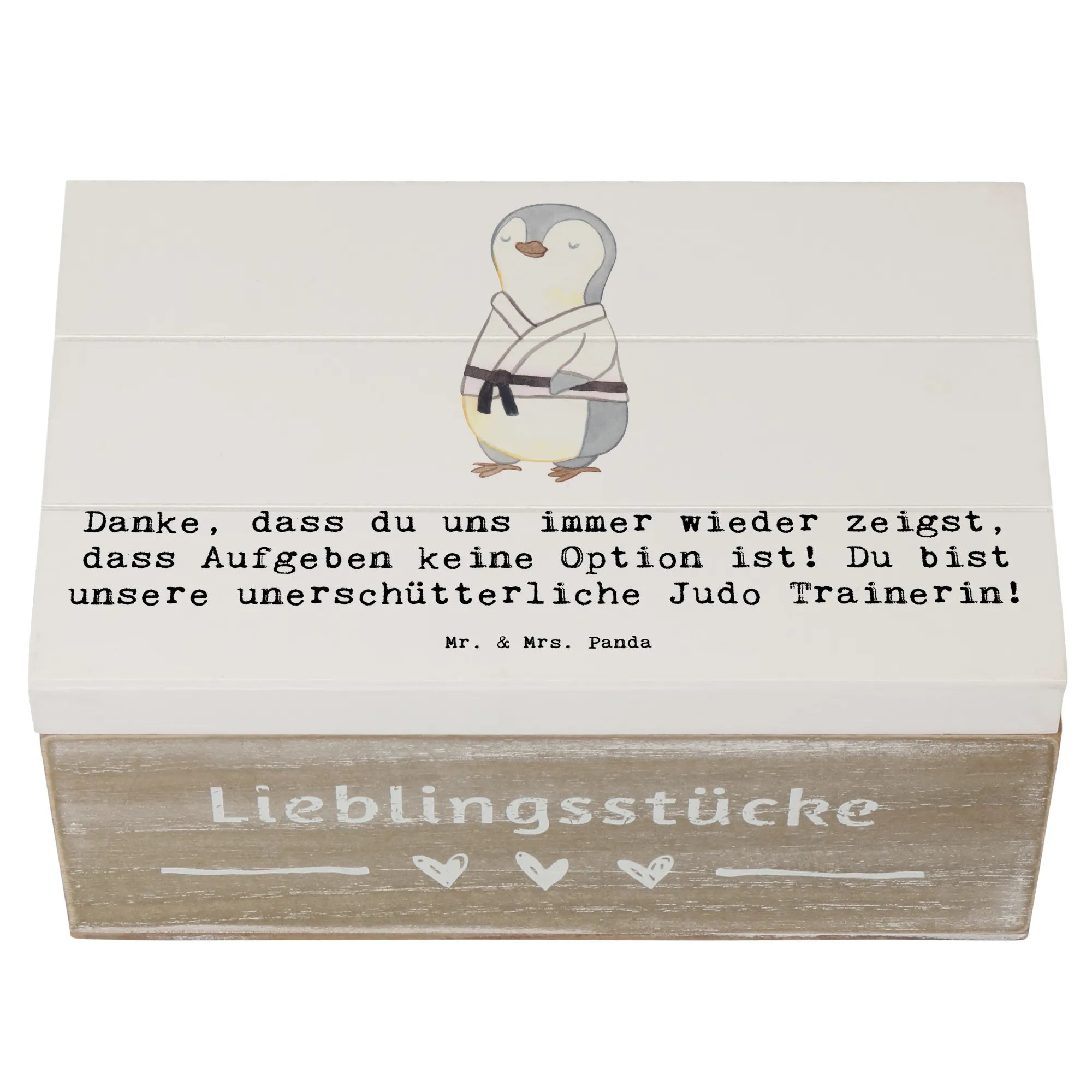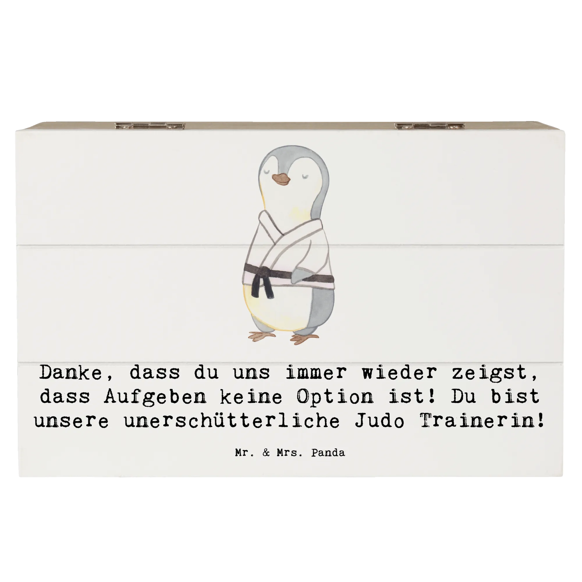 Ein Geschenk, das von Herzen kommt: Die Holzkiste „Judo Trainerin“ von Mr. & Mrs. Panda ist die perfekte Kombination aus Herzlichkeit, Funktionalität und Stil. Bedruckt mit dem liebevollen Spruch „Danke, dass du uns immer wieder zeigst, dass Aufgeben keine Option ist! Du bist unsere unerschütterliche Judo Trainerin!“ bringt diese Aufbewahrungsbox Holz genau das zum Ausdruck, was viele Trainerinnen am meisten schätzen: echte Anerkennung.