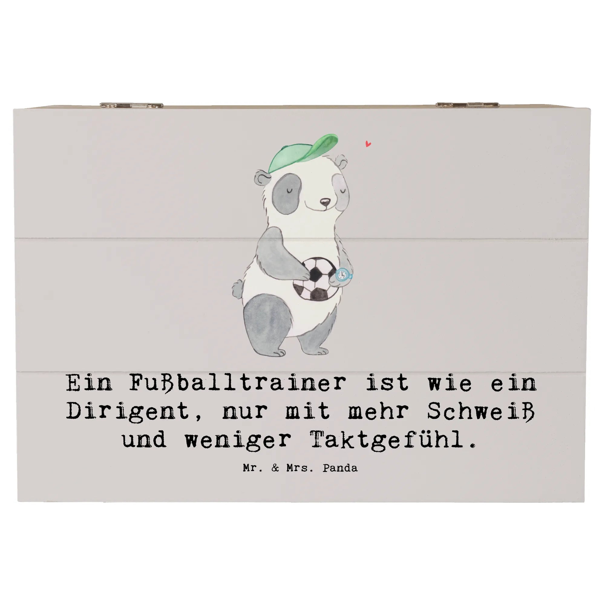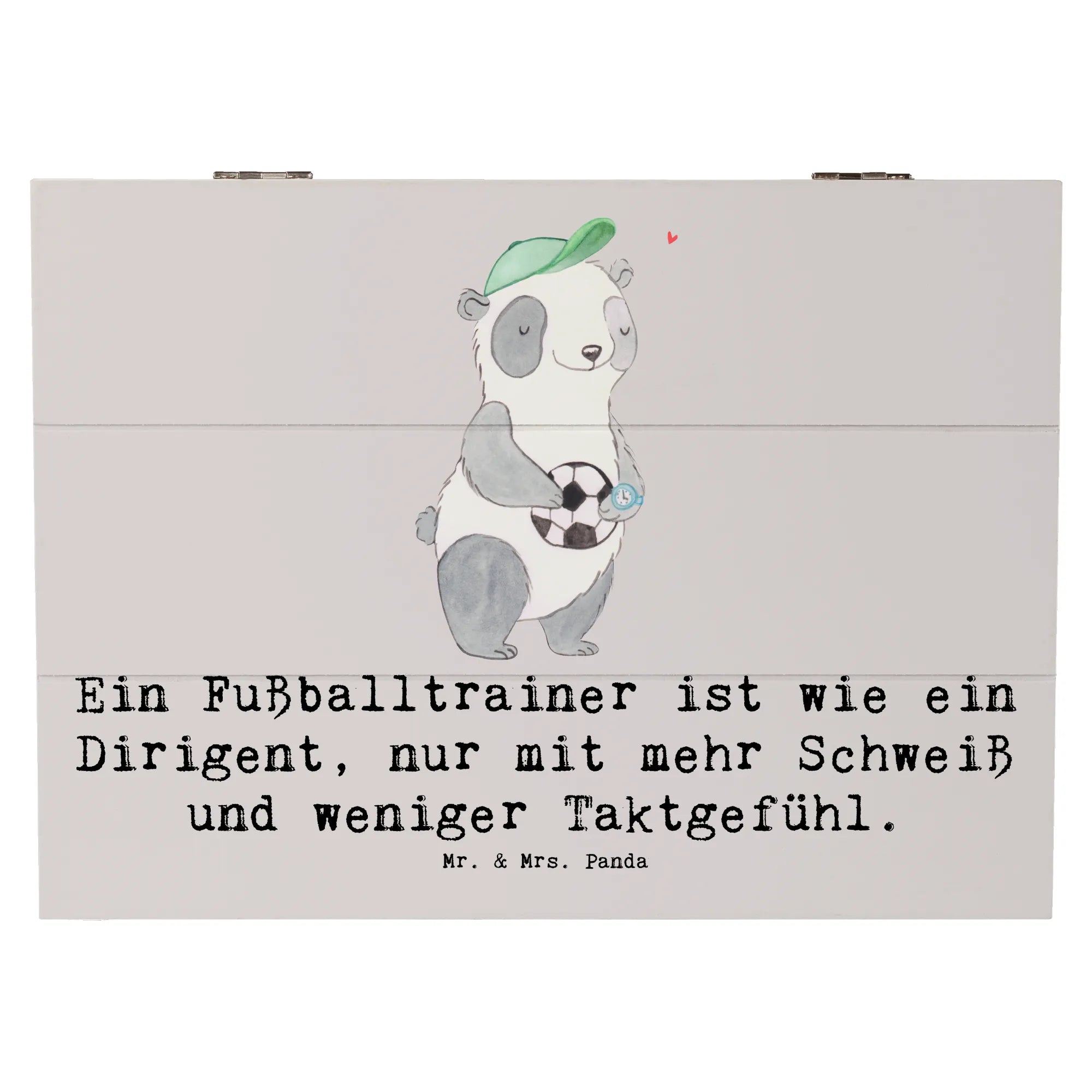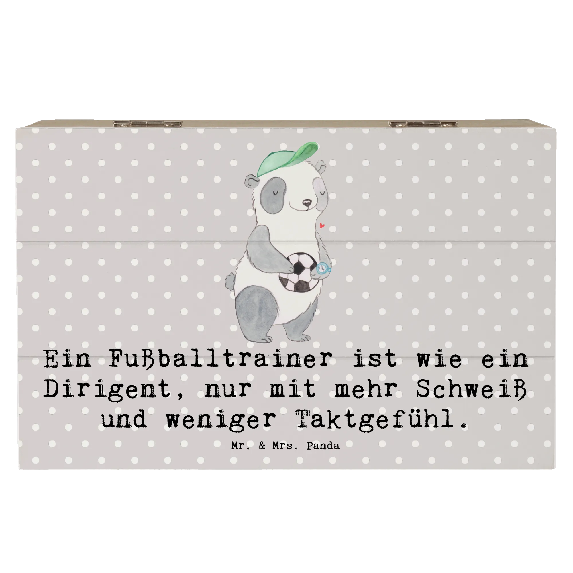 Skrzynia drewniana Ein Fußballtrainer ist wie ein Dirigent, nur mit mehr Schweiß und weniger Taktgefühl. - 19 x 12 cm - Pastelowy szary