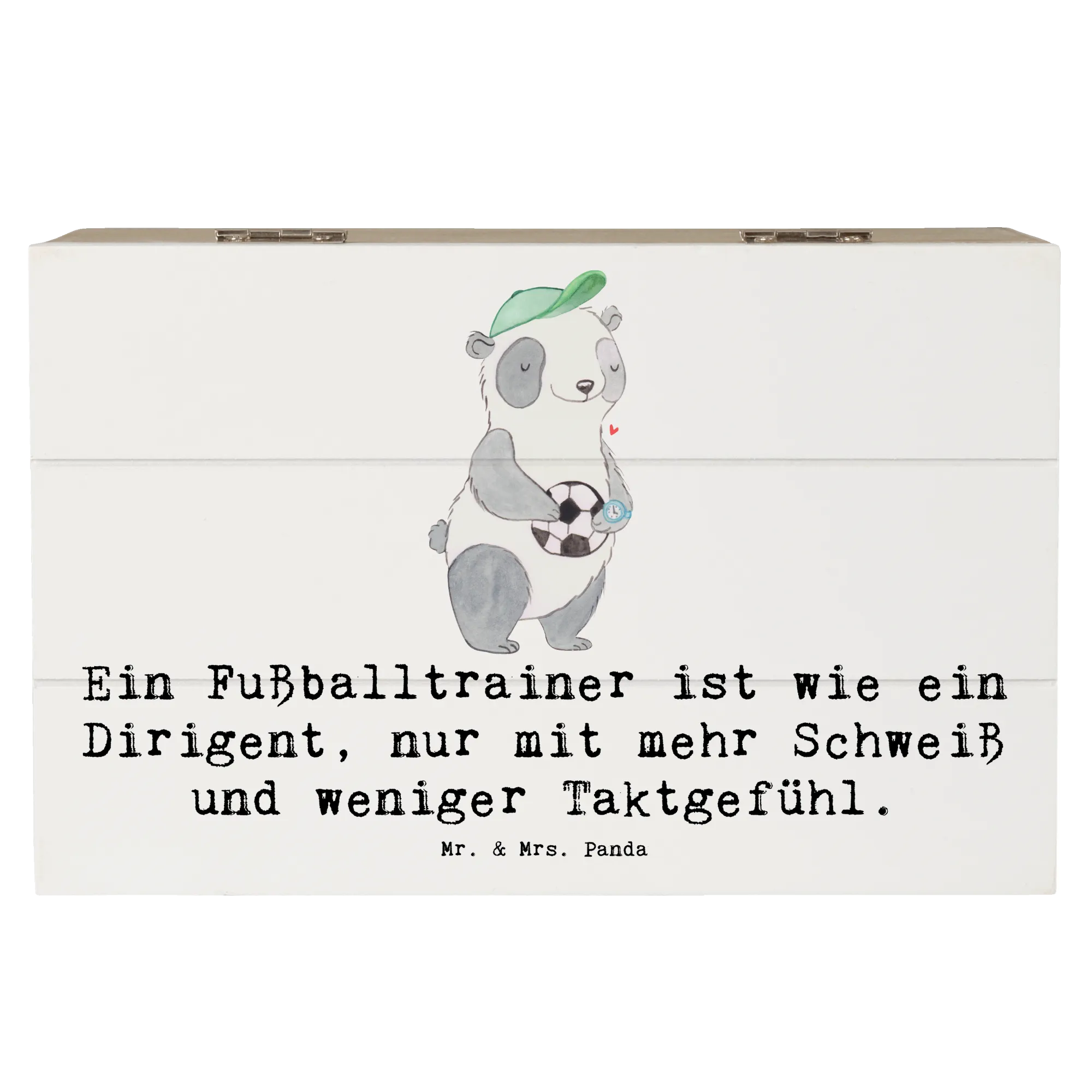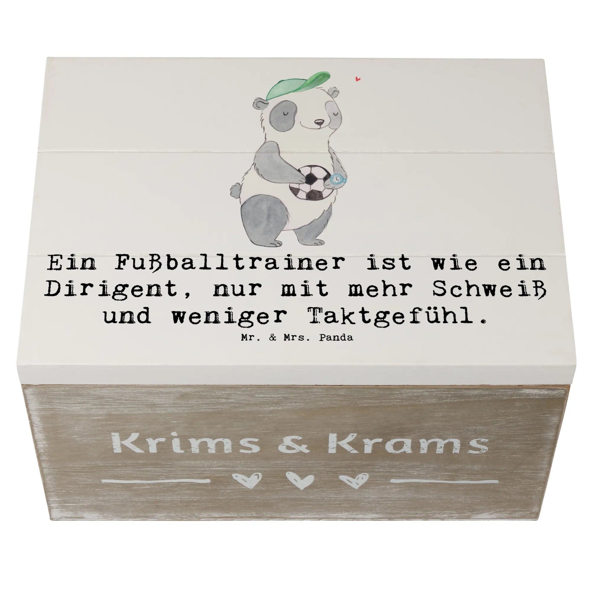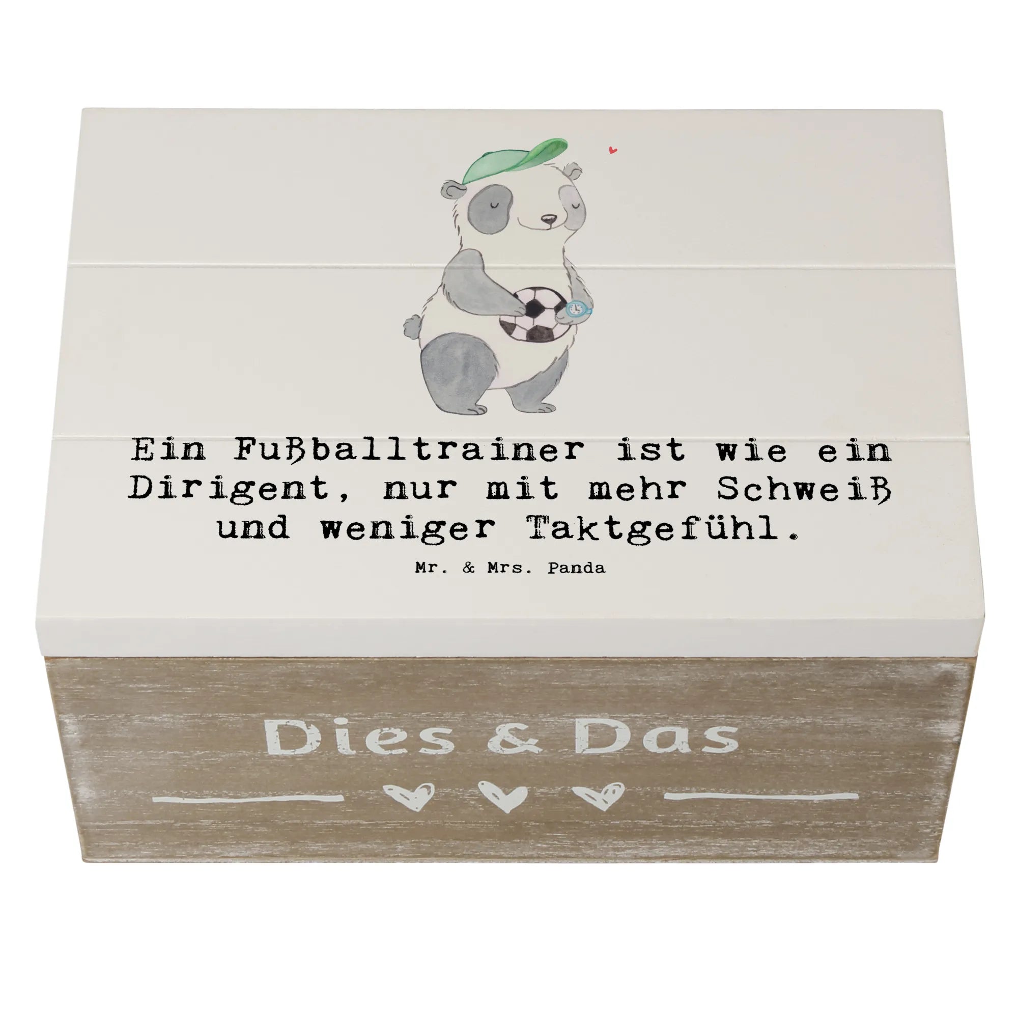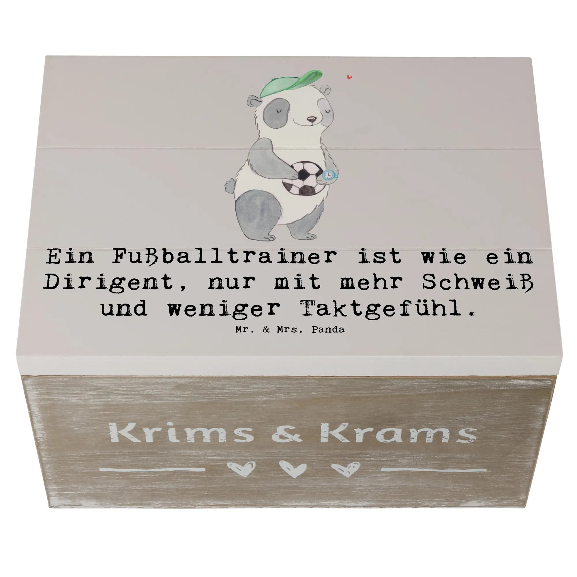 Skrzynia drewniana Ein Fußballtrainer ist wie ein Dirigent, nur mit mehr Schweiß und weniger Taktgefühl. - 19 x 12 cm - Pastelowy szary