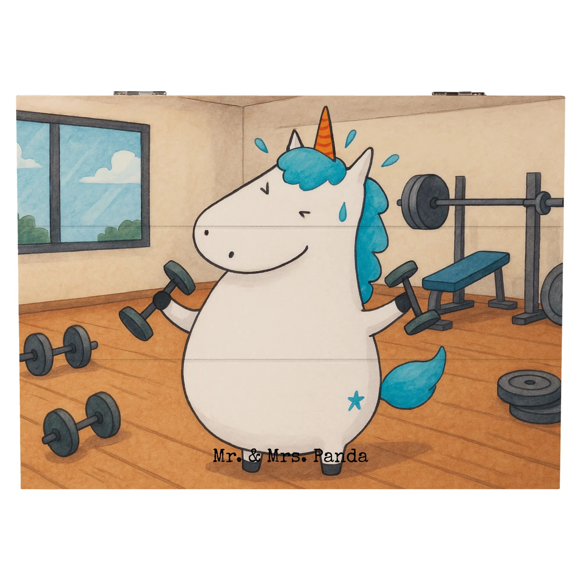 Skrzynia drewniana jednorożec Fitness Design - 22 x 15 cm - z napisem