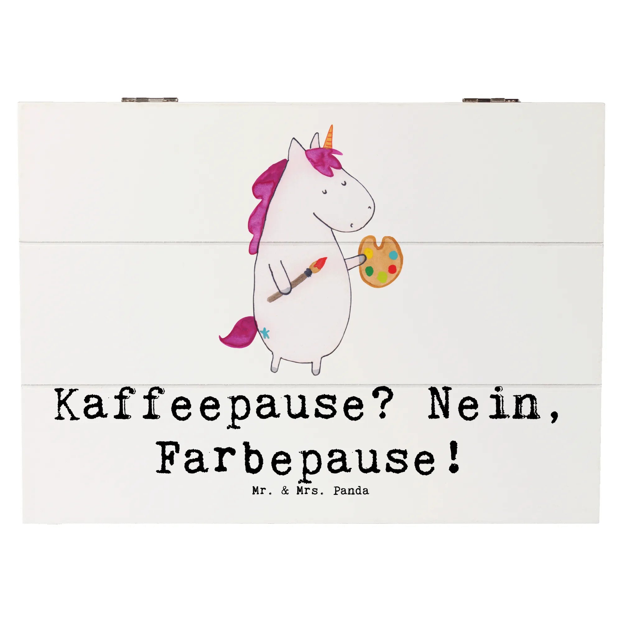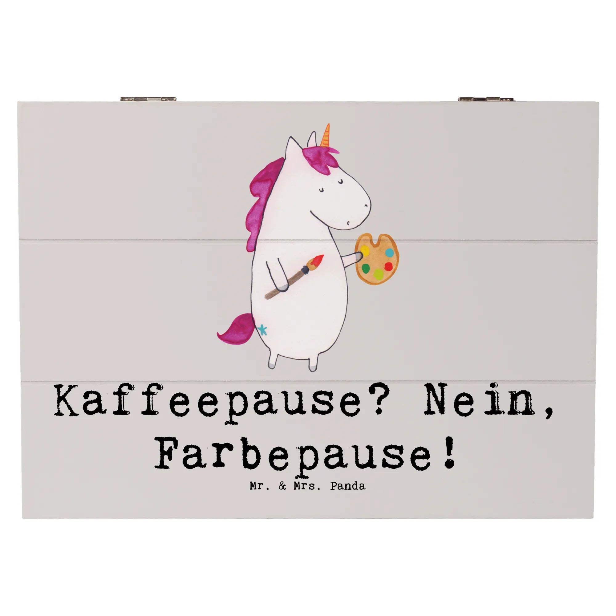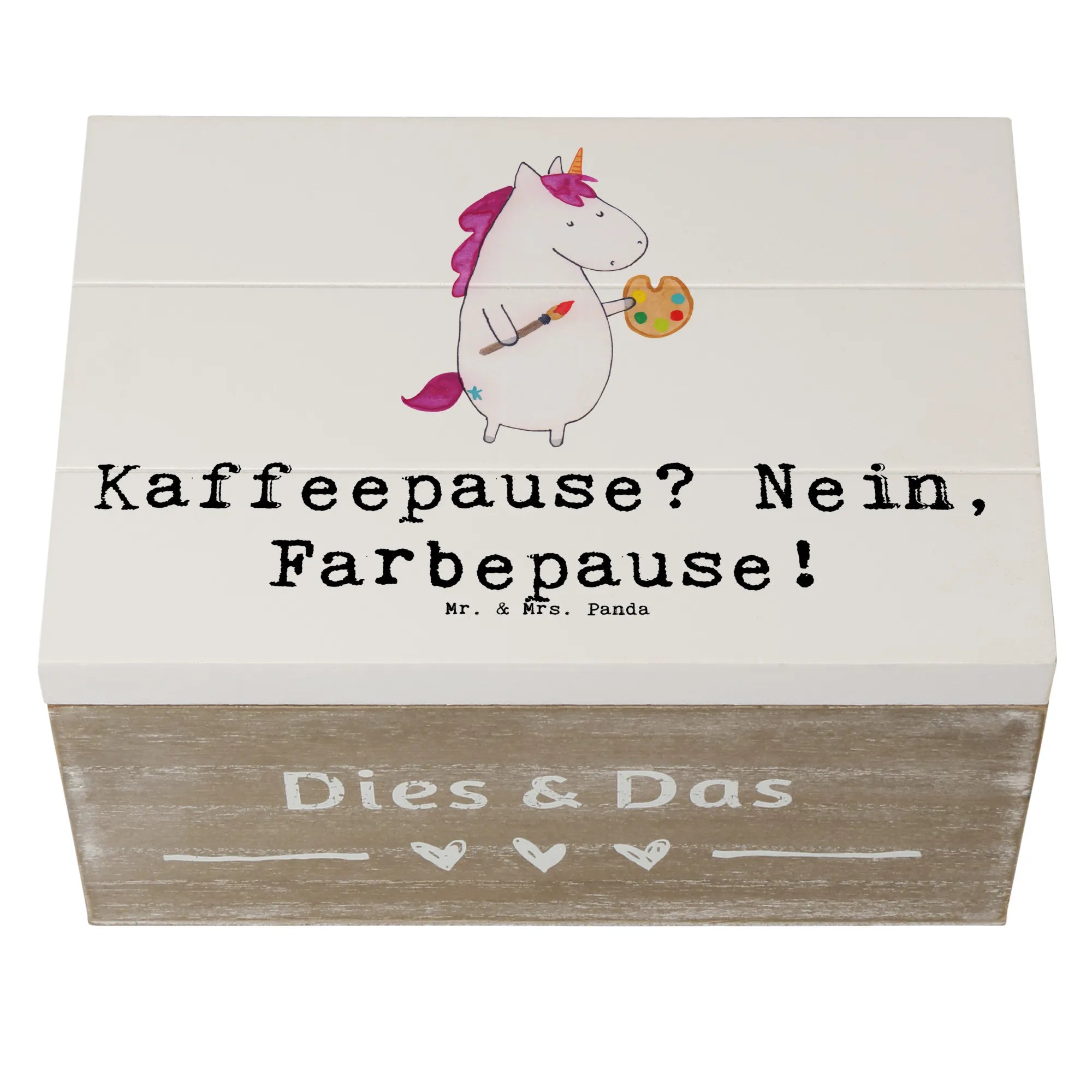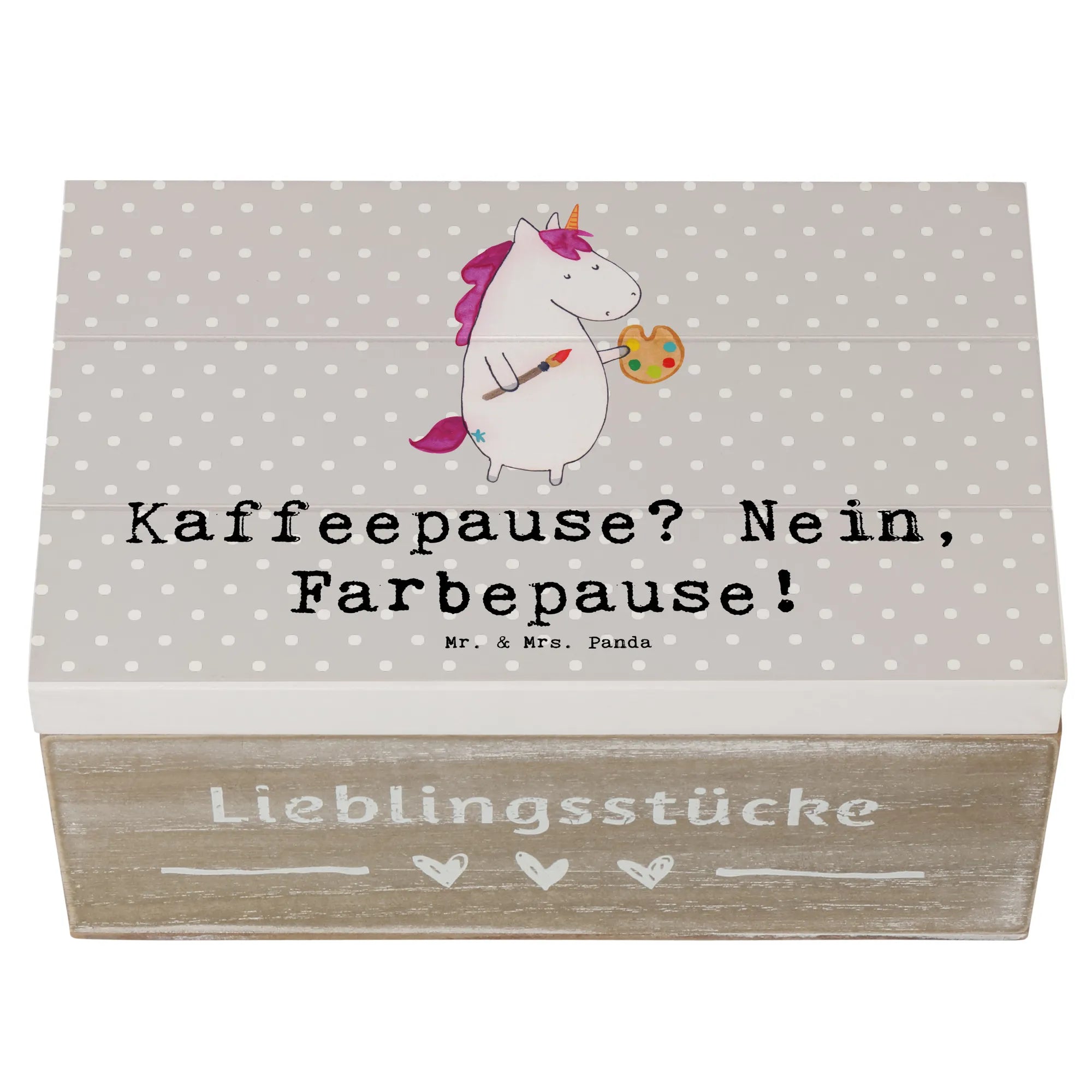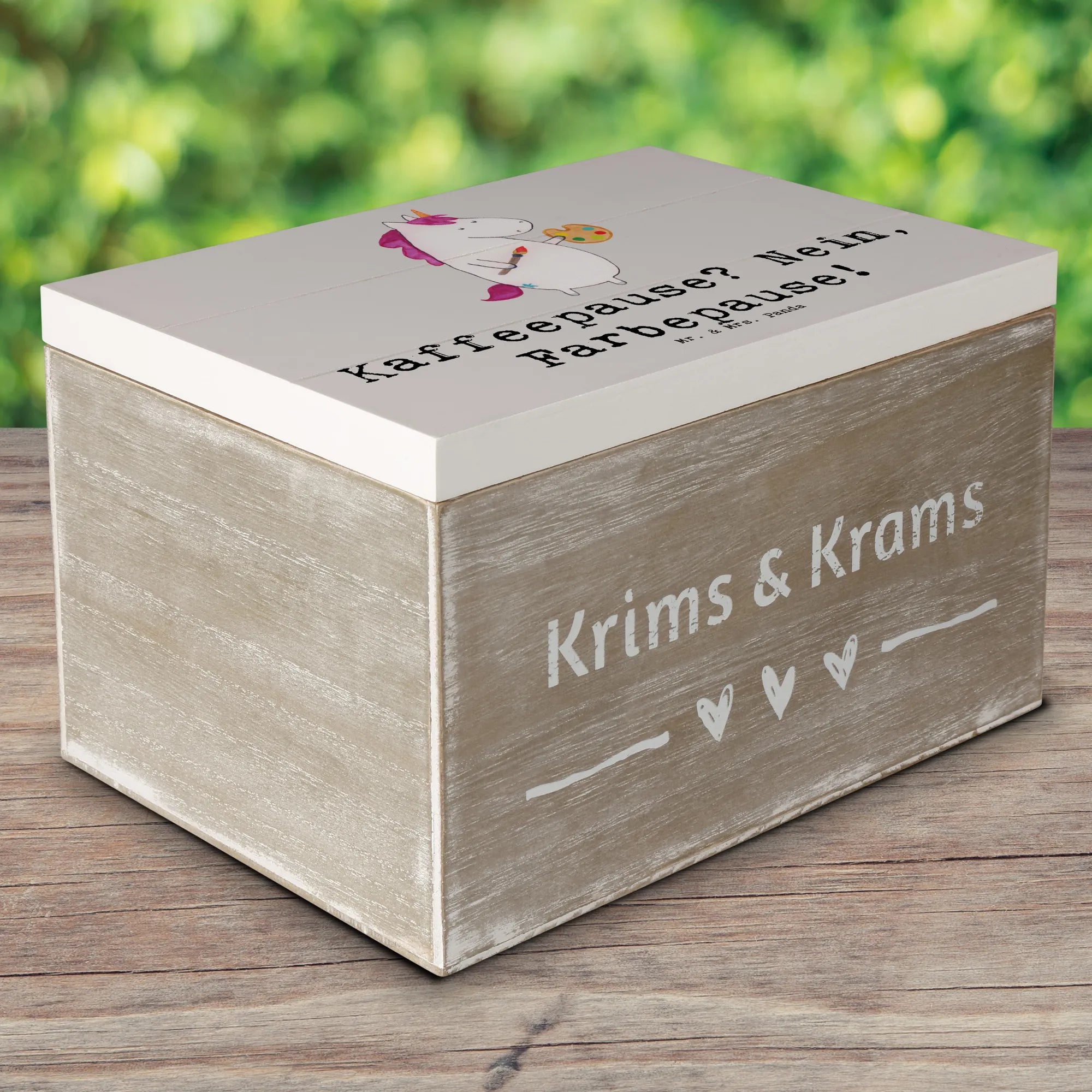 Skrzynia drewniana Kaffeepause? Nein, Farbepause! - 19 x 12 cm - Pastelowy szary