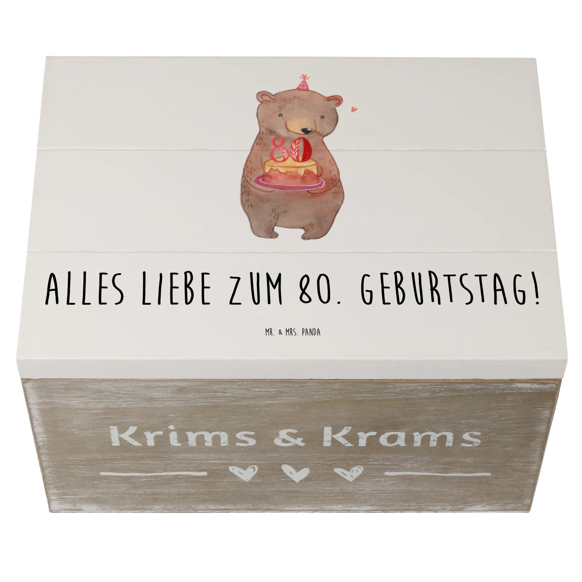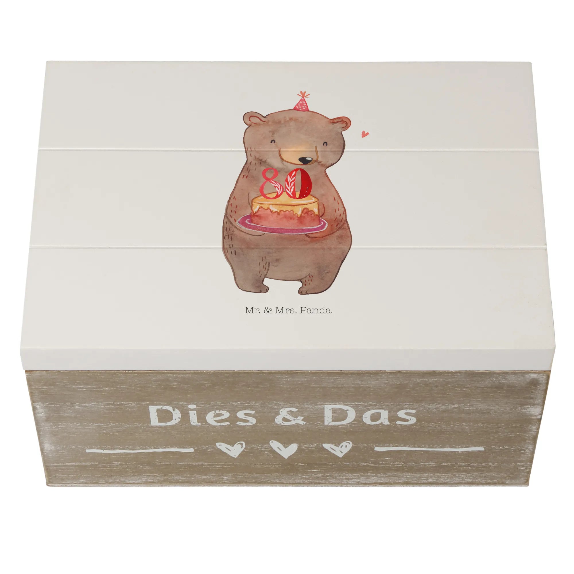 Skrzynia drewniana Miś Tort 80. urodziny - 22 x 15 cm - z napisem