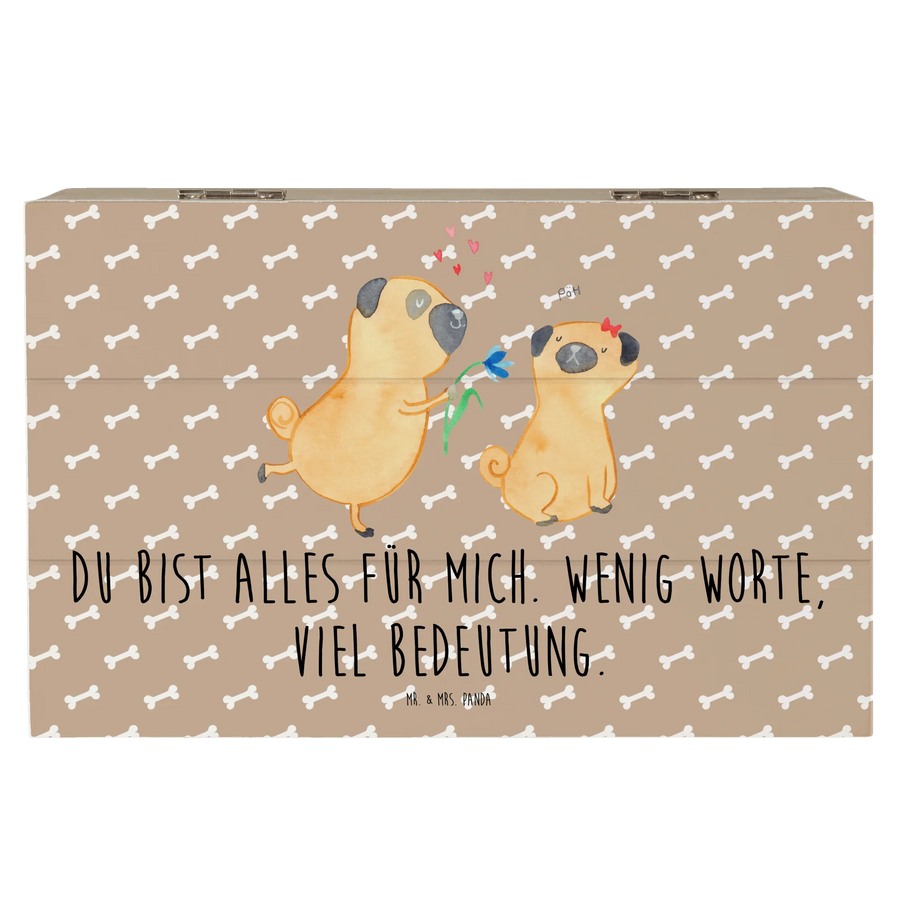 Skrzynia drewniana mops Zakochani - 19 x 12 cm - z napisem - Hundeglück