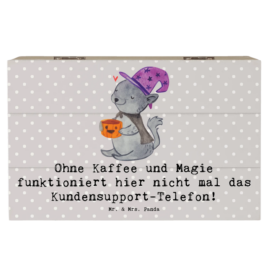Skrzynia drewniana Ohne Kaffee und Magie funktioniert hier nicht mal das Kundensupport-Telefon! - 19 x 12 cm - Pastelowy szary
