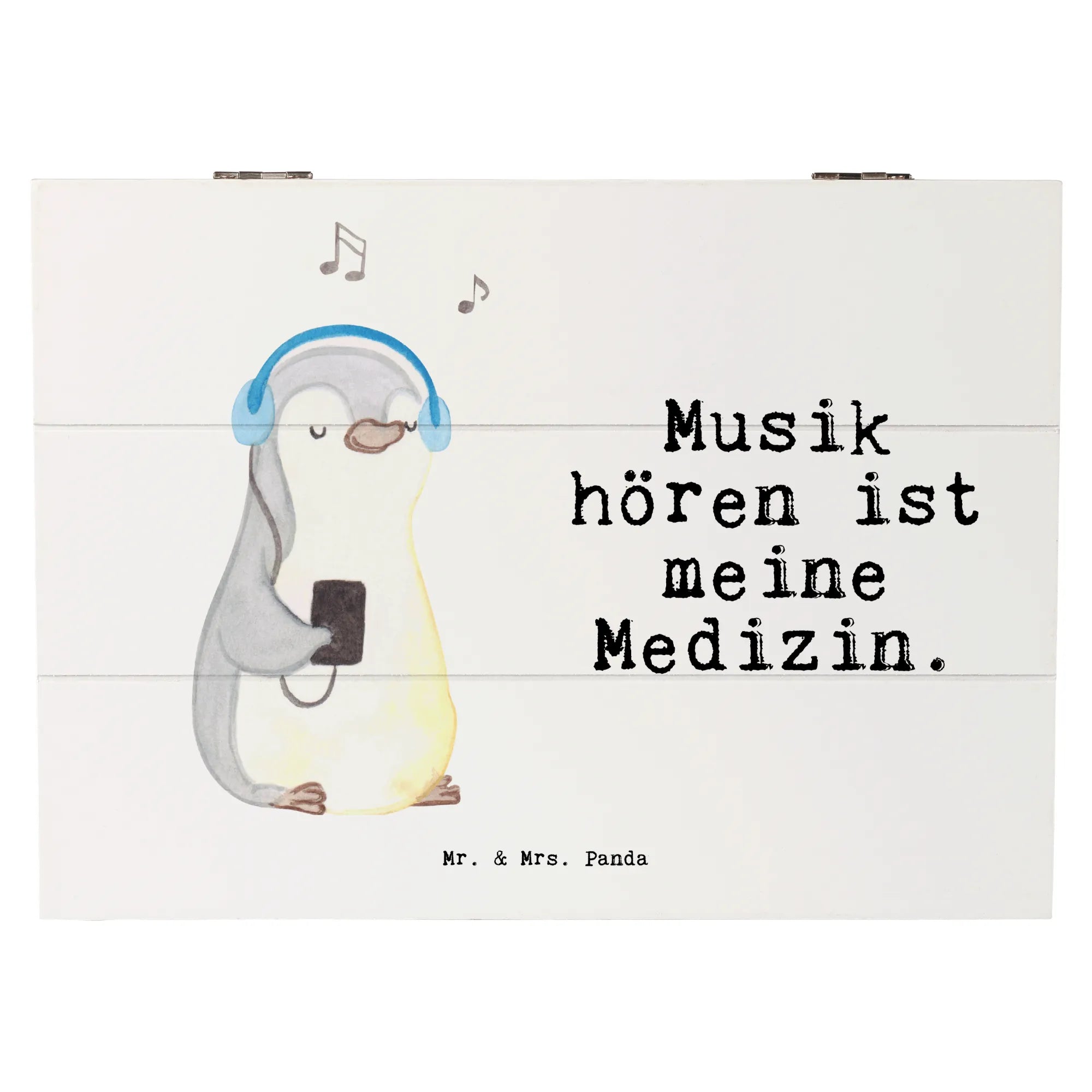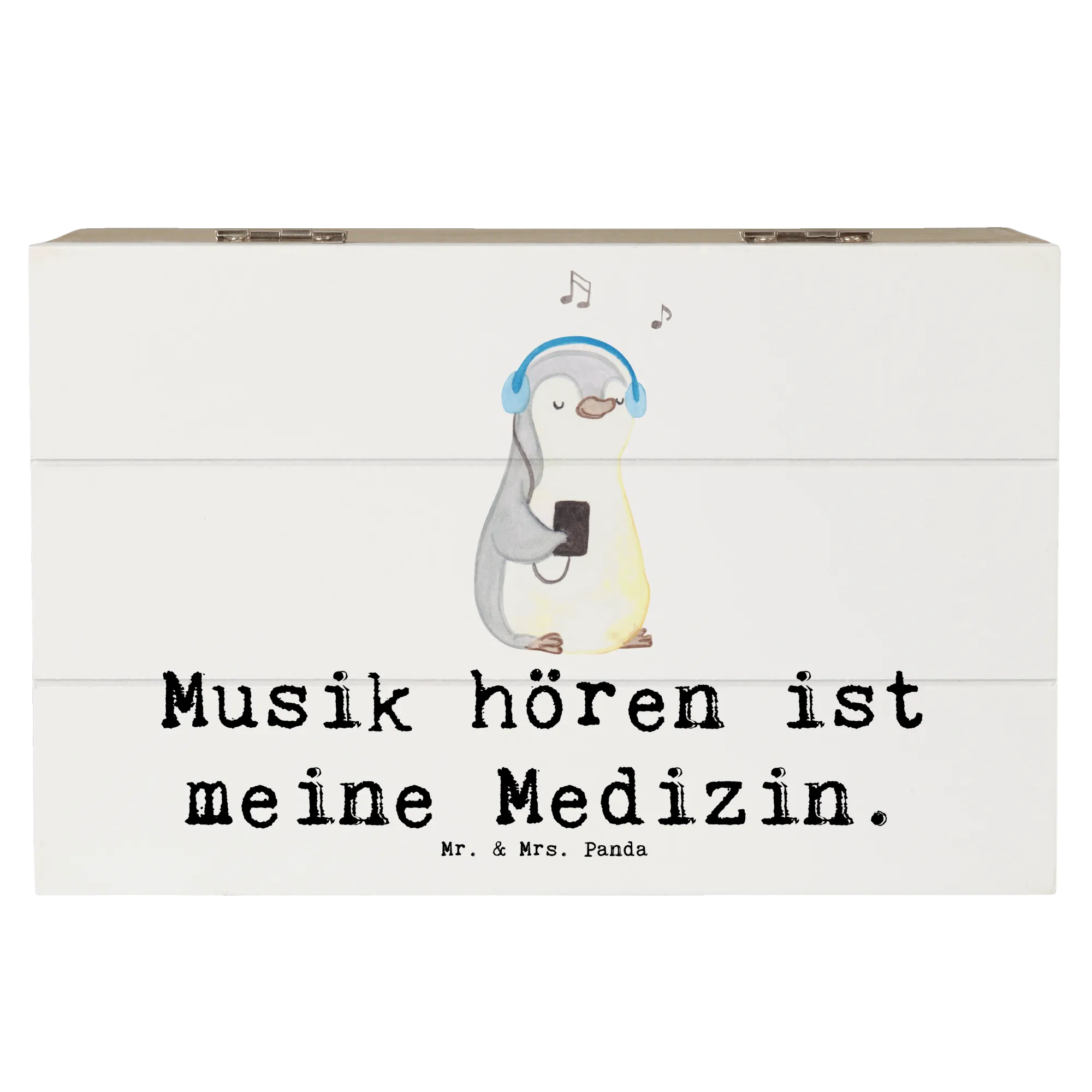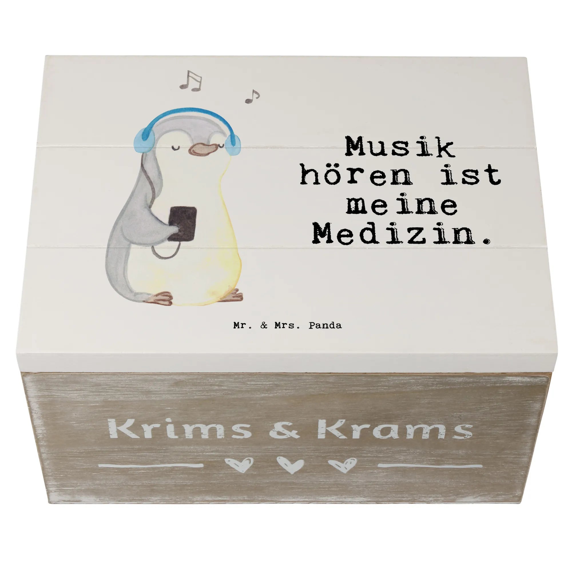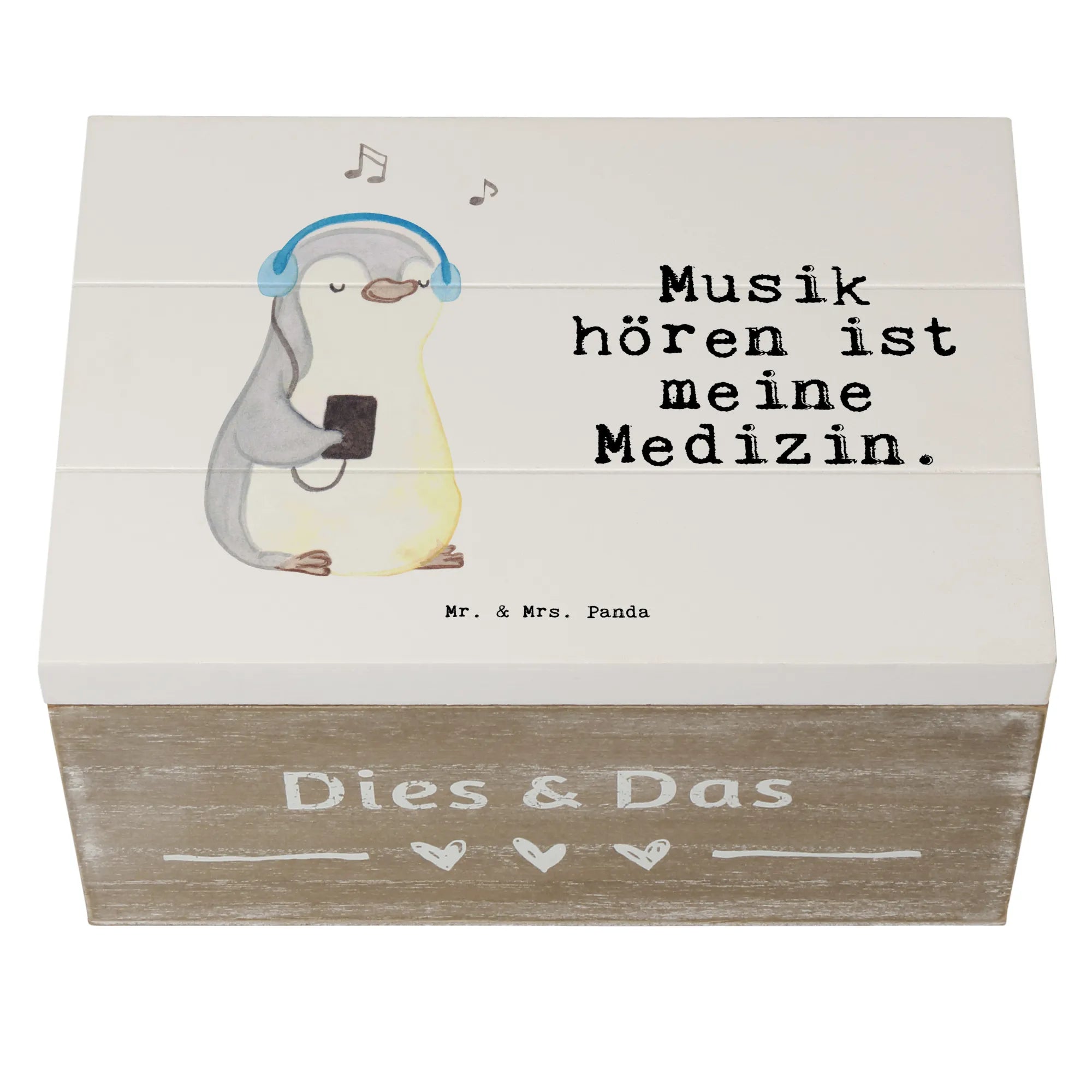 Skrzynia drewniana pingwin słuchać muzyki - 22 x 15 cm