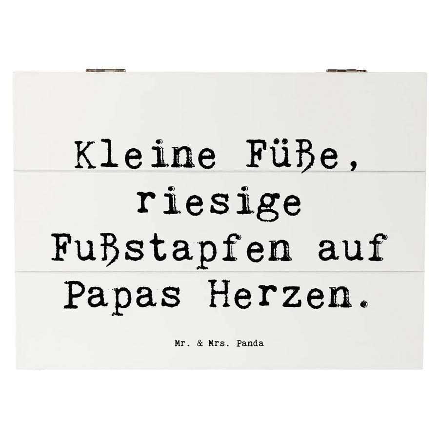 Skrzynia drewniana Przysłowie Kleine Füße, riesige Fußstapfen auf Papas Herzen. - 25 x 18 cm - Biały