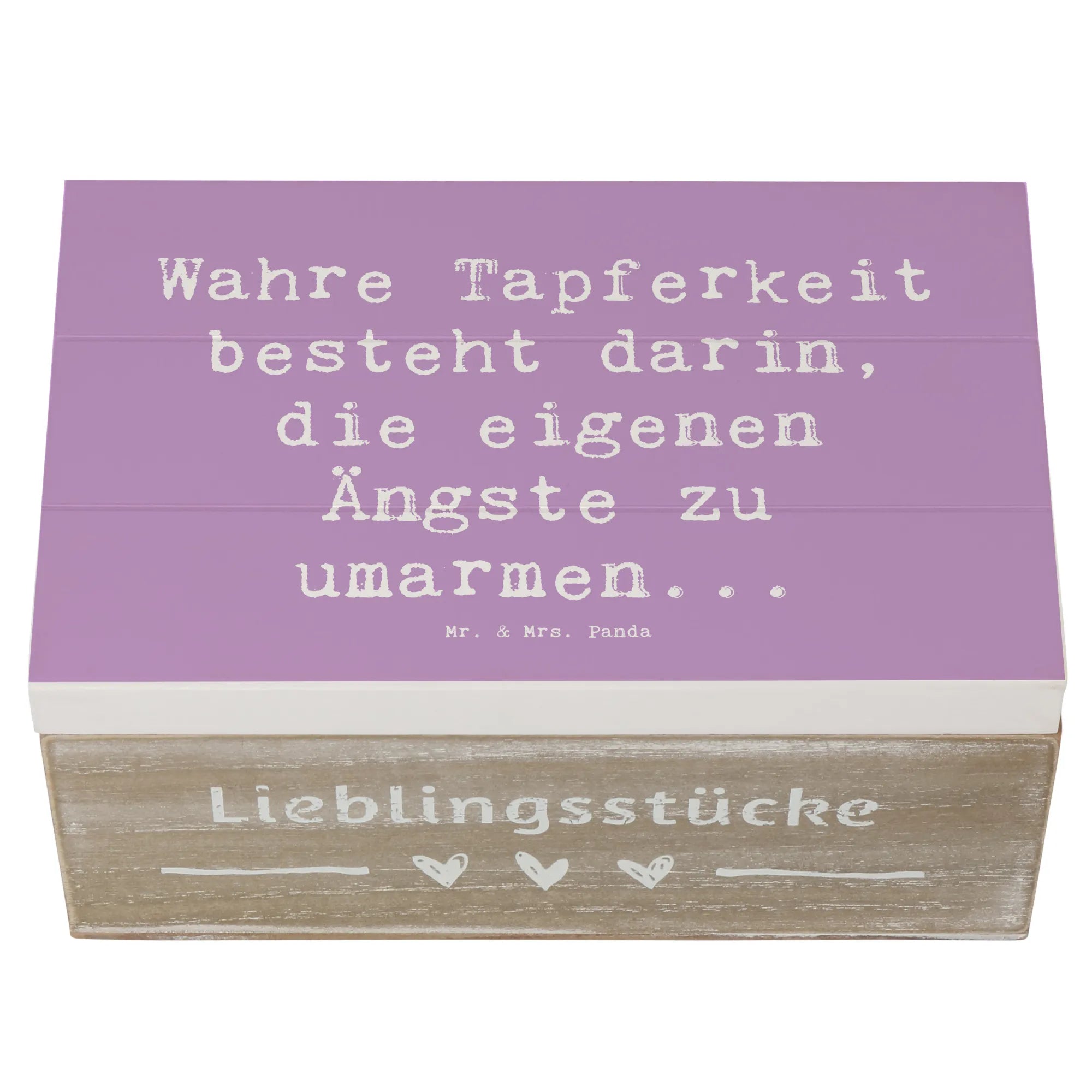 Skrzynia drewniana Przysłowie Wahre Tapferkeit besteht darin, die eigenen Ängste zu umarmen... - 19 x 12 cm - Lavendeltraum