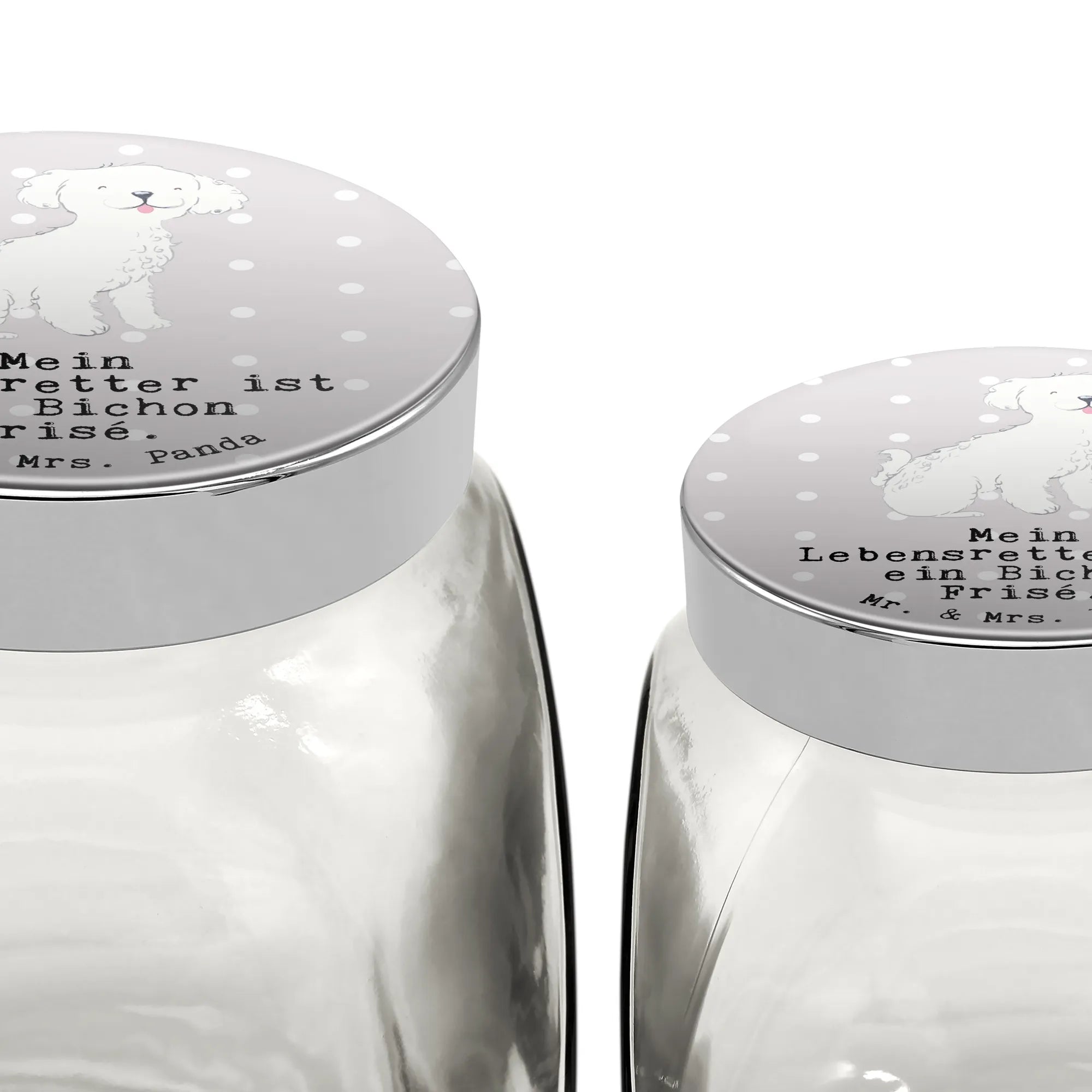 Słoik Leckerli Bichon Frise Ratujący życie - L 870ml - z napisem - Pastelowy szary