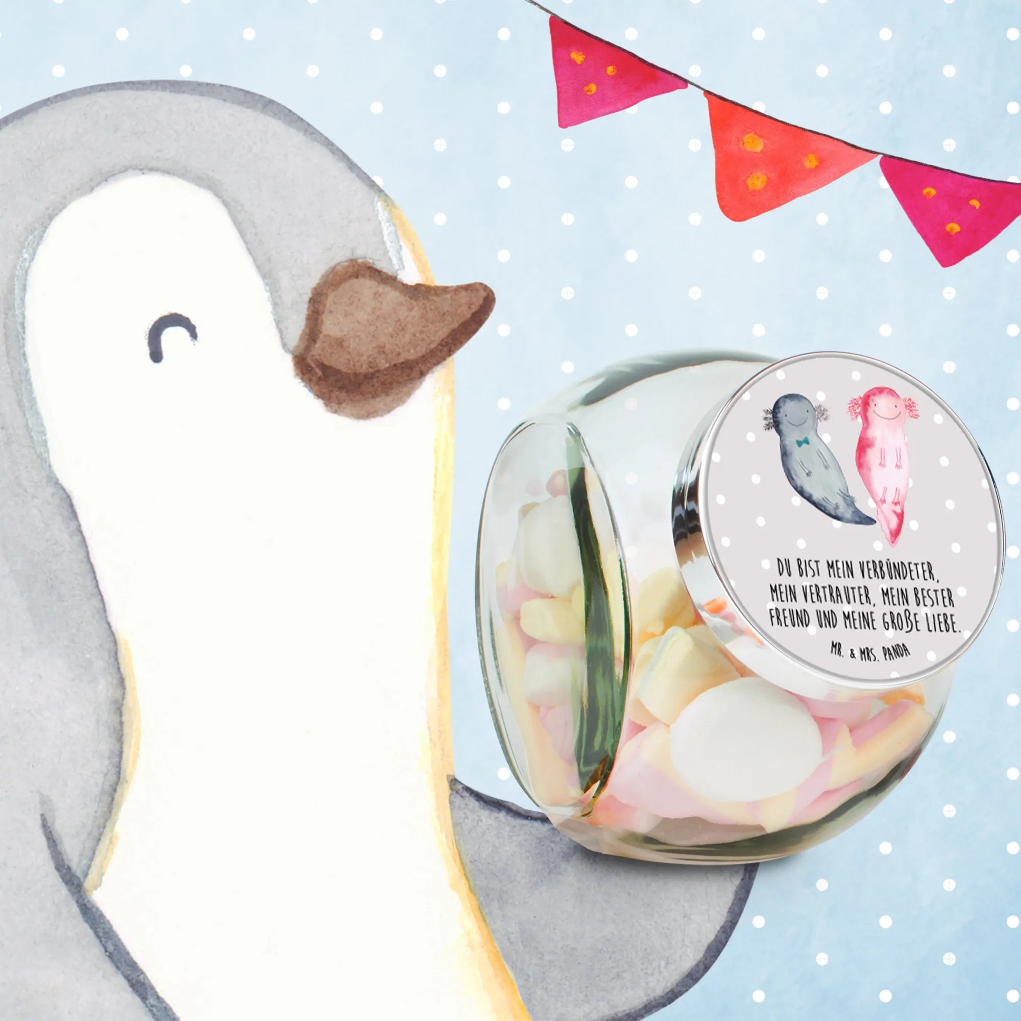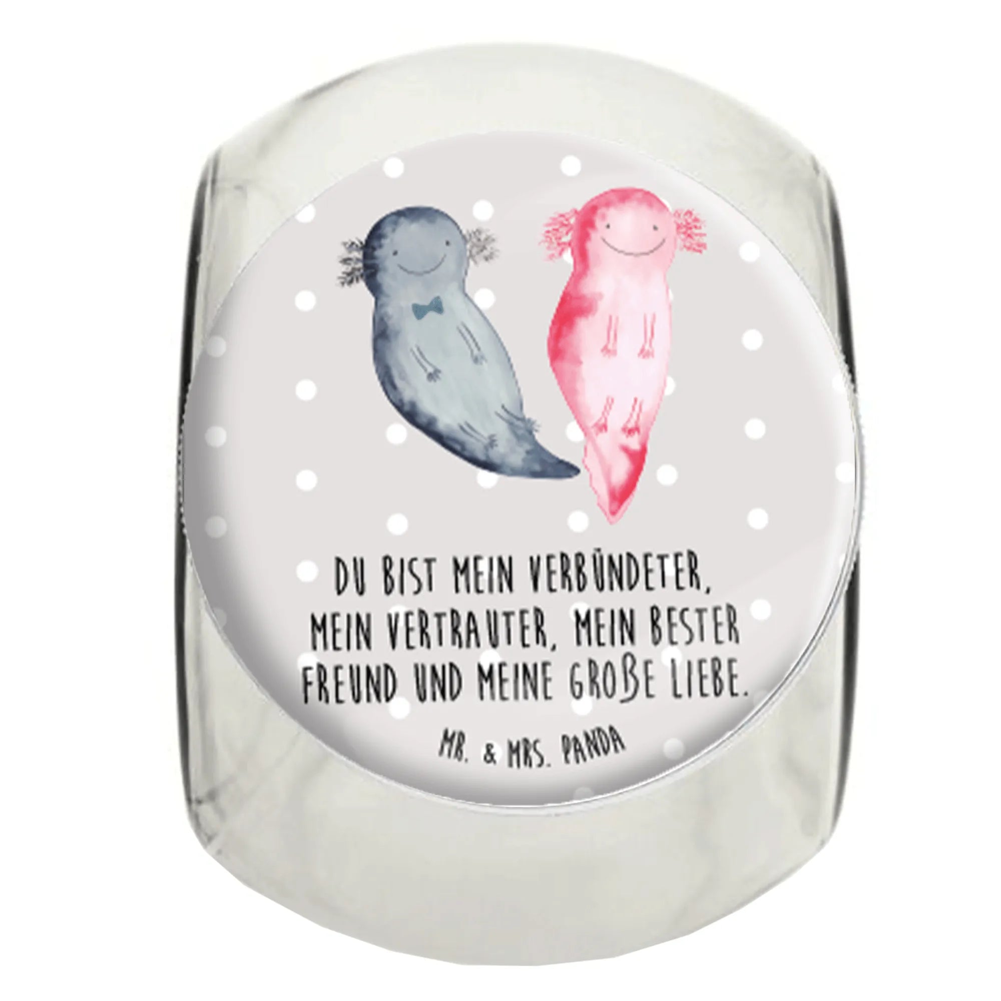 Das wunderschöne Bonbonglas von Mr. & Mrs. Panda mit dem niedlichen Motiv Axolotl Axel+Lotte ist nicht nur eine echte Augenweide, sondern auch eine praktische Aufbewahrungslösung für all deine Leckereien. Ob süße Bonbons, knusprige Kekse, aromatischer Kaffee oder duftender Tee – in diesem stilvollen Glas bleibt alles frisch und geschmackvoll.