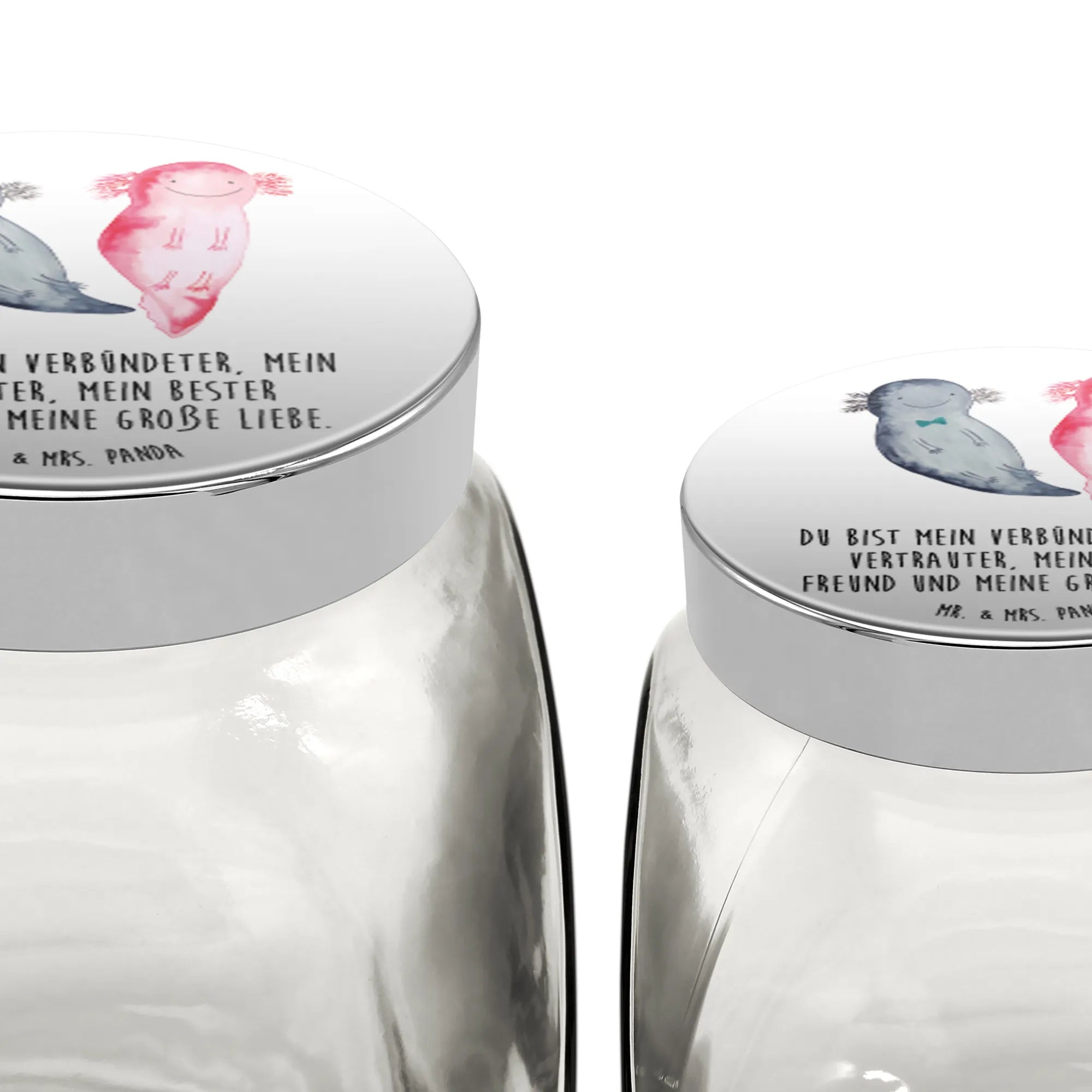 Das wunderschöne Bonbonglas mit dem charmanten Axolotl-Motiv Axel+Lotte aus der Axolotl-Kollektion von Mr. & Mrs. Panda ist der perfekte Begleiter für deine Küche. Dieses praktische Vorratsglas bietet nicht nur ausreichend Platz mit einem Füllvolumen von 2000 ml für all deine Leckereien, sondern sieht auch fantastisch aus und bringt Freude in jeden Raum.