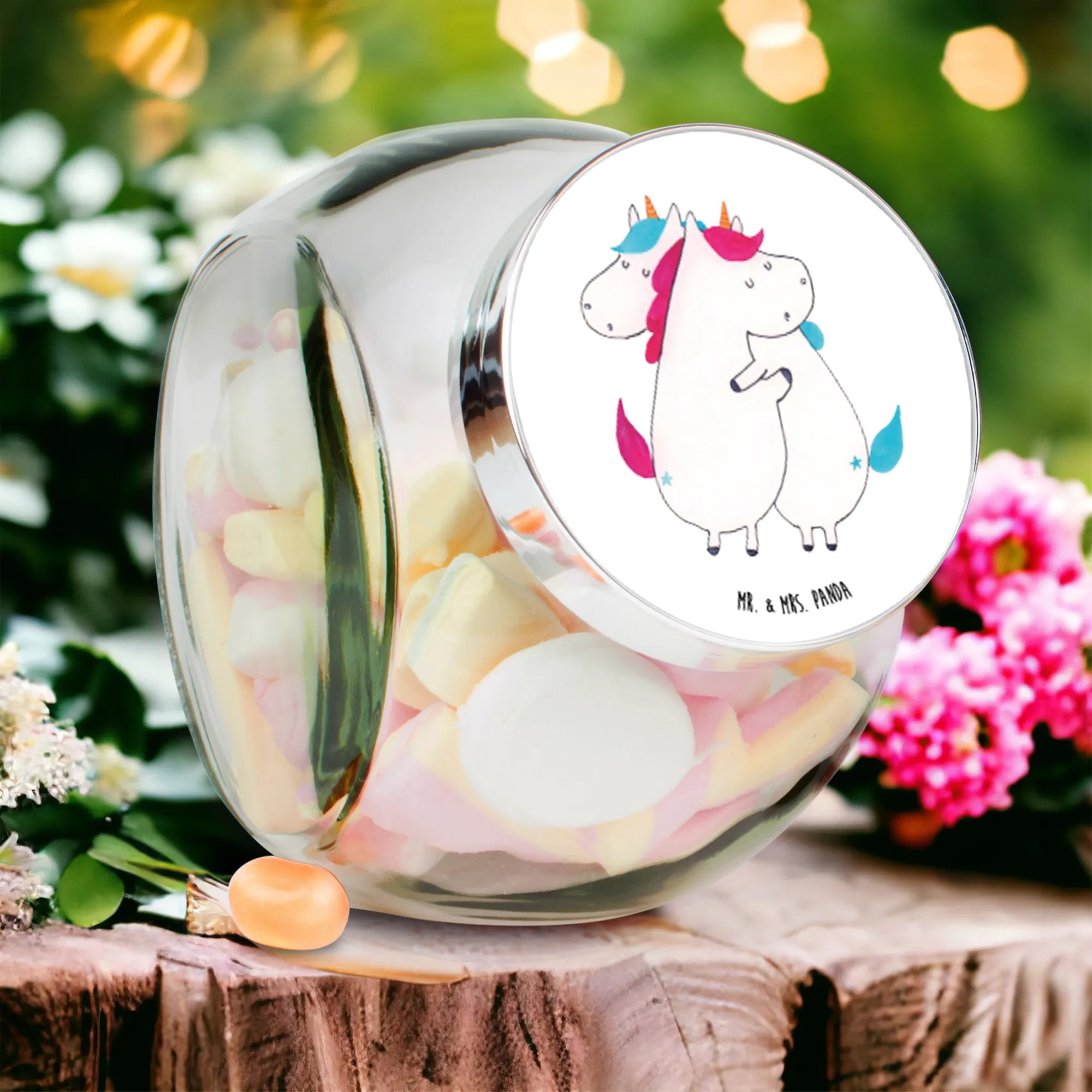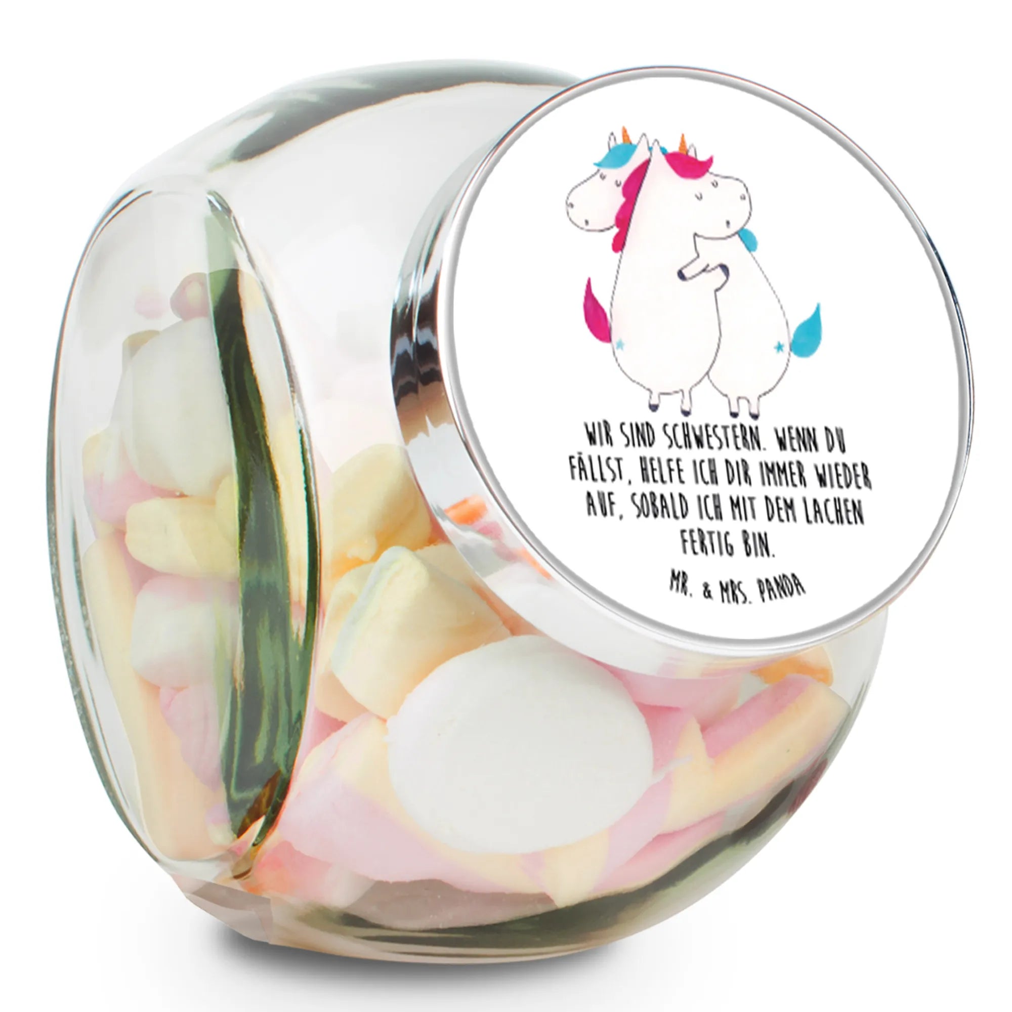 Słoik na cukierki Jednorożce Przytulanie - L 870ml - z napisem