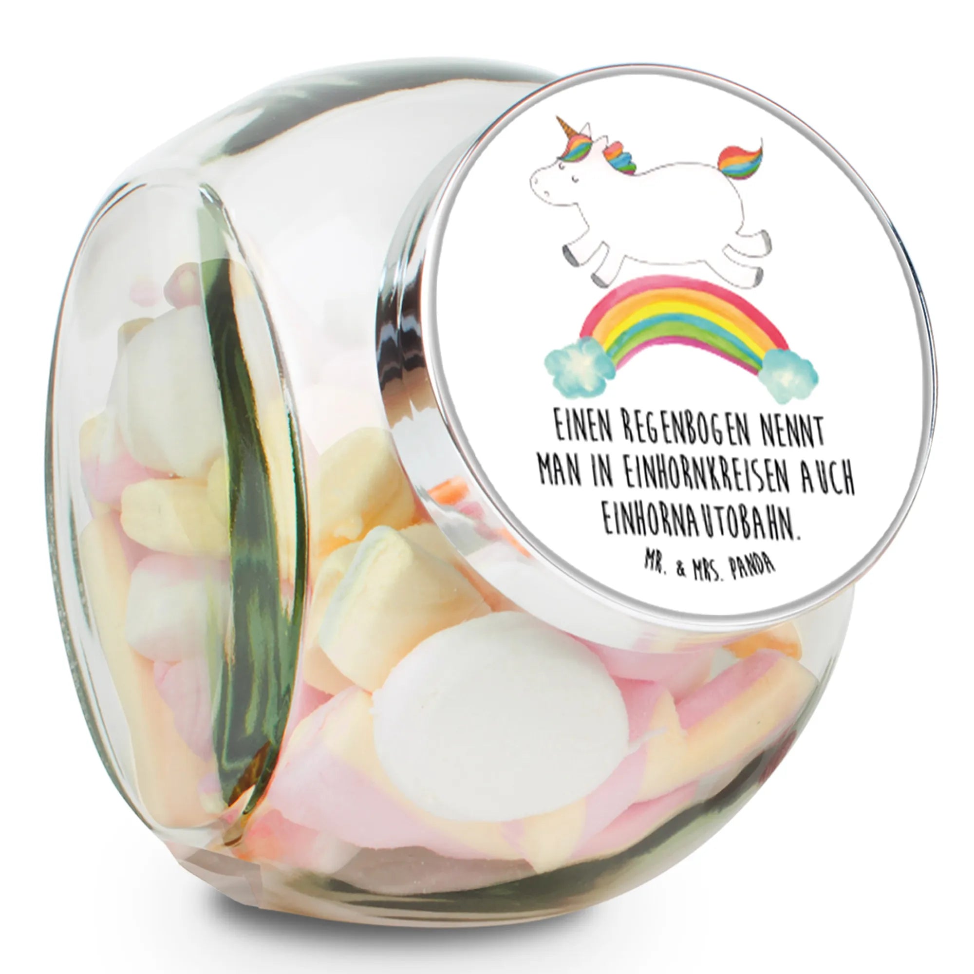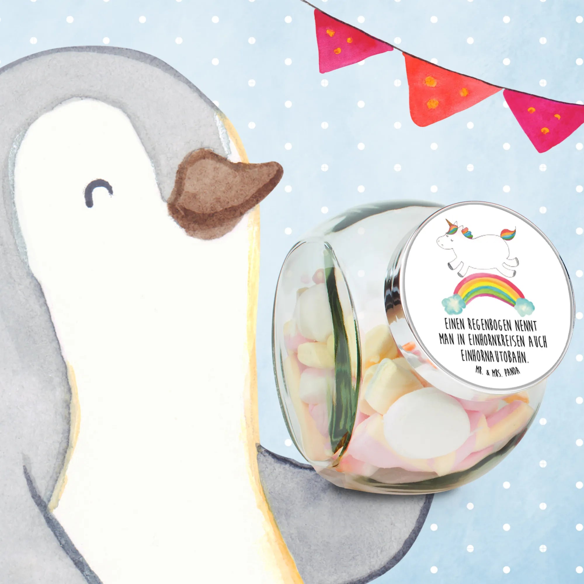 Das wunderschöne Bonbonglas mit dem zauberhaften Einhorn Regenbogen Motiv aus der Einhorn-Kollektion von Mr. & Mrs. Panda ist das perfekte Geschenk für alle, die die magische Welt der Einhörner lieben.