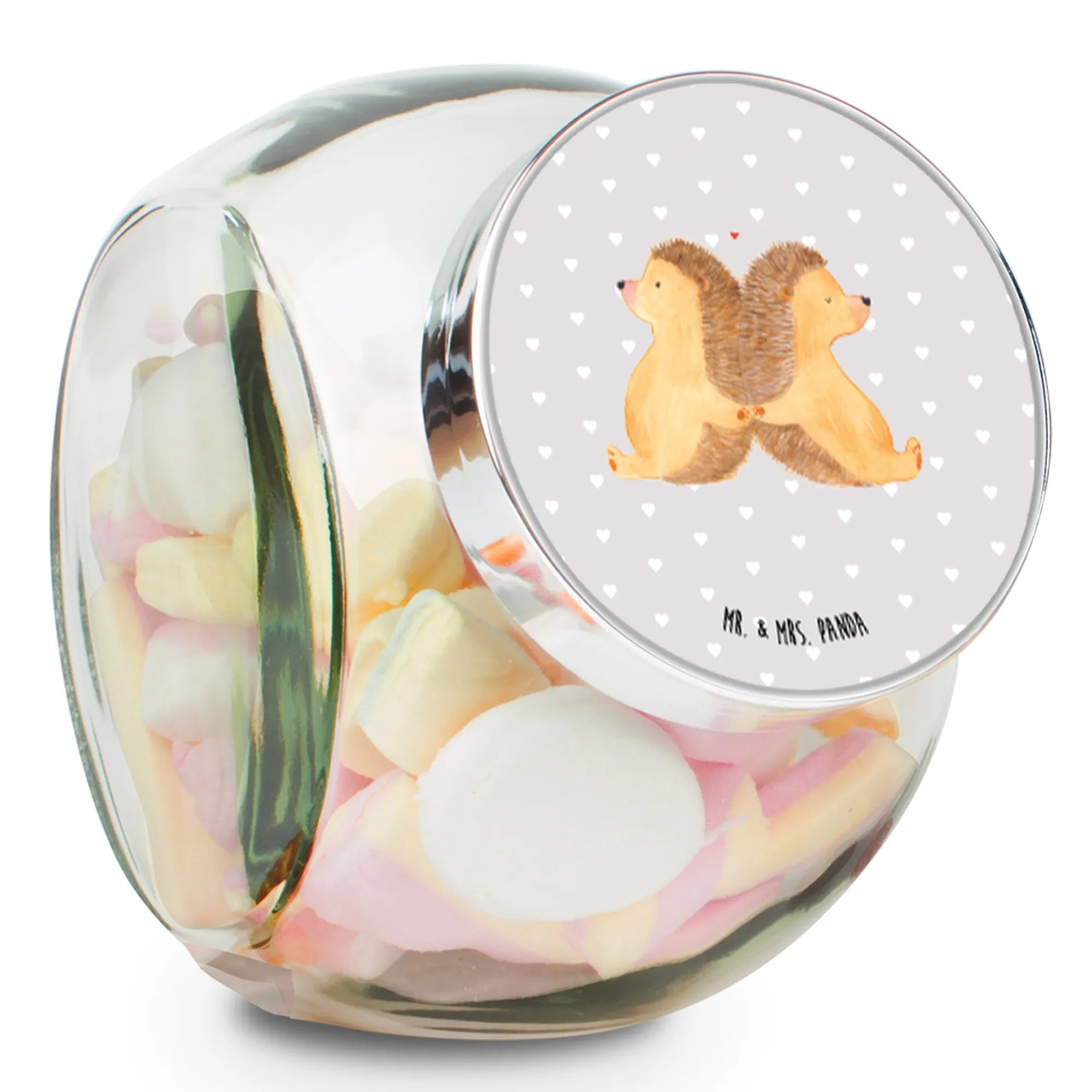 Słoik na cukierki Jeże trzymające się za łapki - L 870ml - z napisem - Pastelowy szary